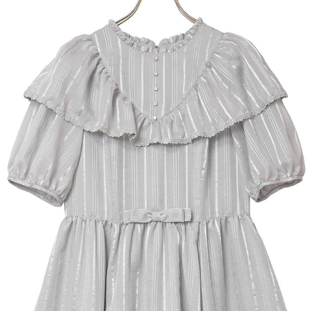 Vライン切替のヨークフリルがクラシカルなワンピース。