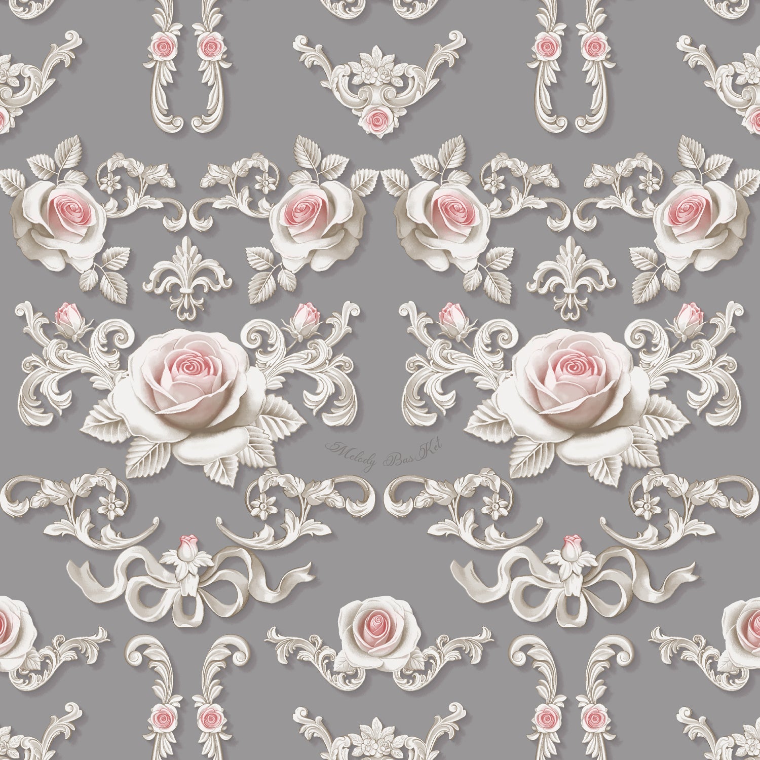 優雅な曲線とローズが織りなす、ロマンティックなひとときを閉じ込めたオリジナルプリントシリーズ。