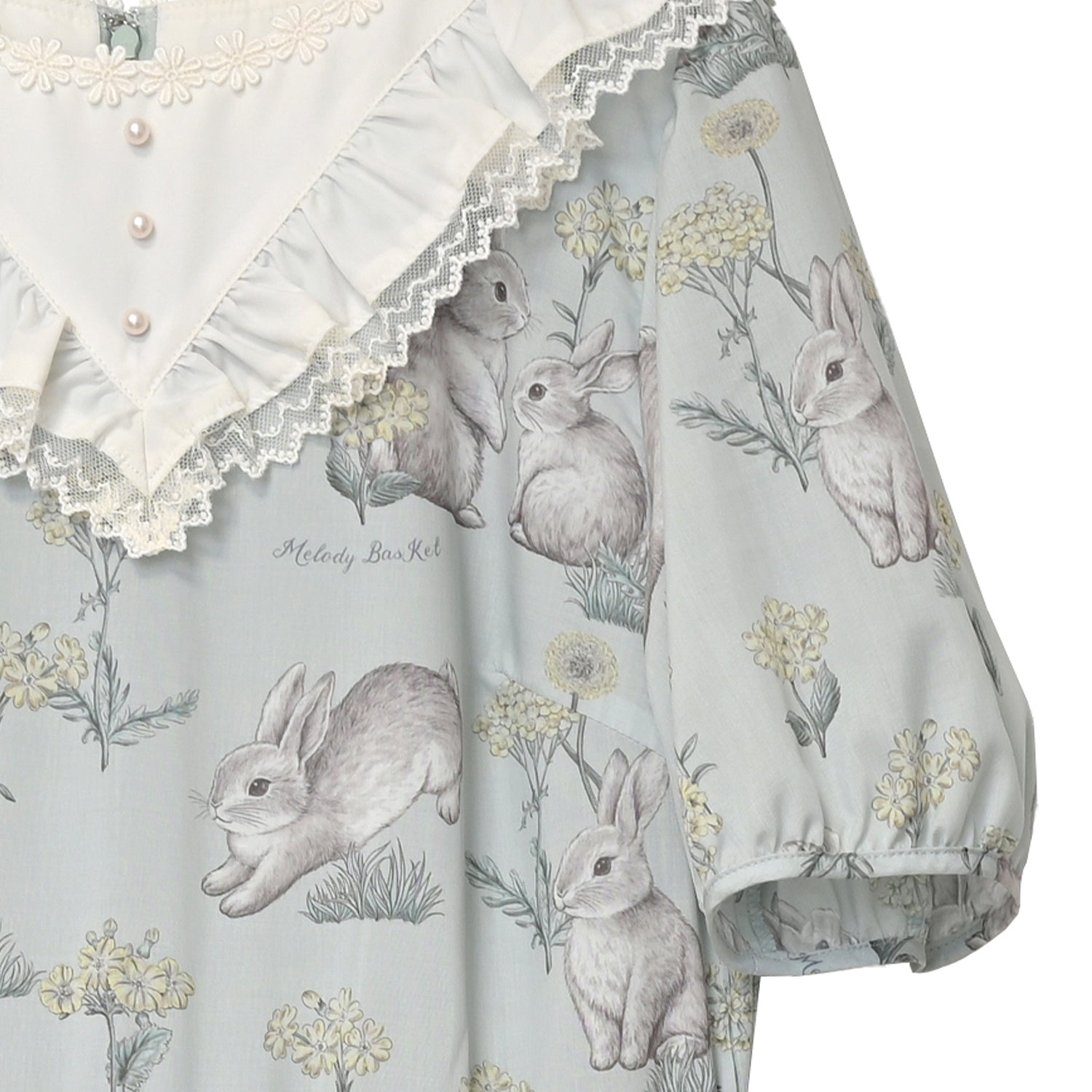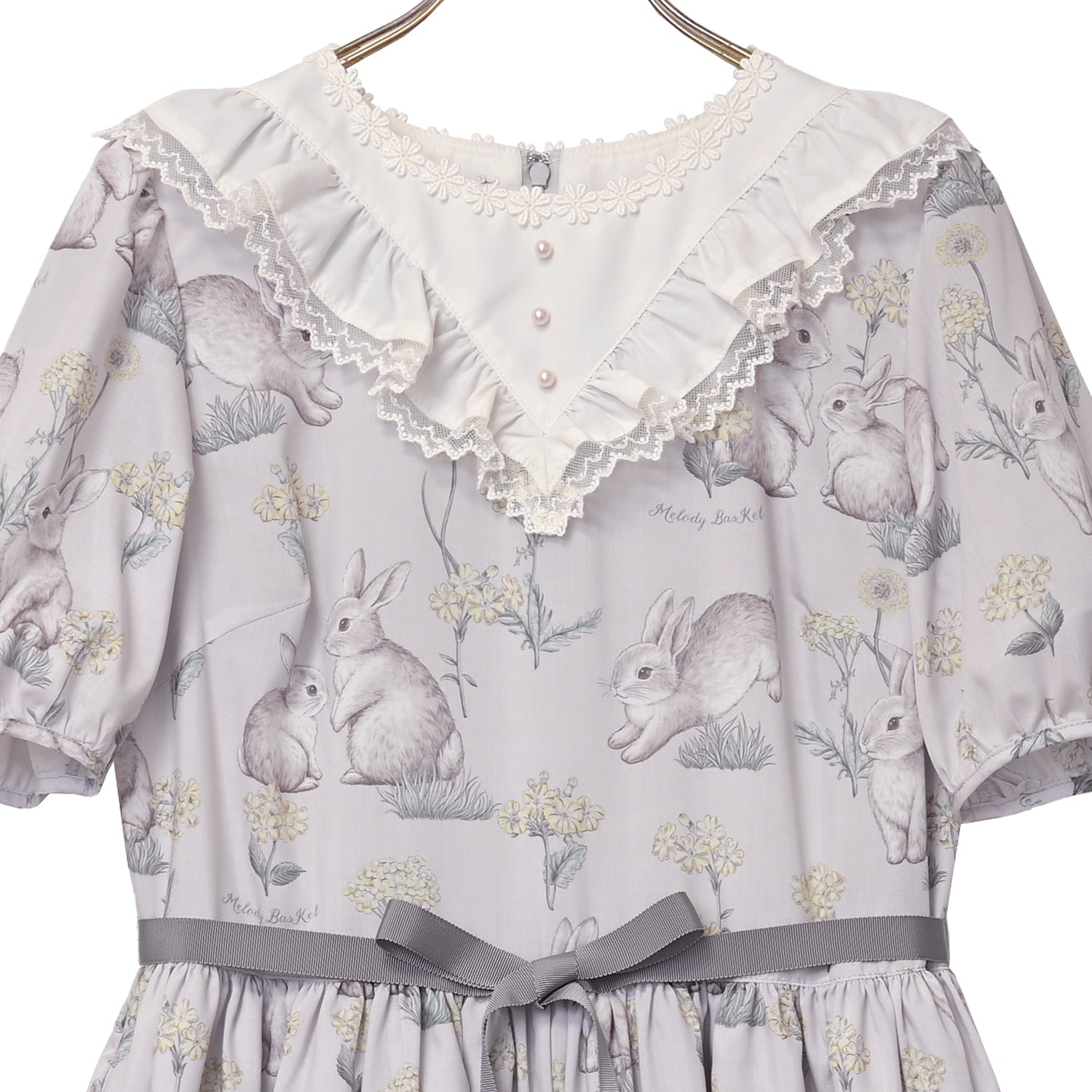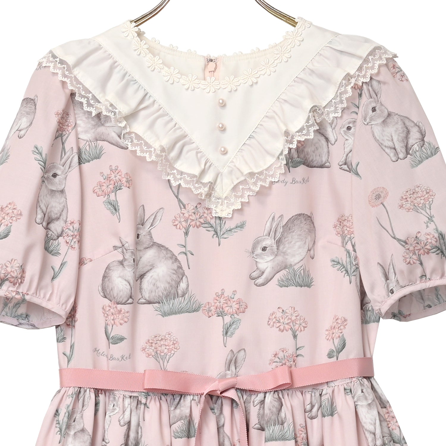 首周りにはお花のレースとパールのフェイクボタンで、可愛らしく上品に仕上げました。