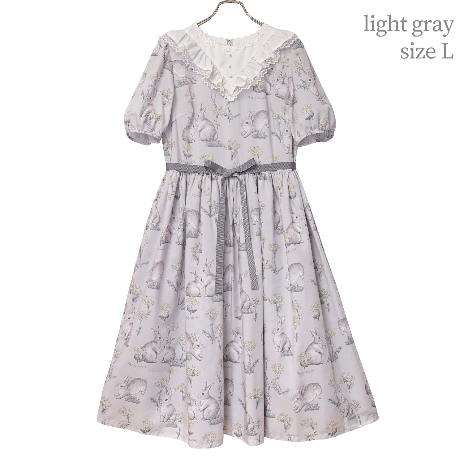 後ろファスナー開閉仕様。ウエストリボン取り外し可能。スカート右脇ポケット付き。