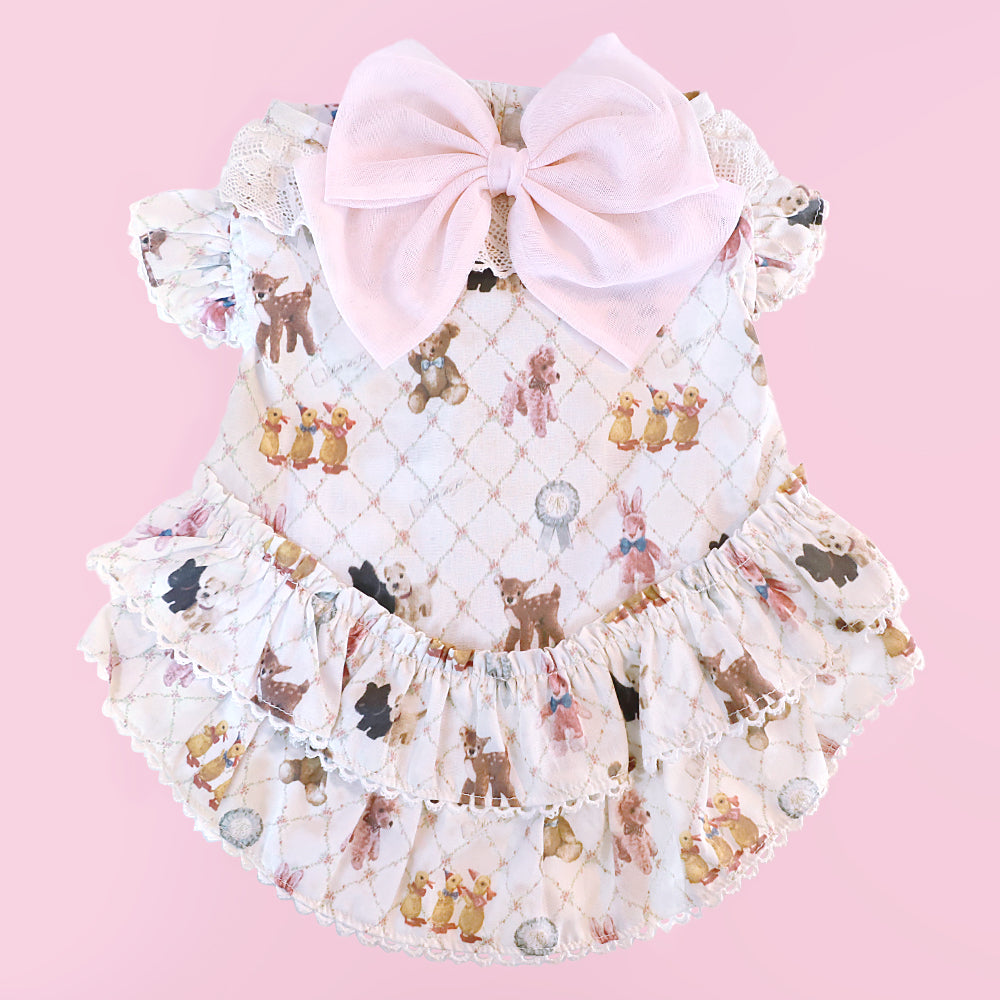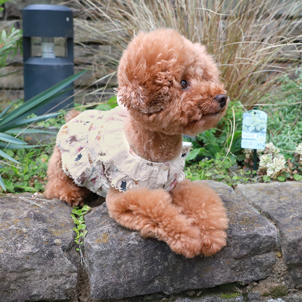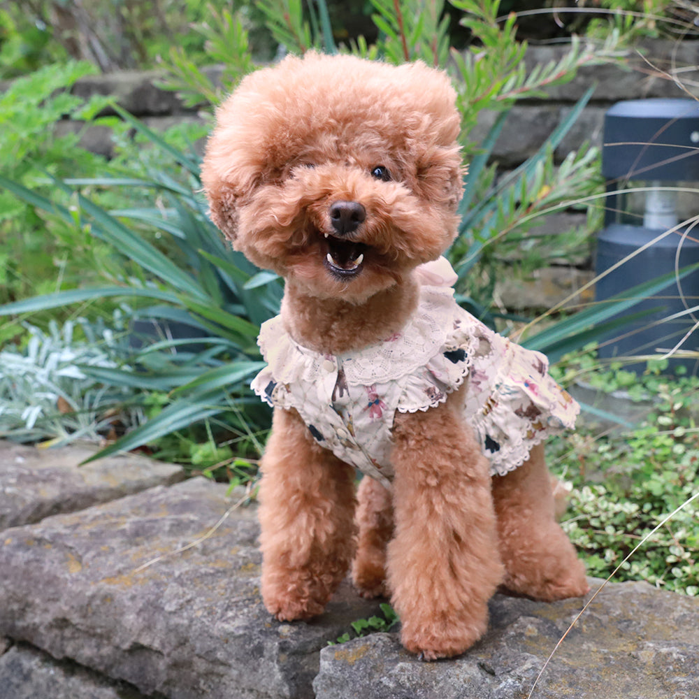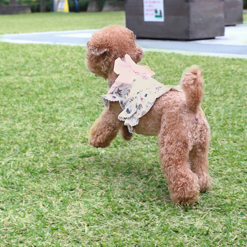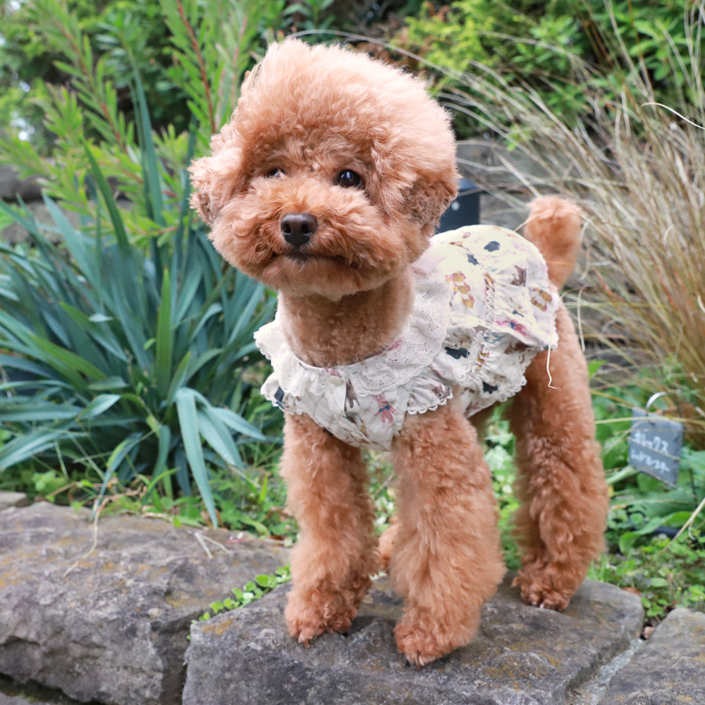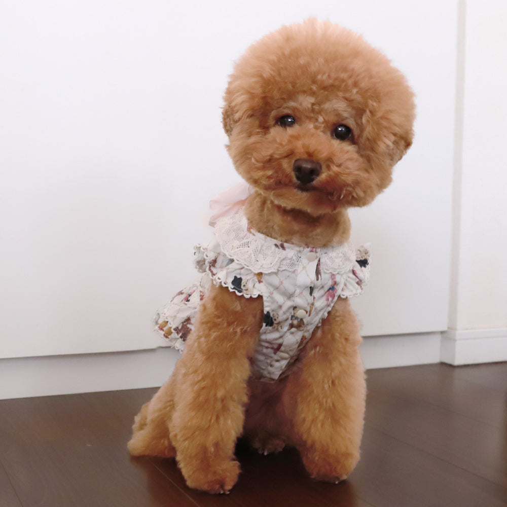リボンにレース、フリルをたっぷりあしらった可愛らしいドッグウェアです。
