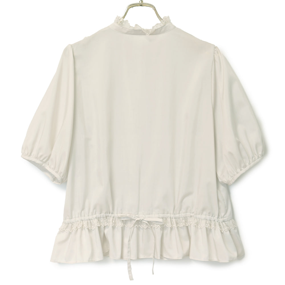 ピンタックとレースの後ろリボンブラウス