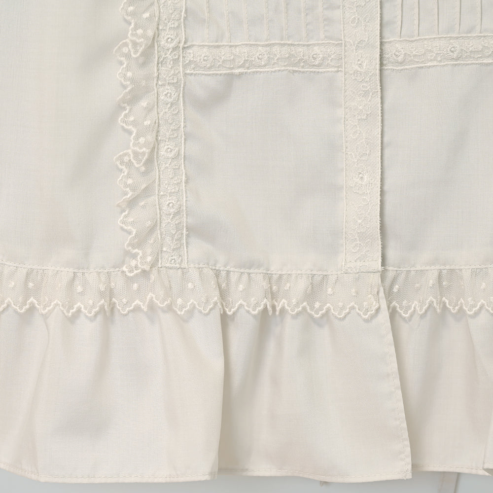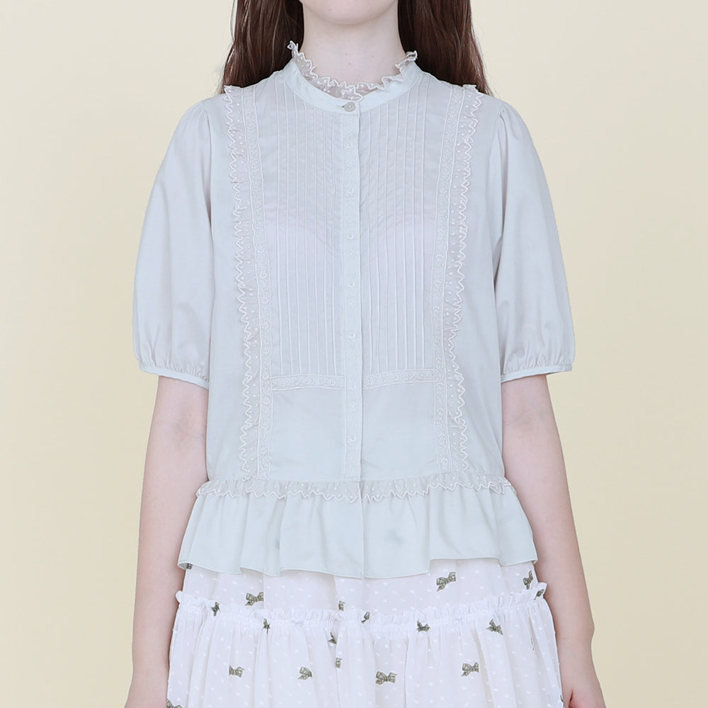 ピンタックとレース使いがポイントのブラウス。