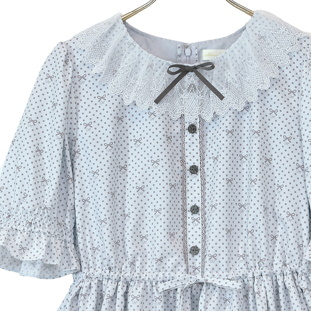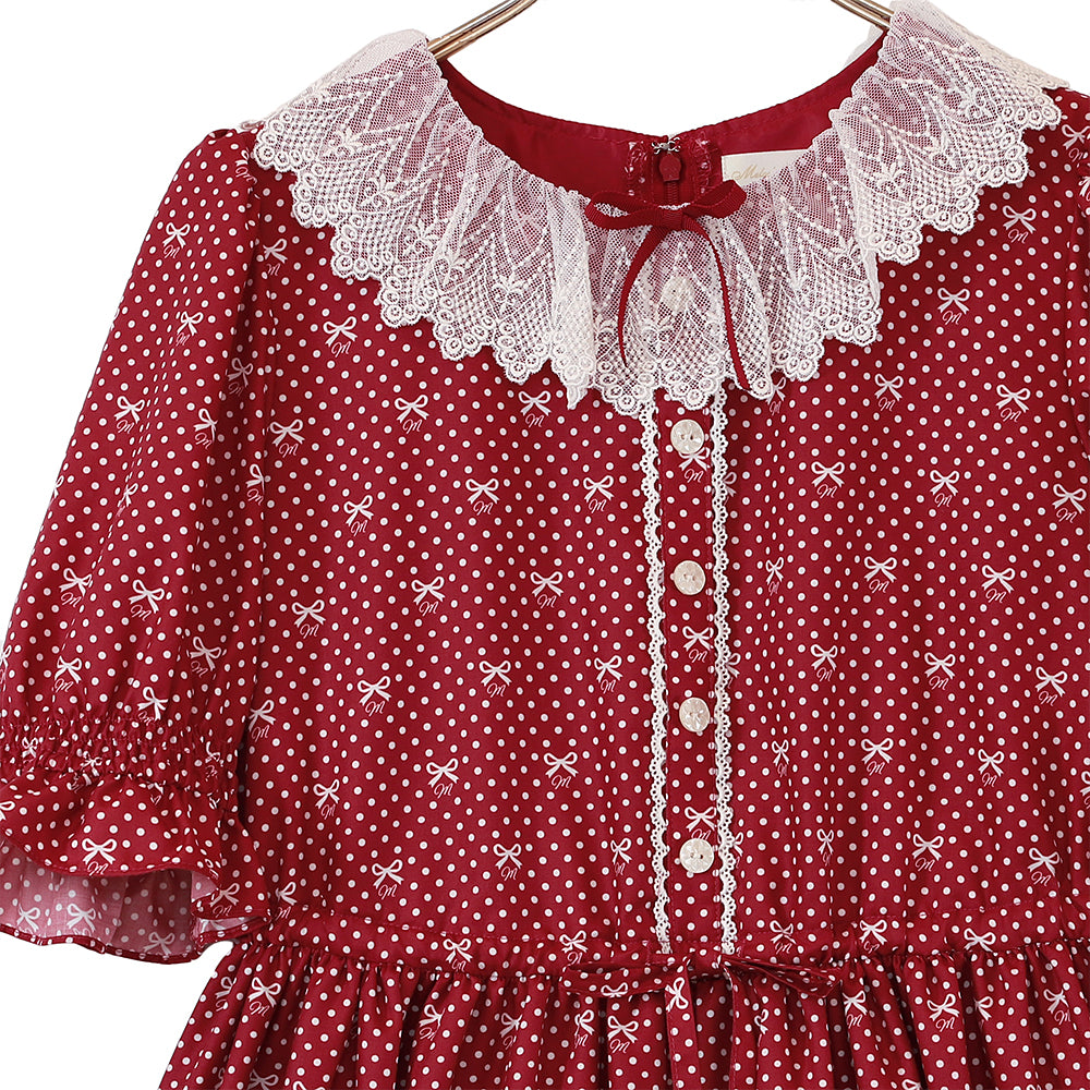 Little dot Ribbonレース襟ワンピース
