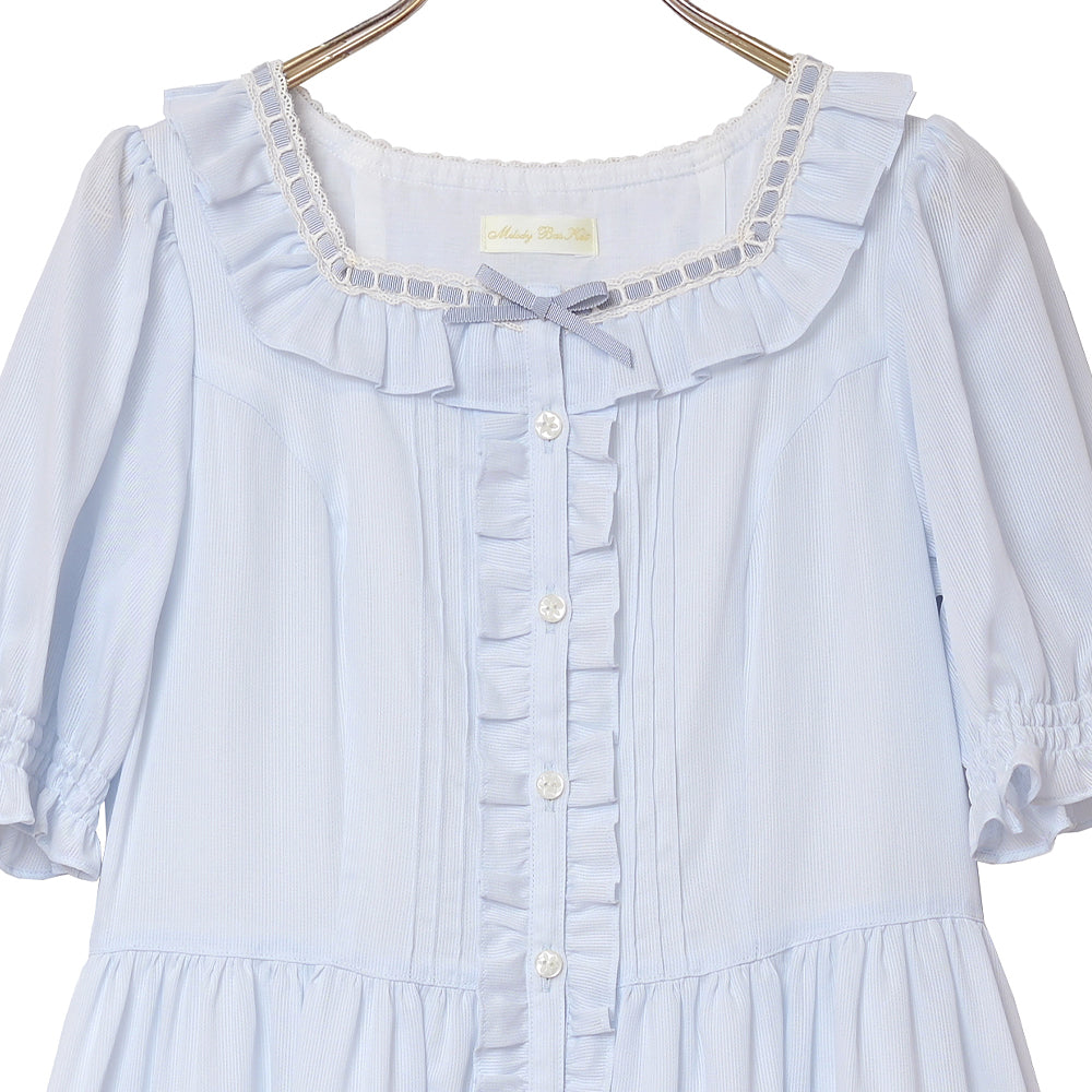 フリルをたっぷりあしらったスクエアネックのワンピース。
