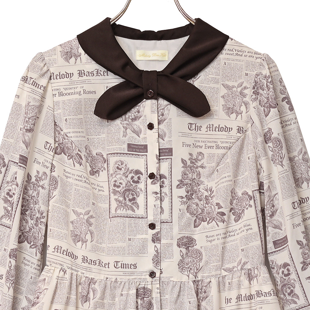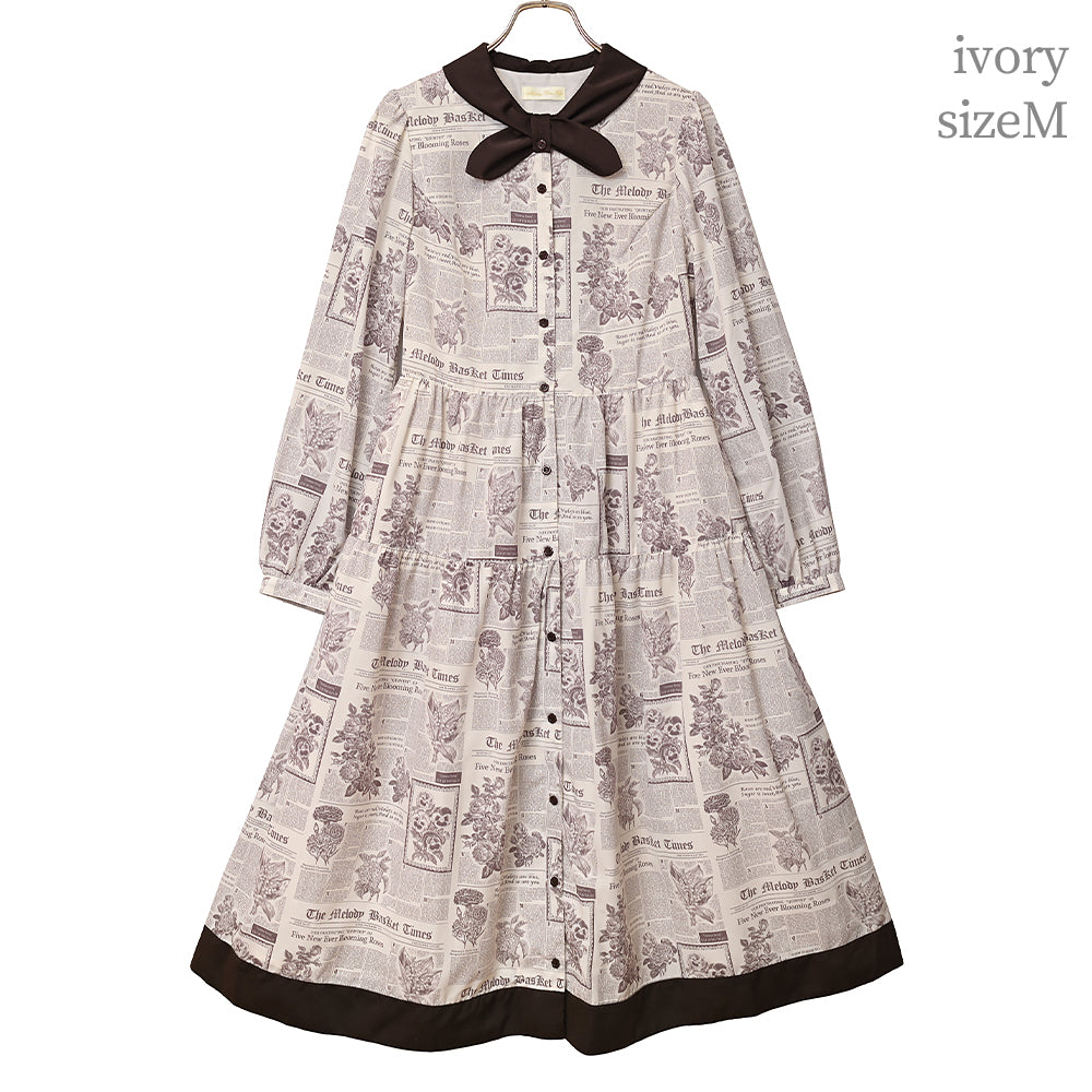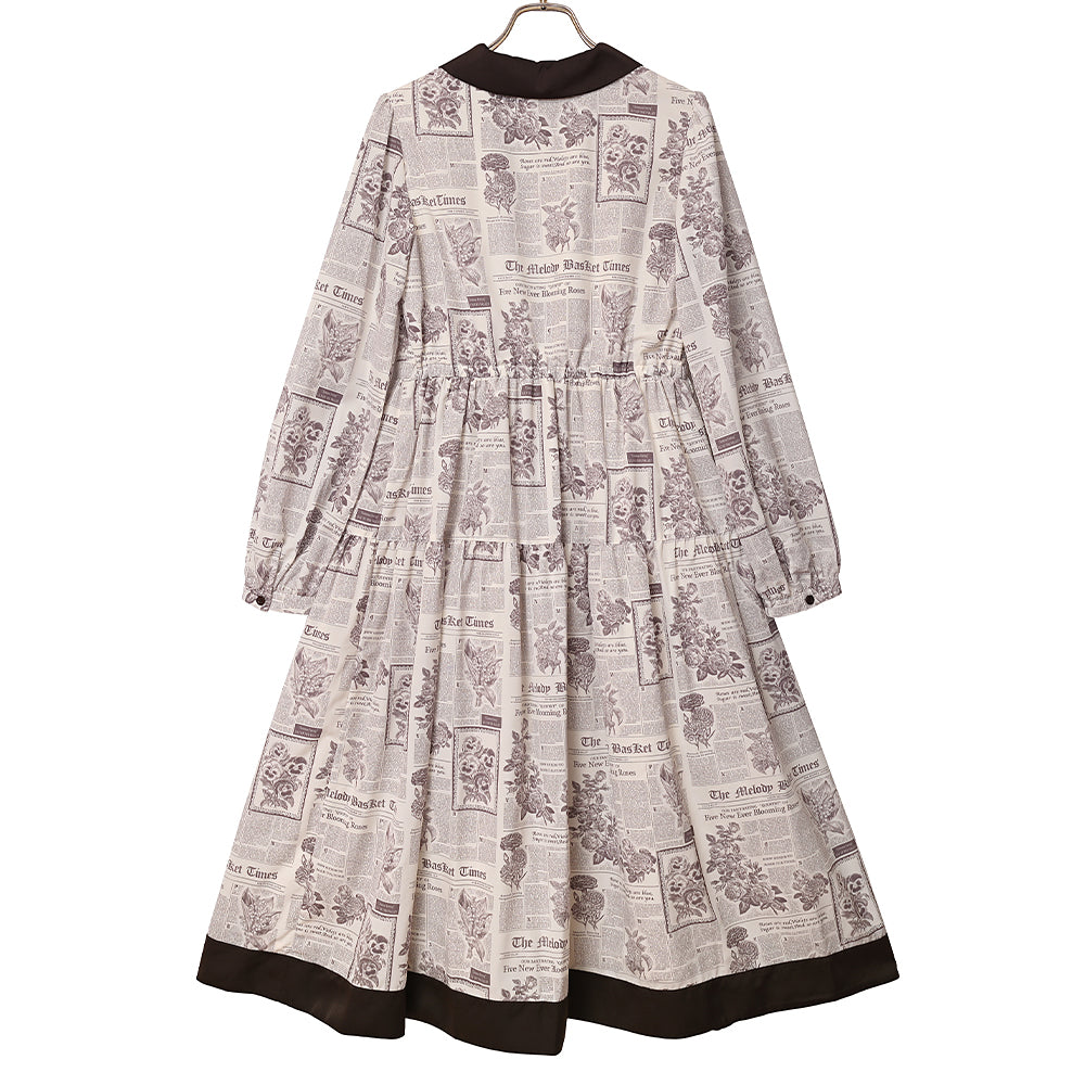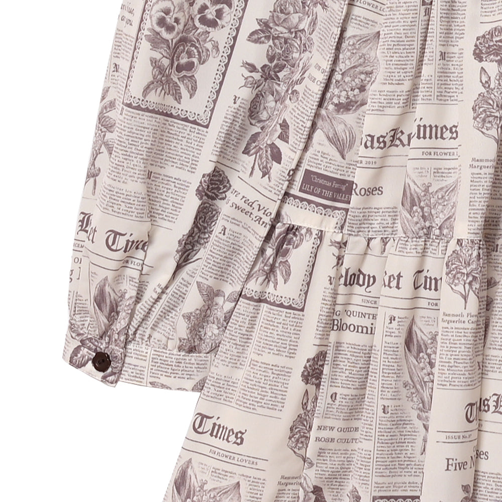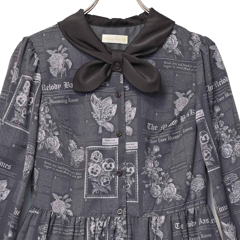 Flower newspaperスカーフカラーワンピース