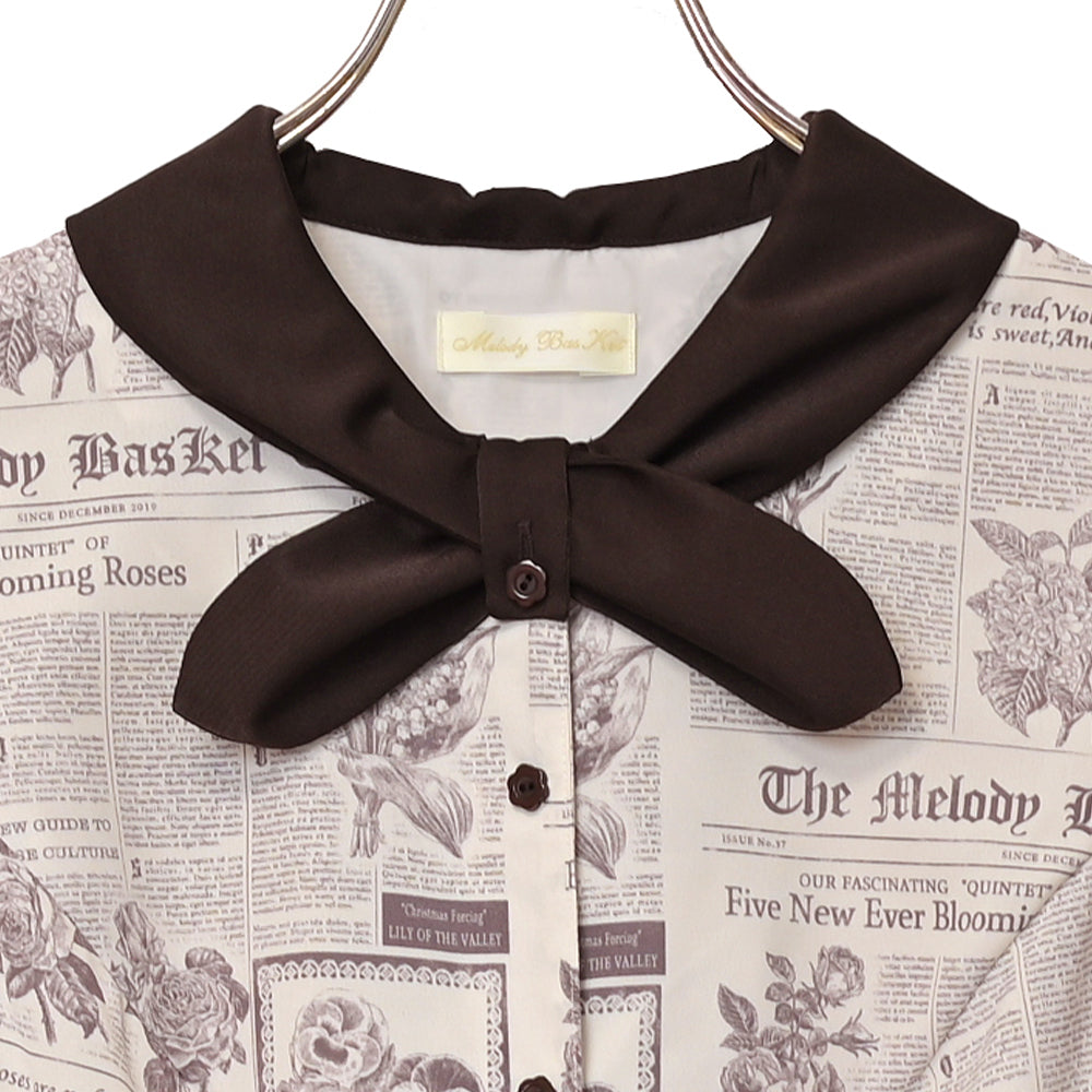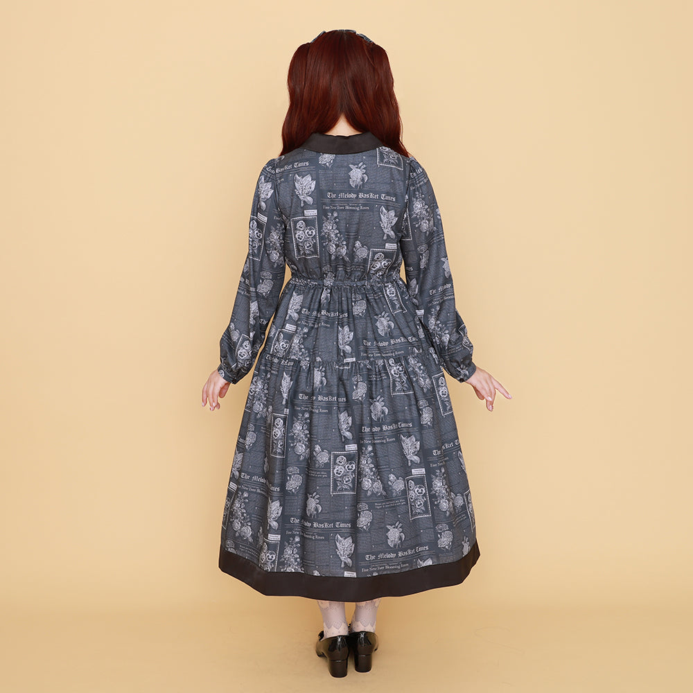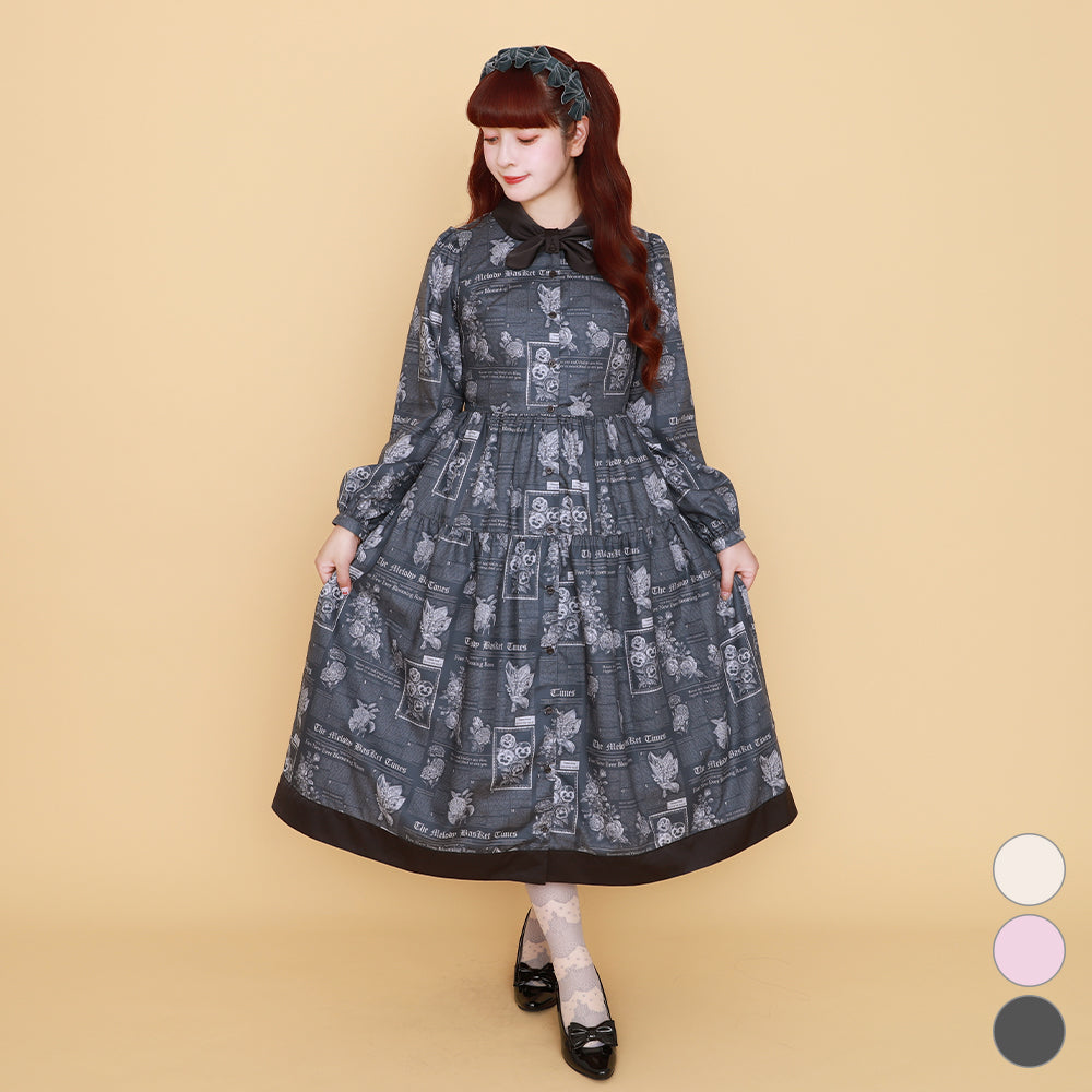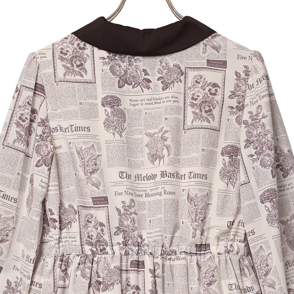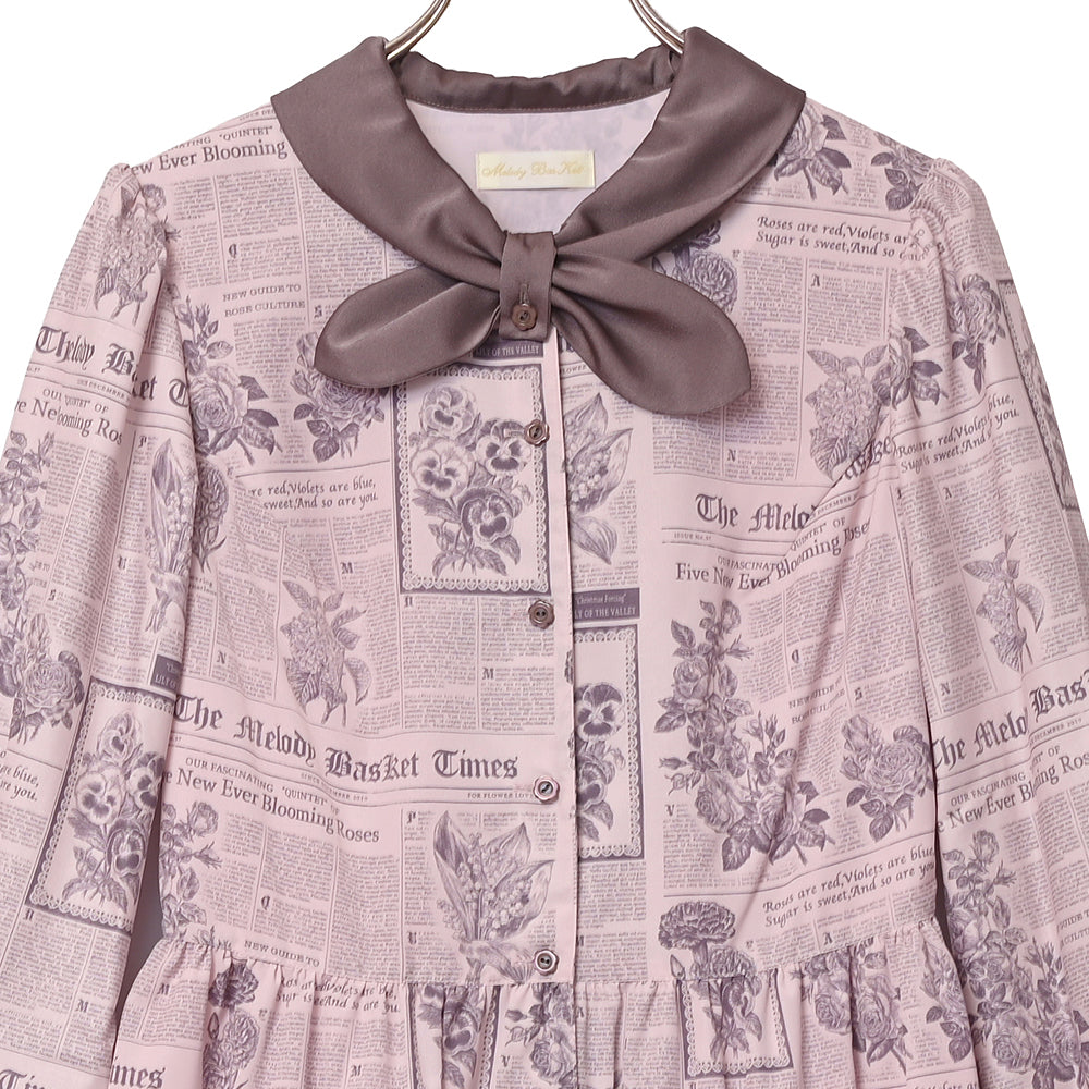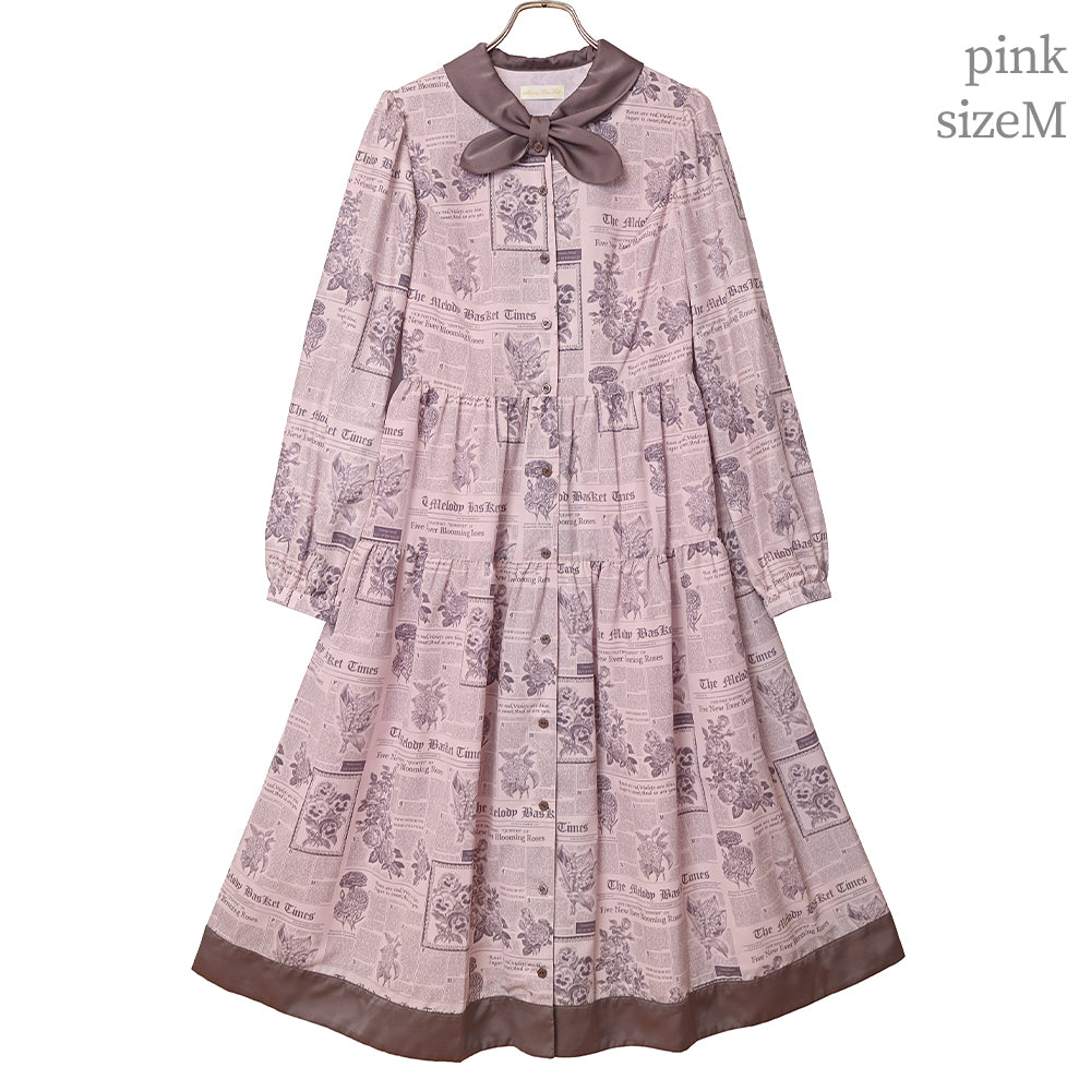 Flower newspaperスカーフカラーワンピース