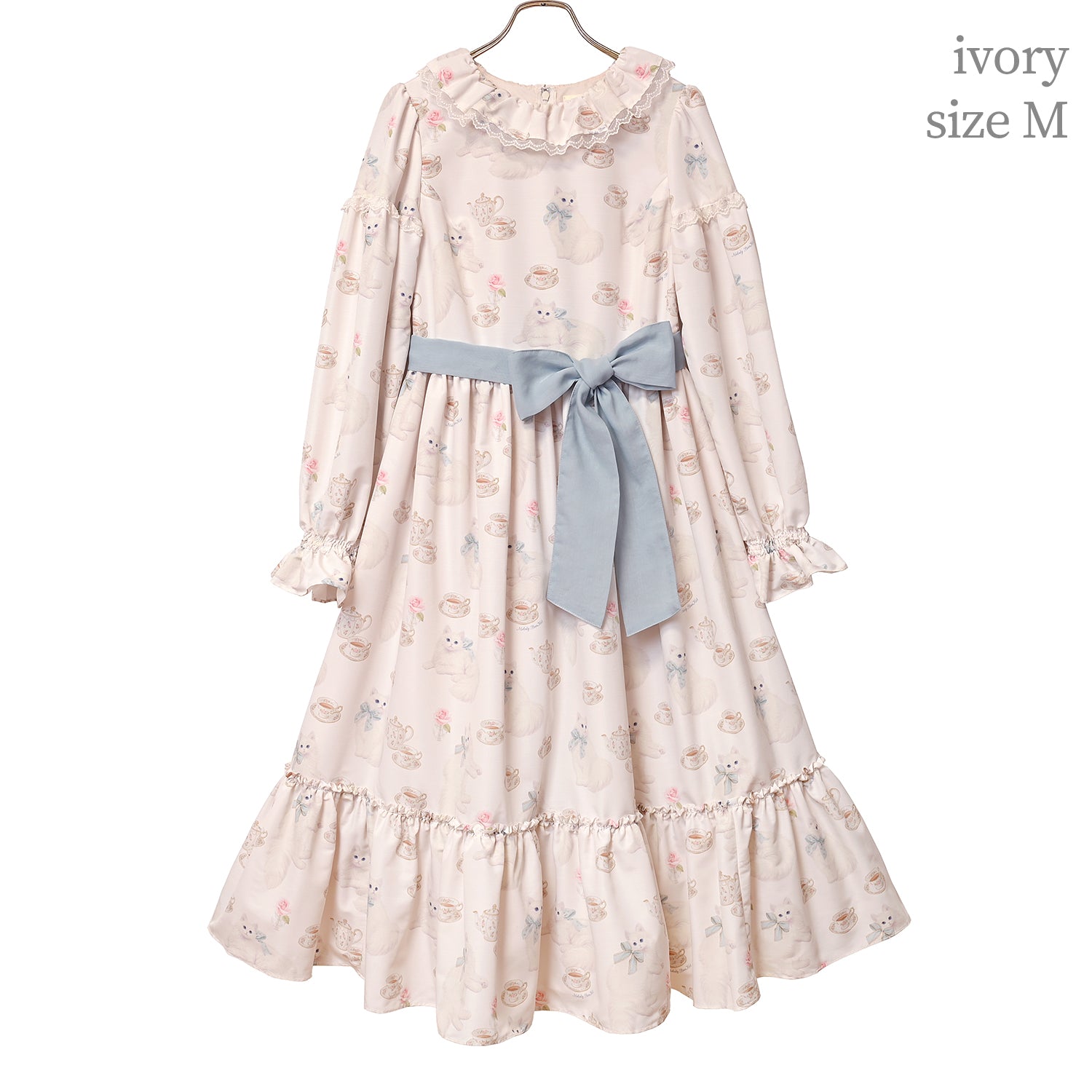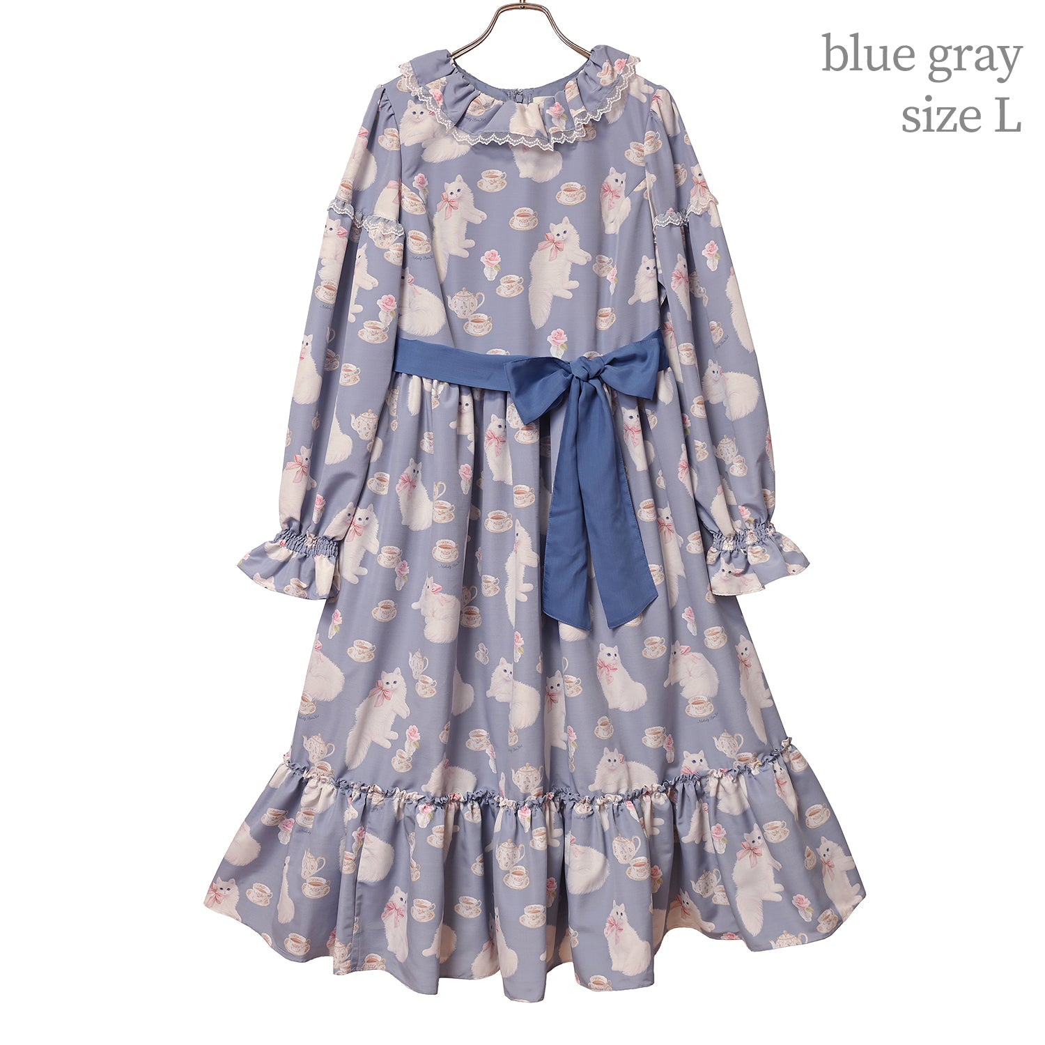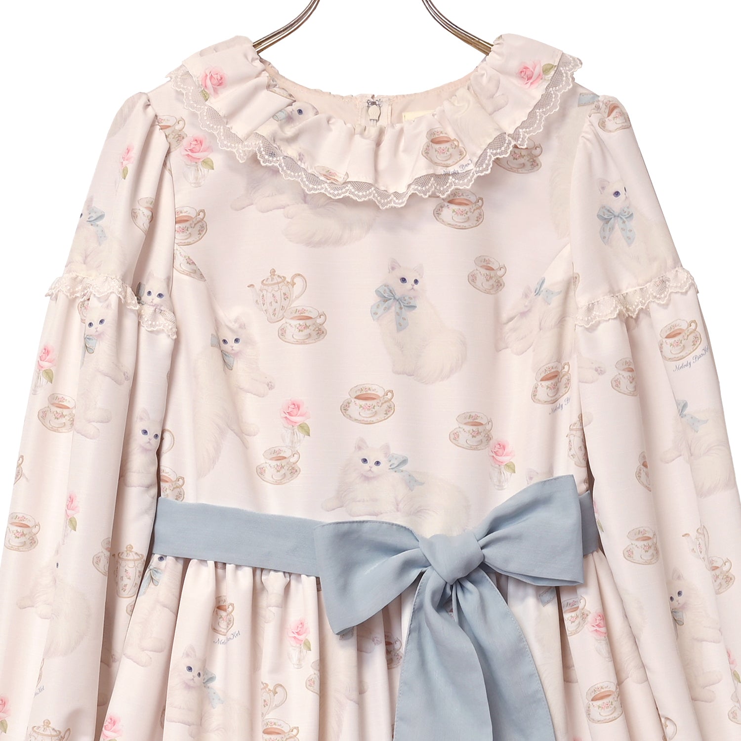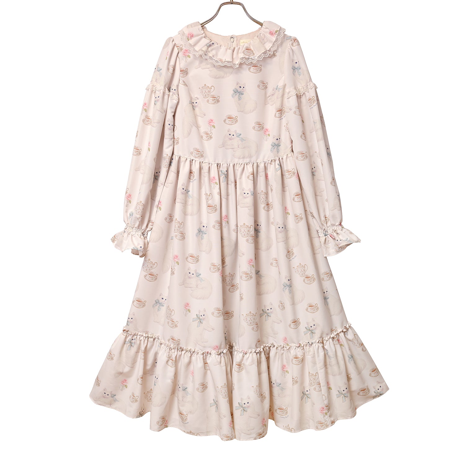 白猫のTea timeフリルカラーワンピース
