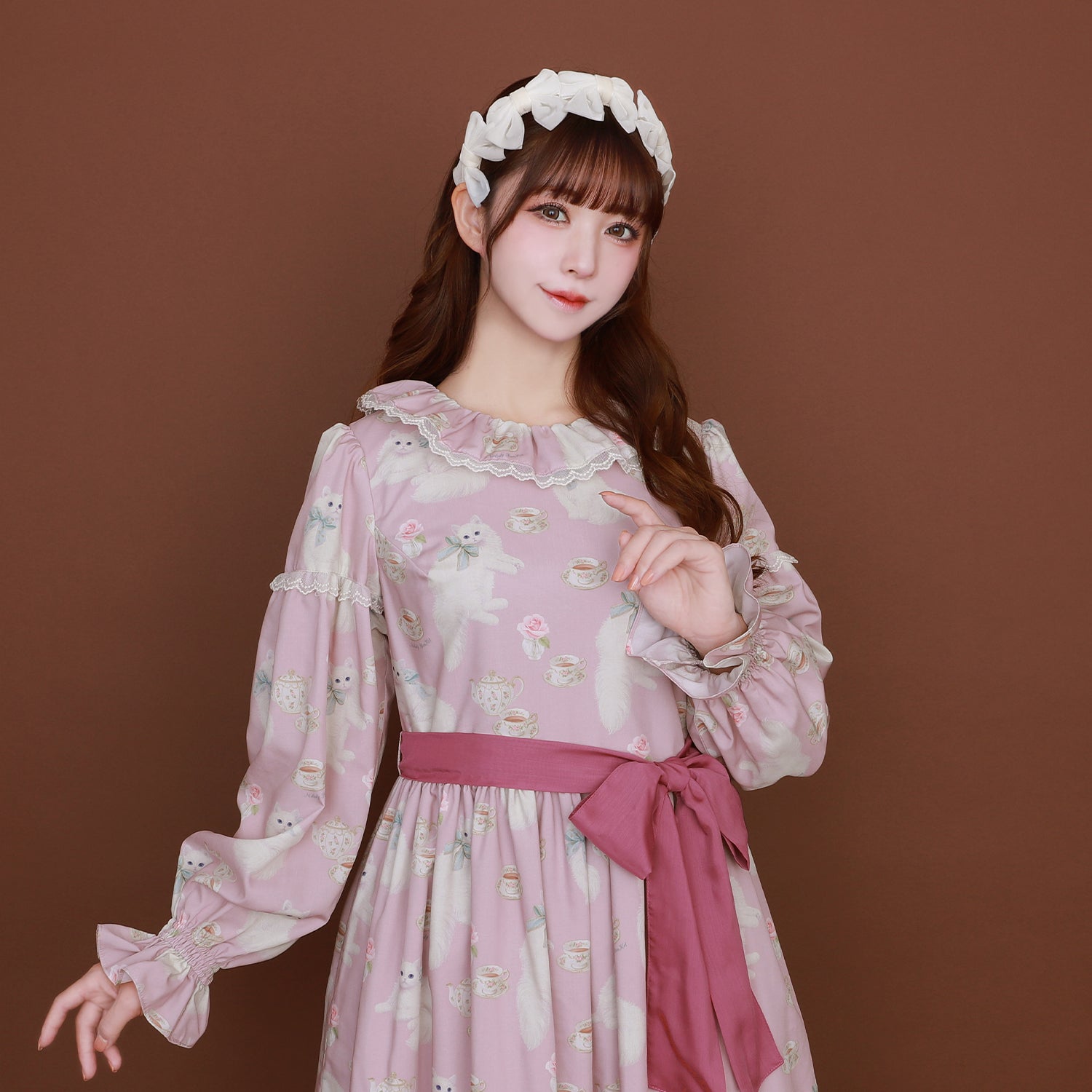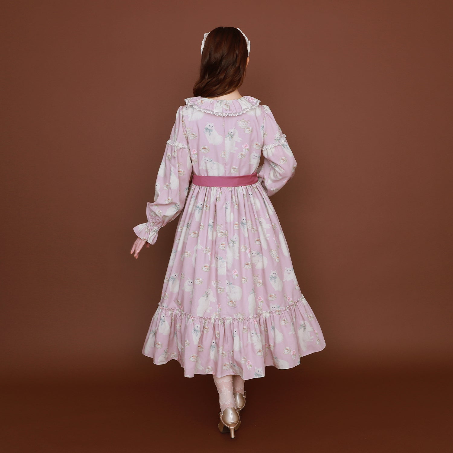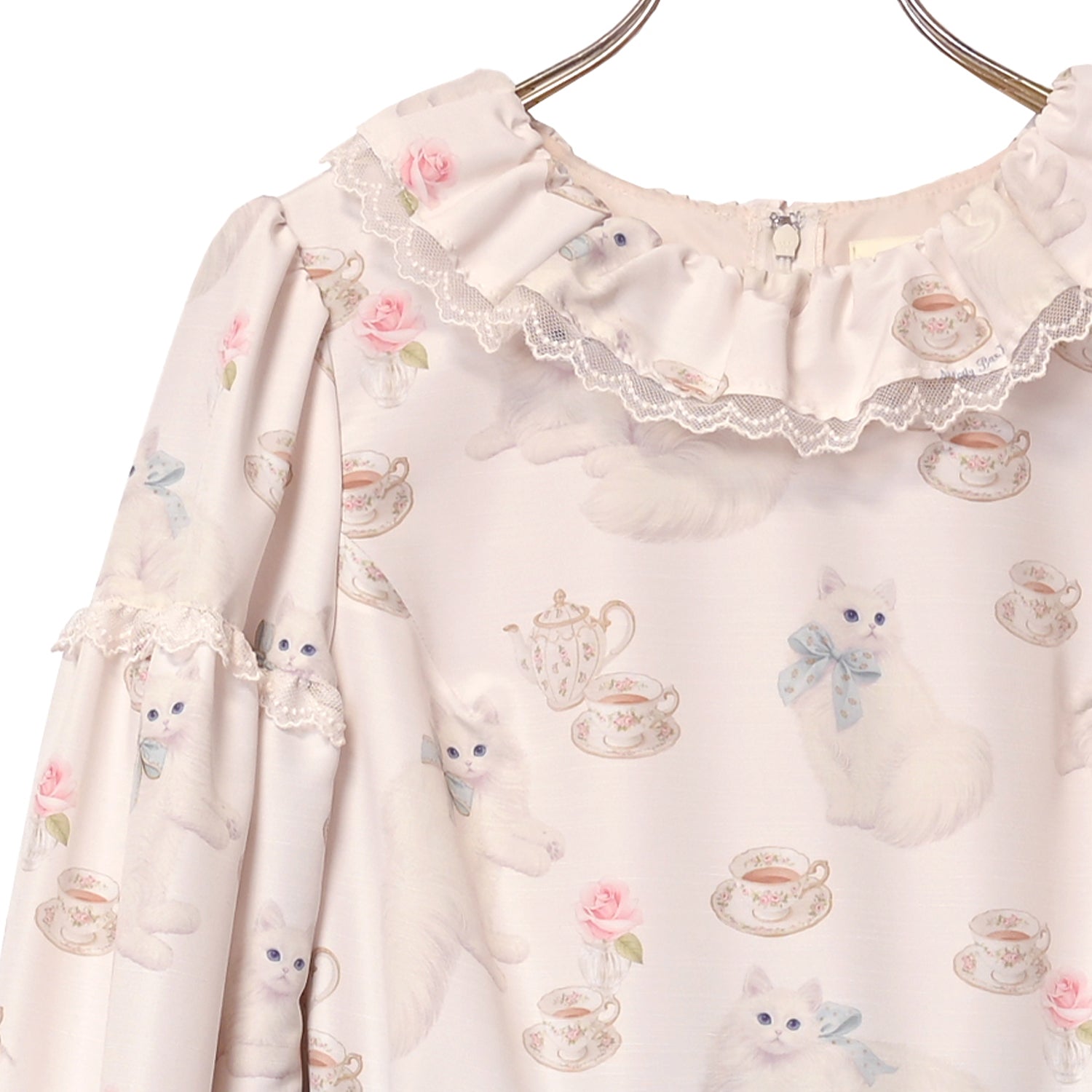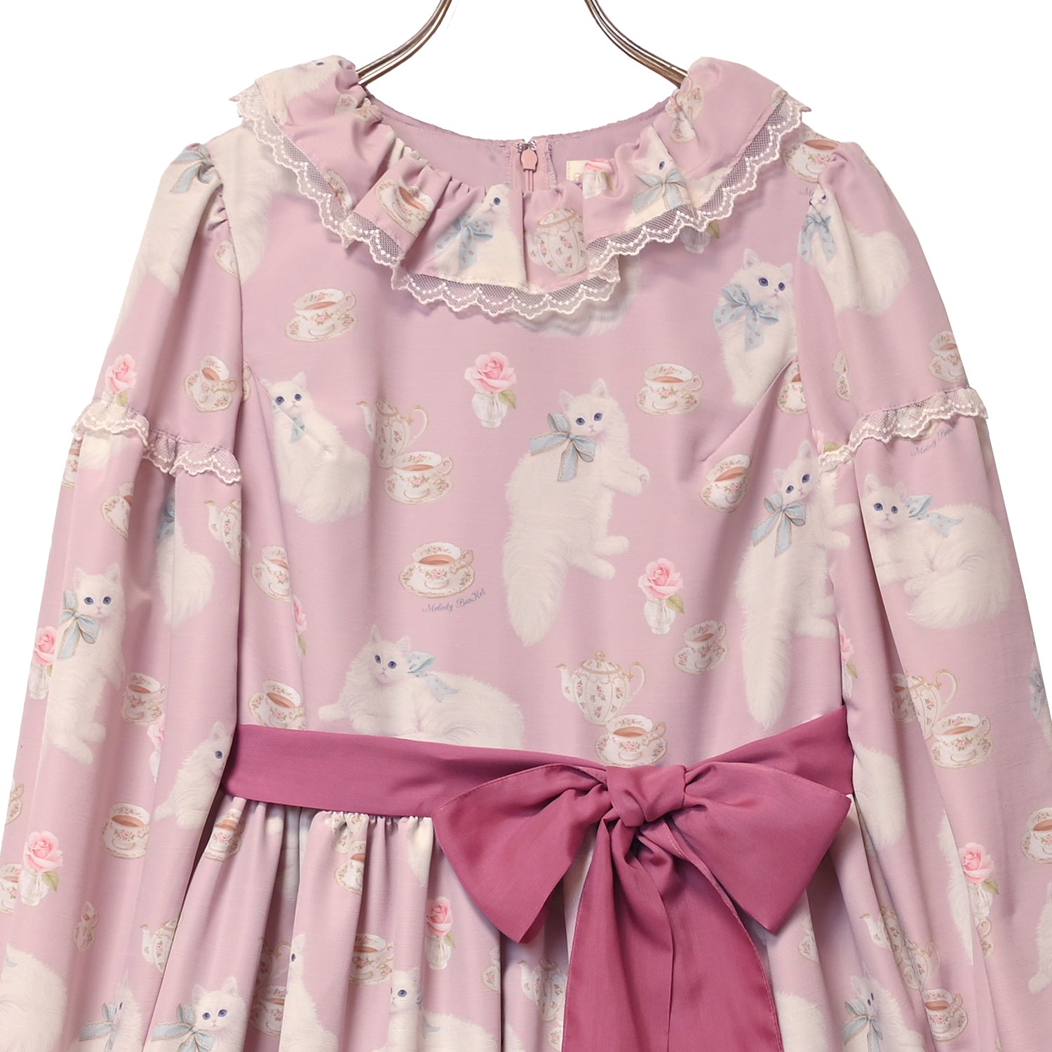 白猫のTea timeフリルカラーワンピース