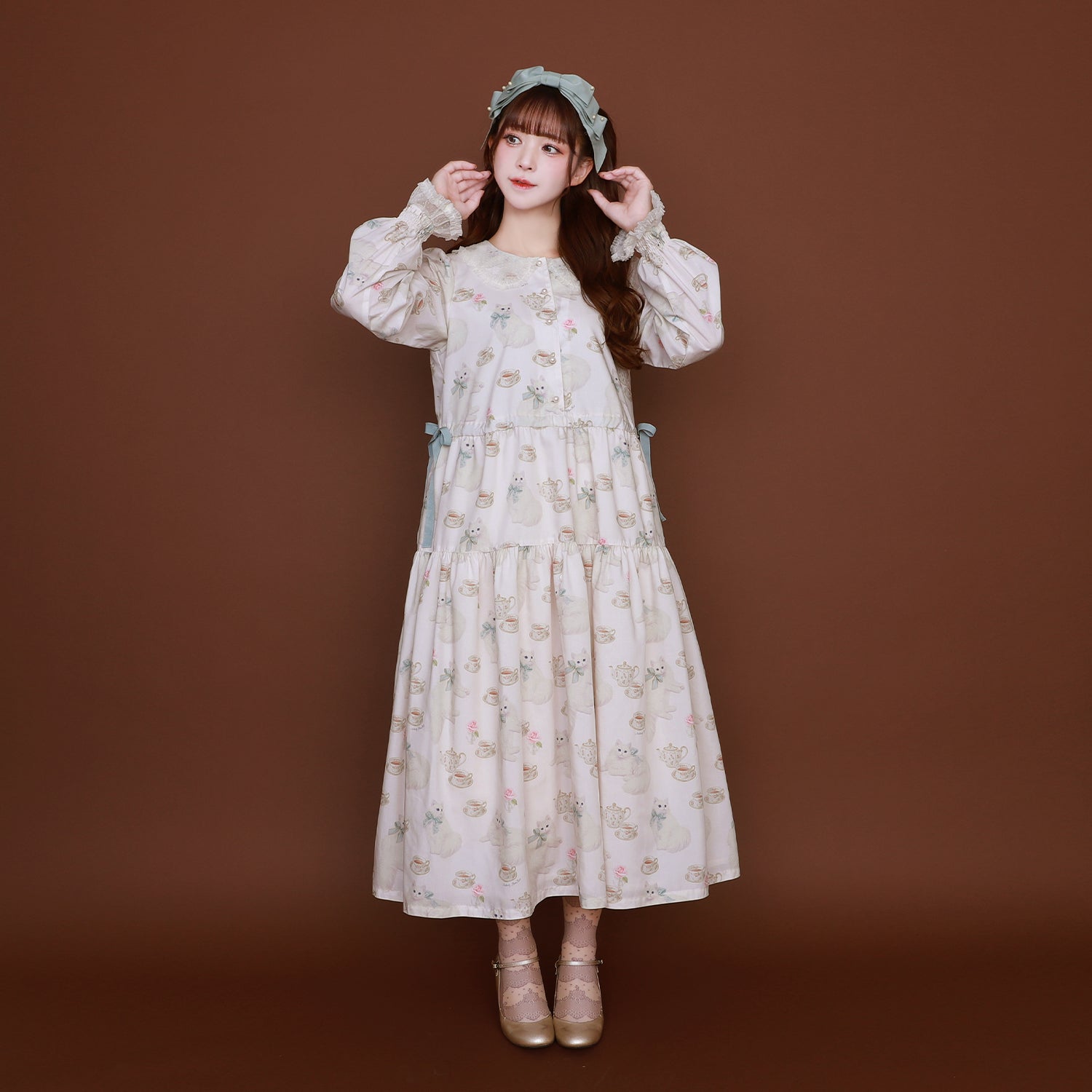 白猫のTea timeサイドリボンワンピース