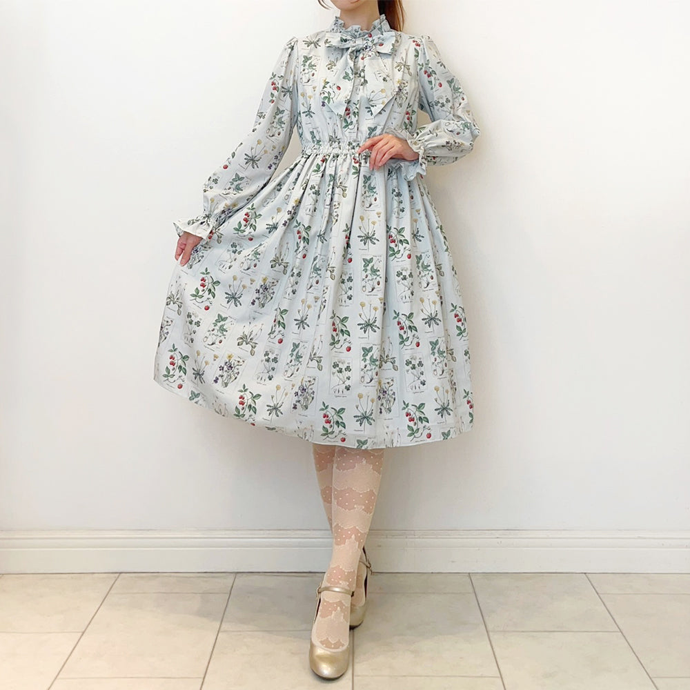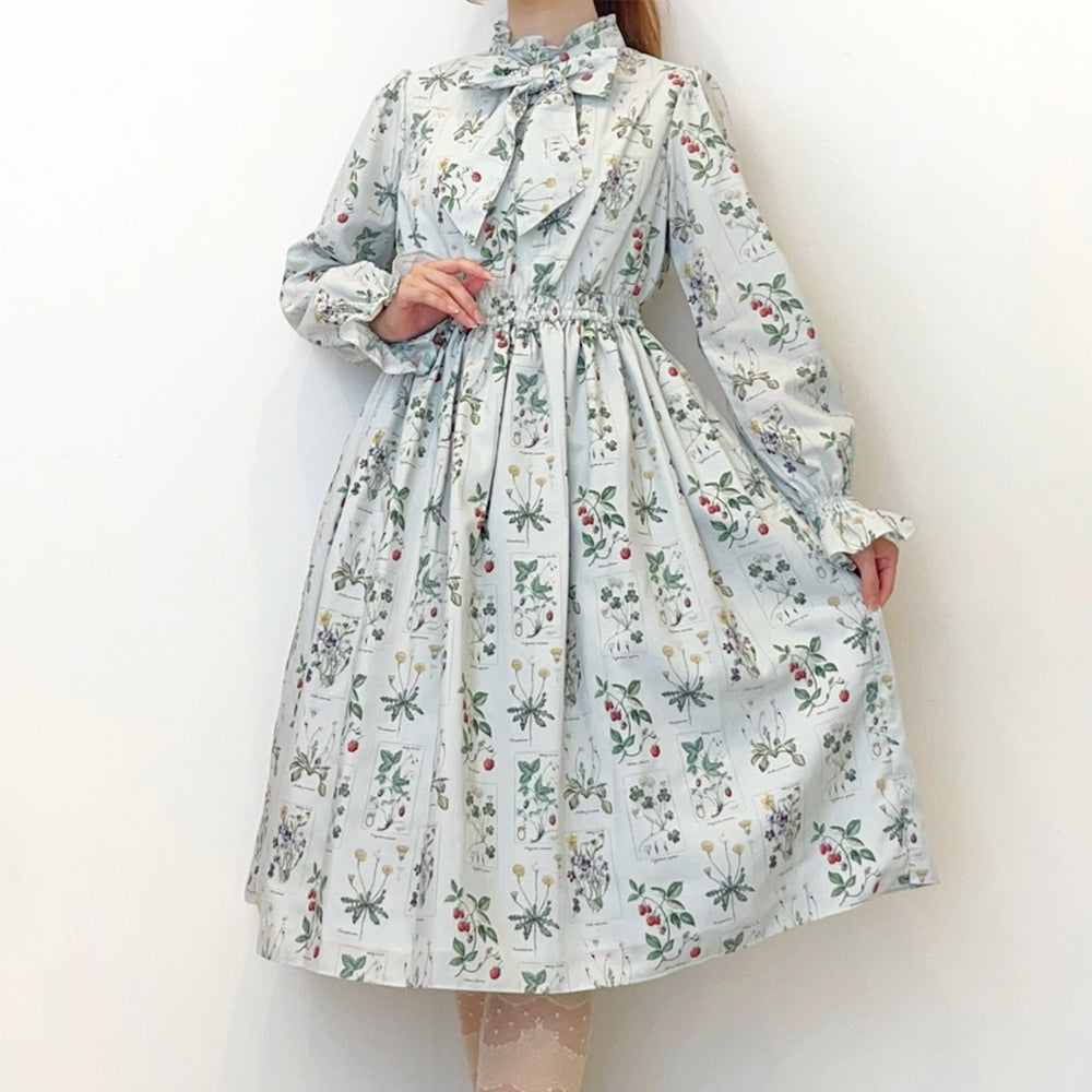 植物図鑑ボウタイ長袖ワンピース
