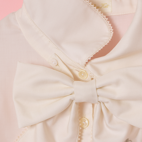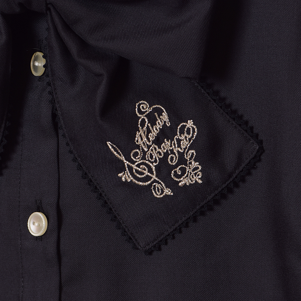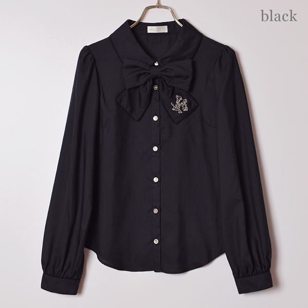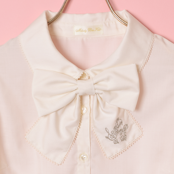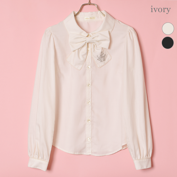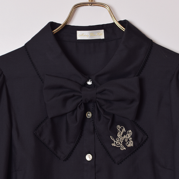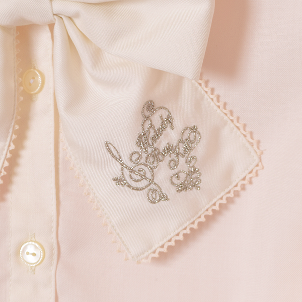ロゴ刺繍リボンタイブラウス