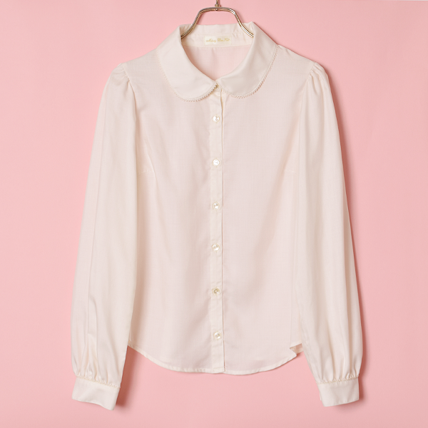 ロゴ刺繍が施されたリボンタイがポイントの上品な長袖ブラウス。