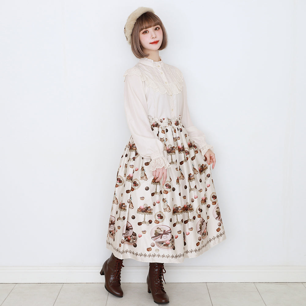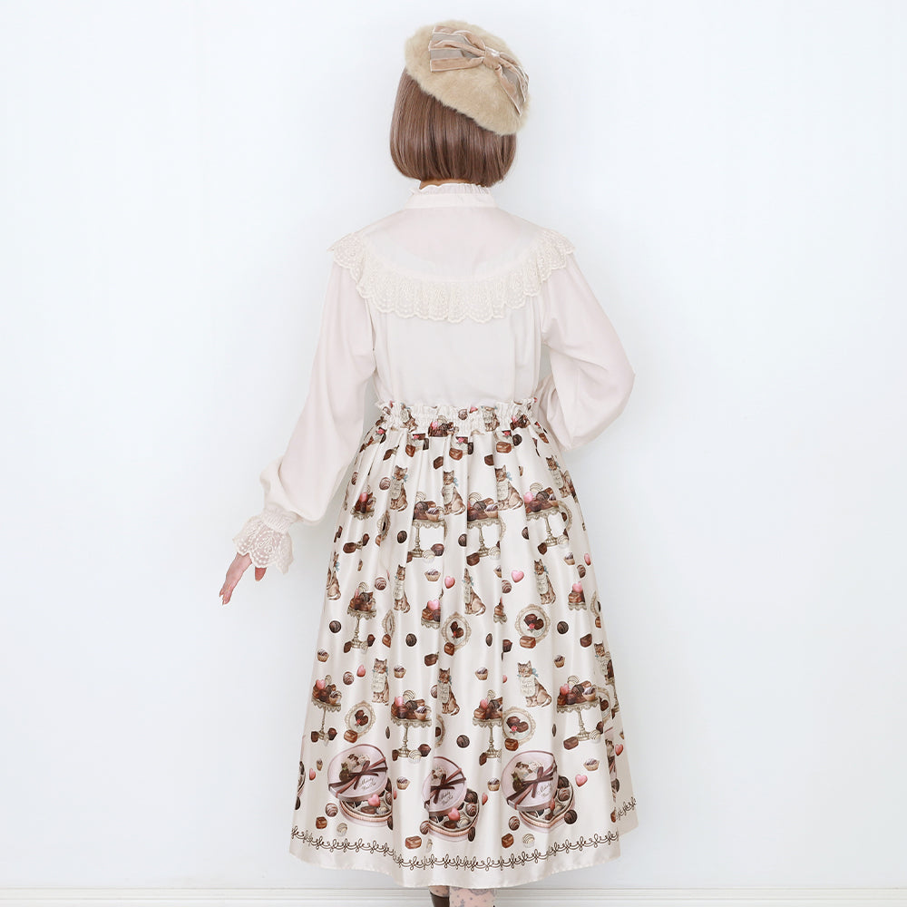 ヨークに華奢なトーションレースをトッピングし、周囲にはオリジナルチュールレースで華やかに縁取りました。