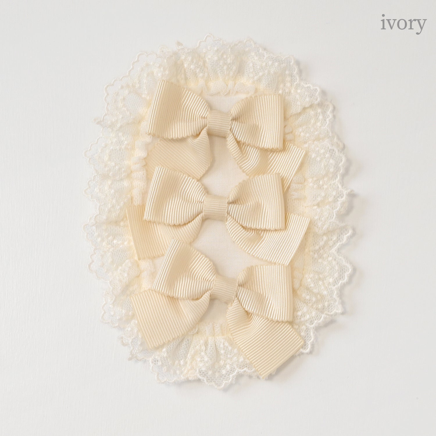 美沙子様が大好きなリボンを3つトッピングした、ミニヘッドドレス風ヘアクリップ。