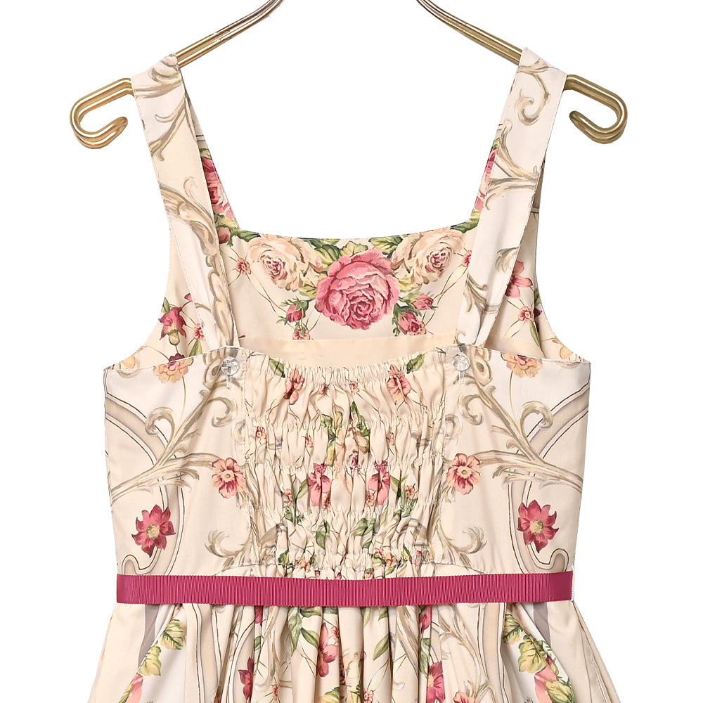 柄を際立たせるスクエアネックデザインのジャンパースカート。