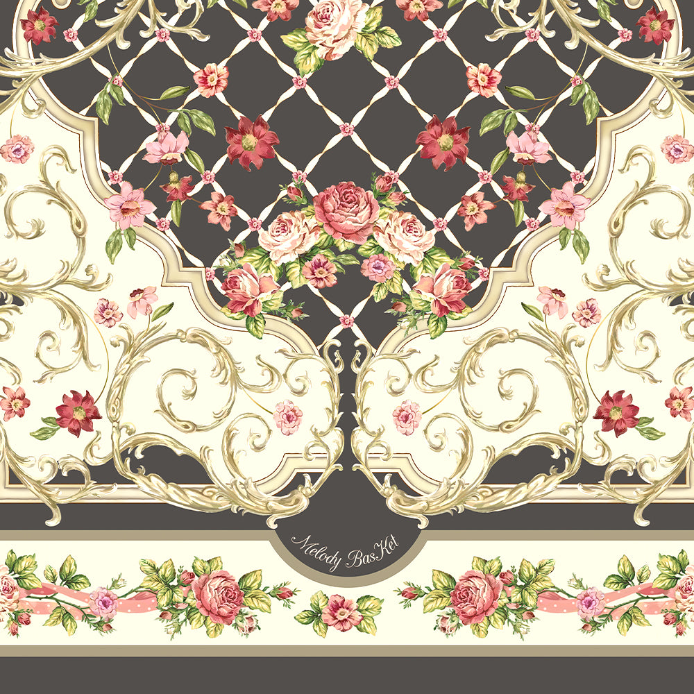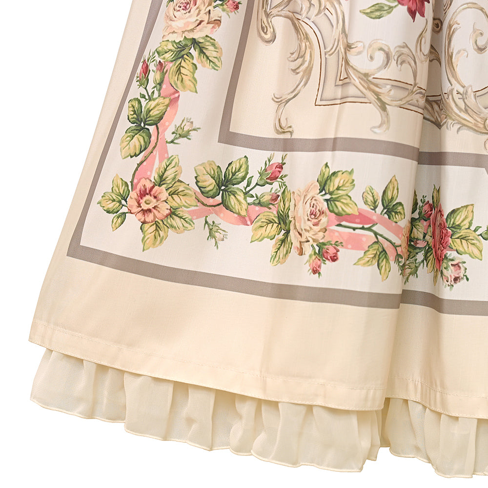 ロココエッセンスを纏ったバラ柄のスカーフ。