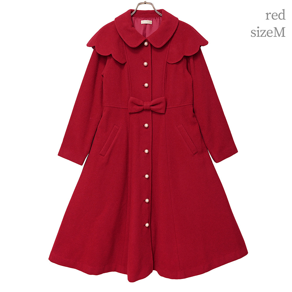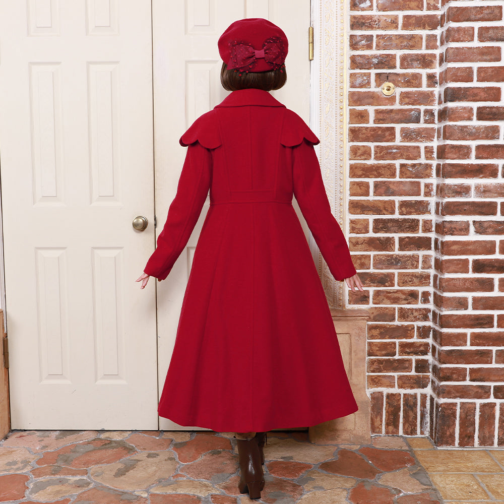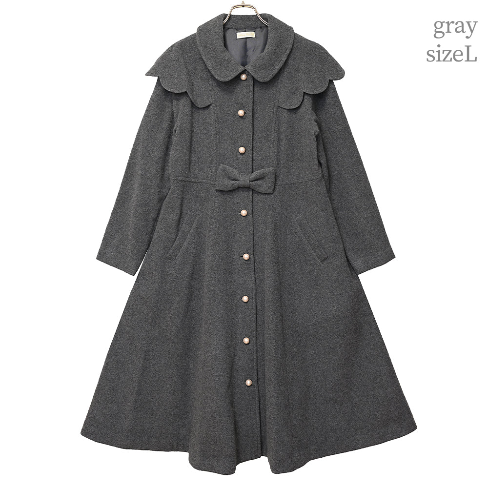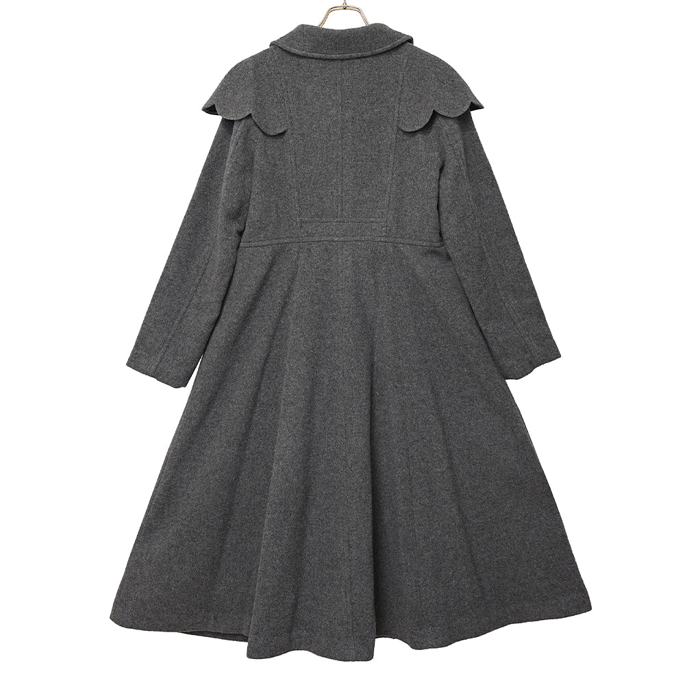 ショルダー部分のスカラップデザインがポイントのロングコート。