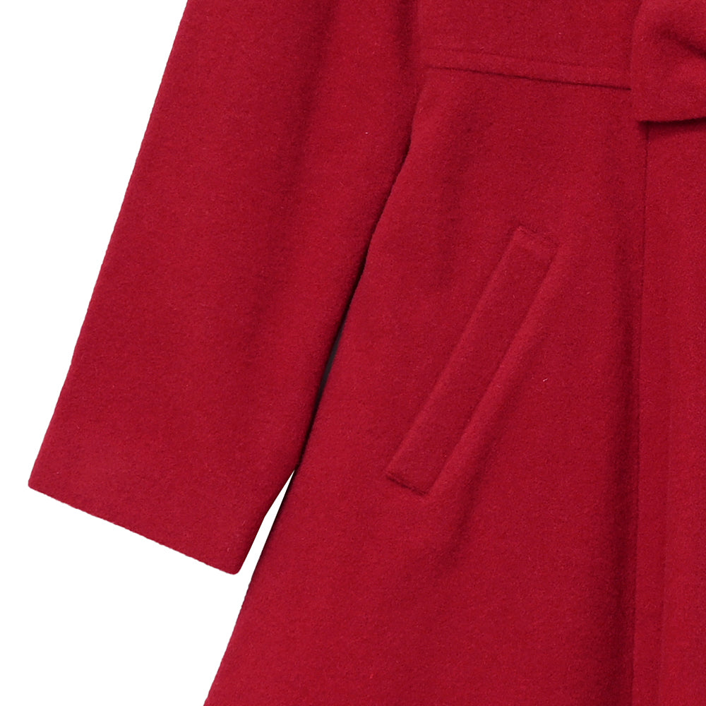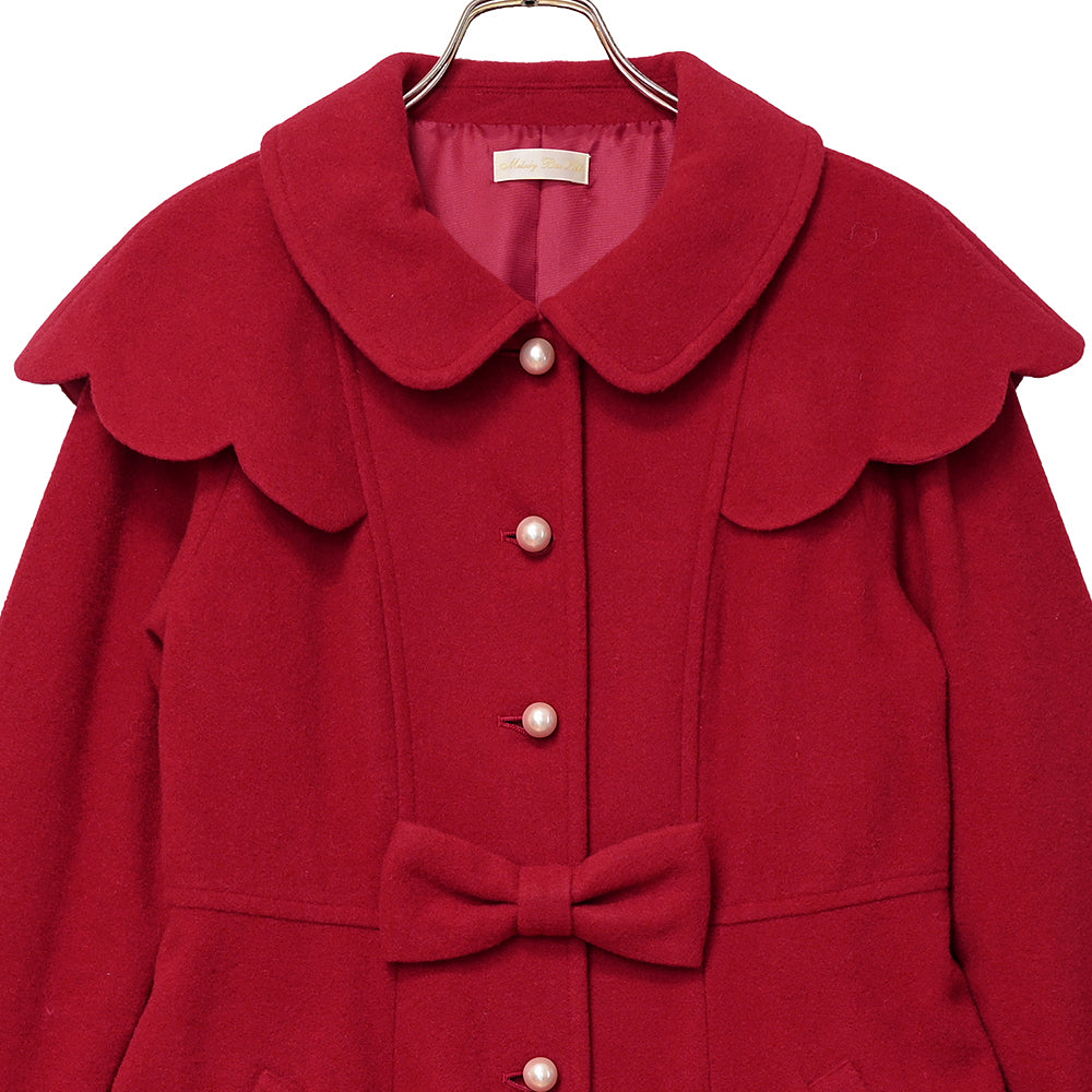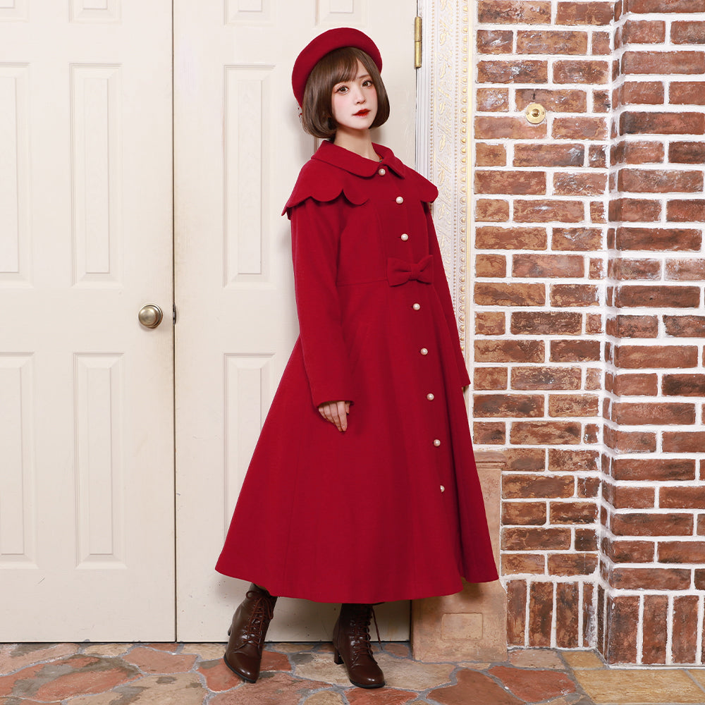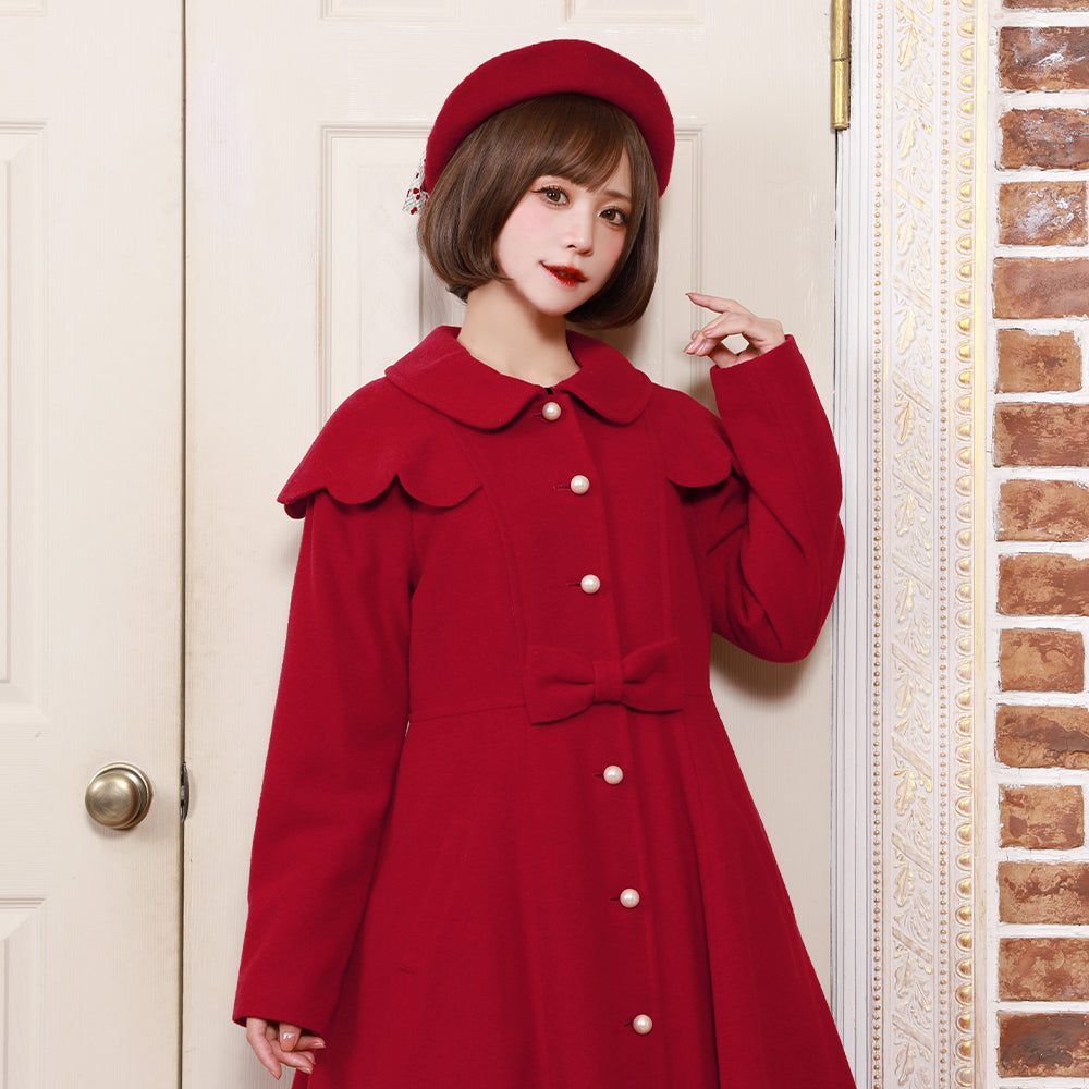 ショルダー部分のスカラップデザインがポイントのロングコート。
