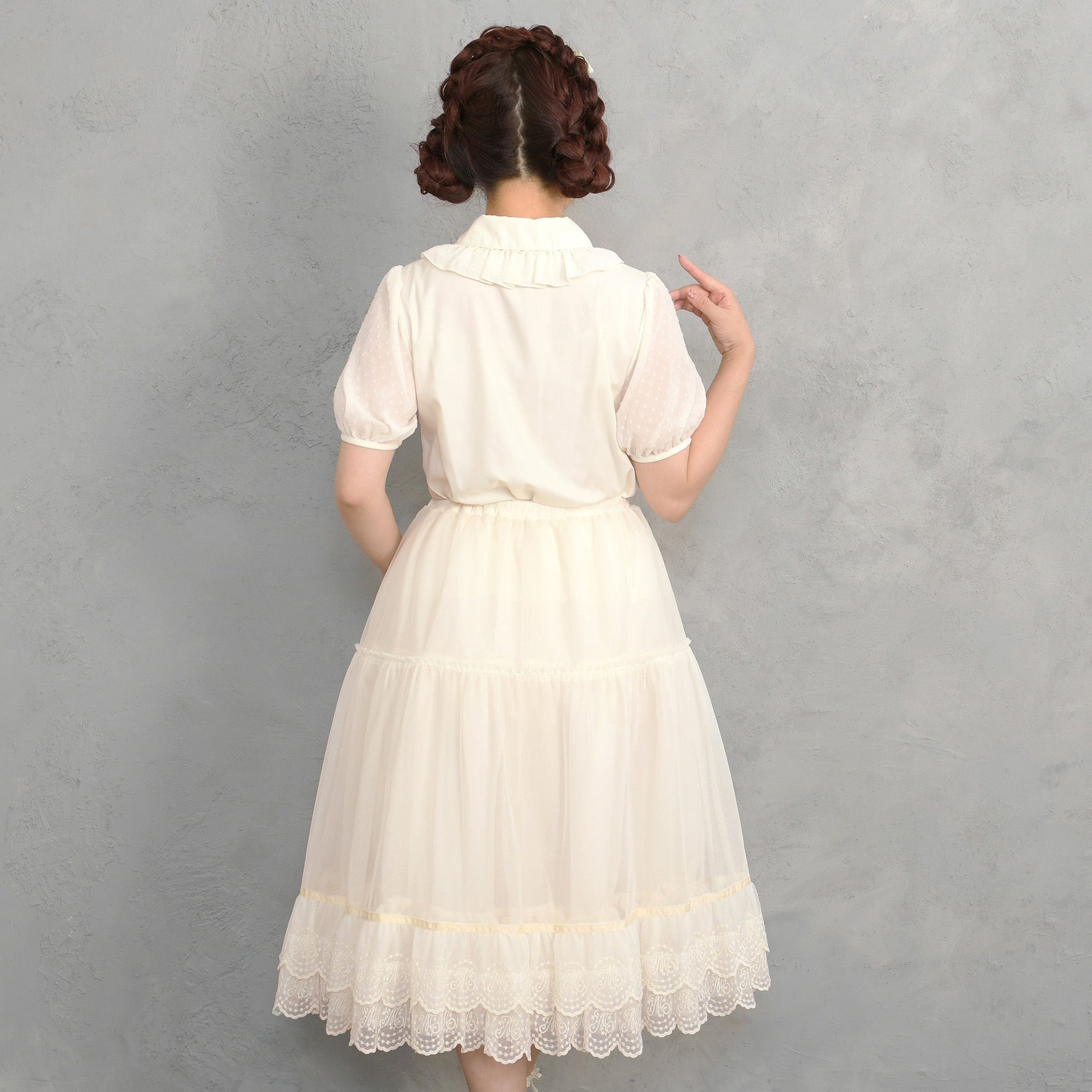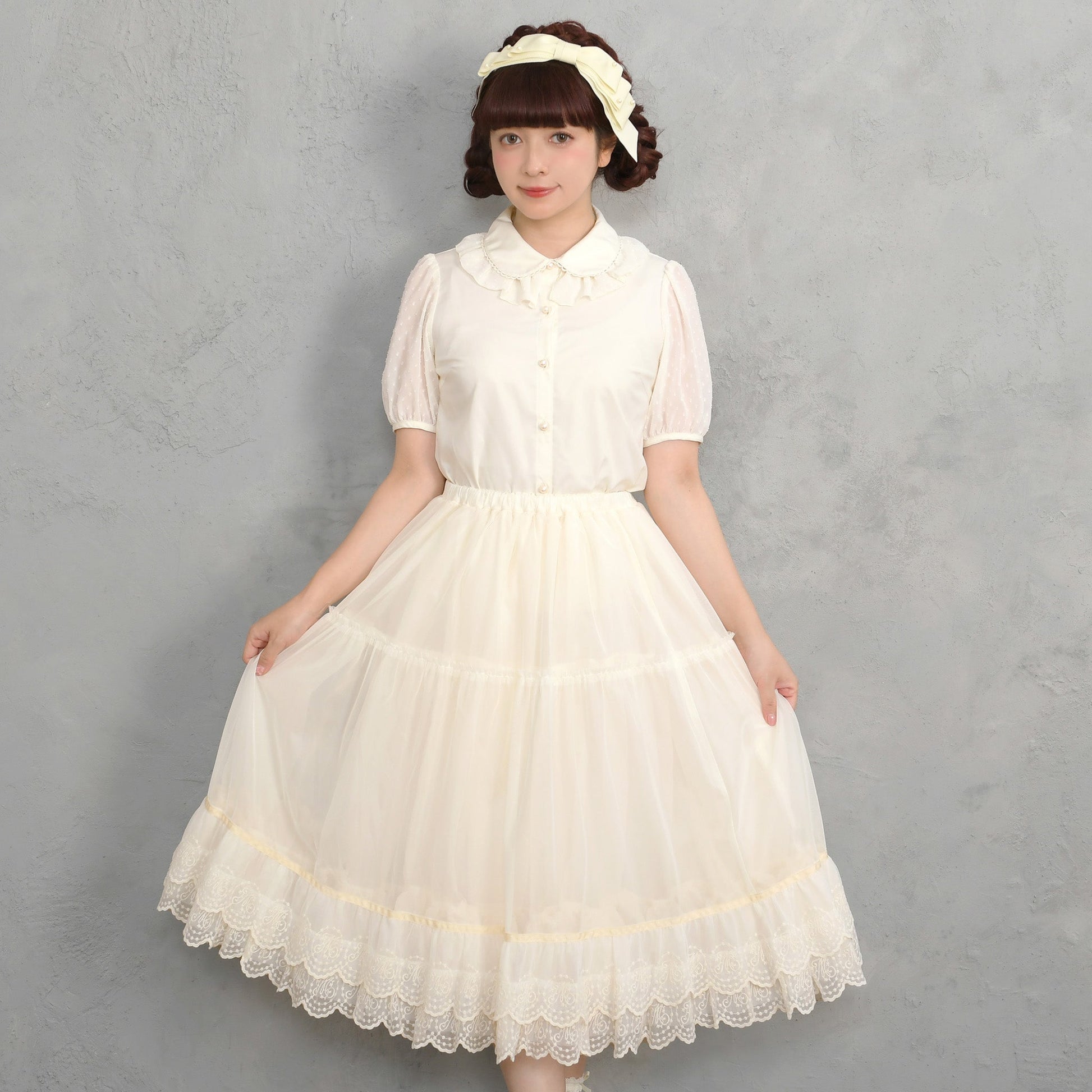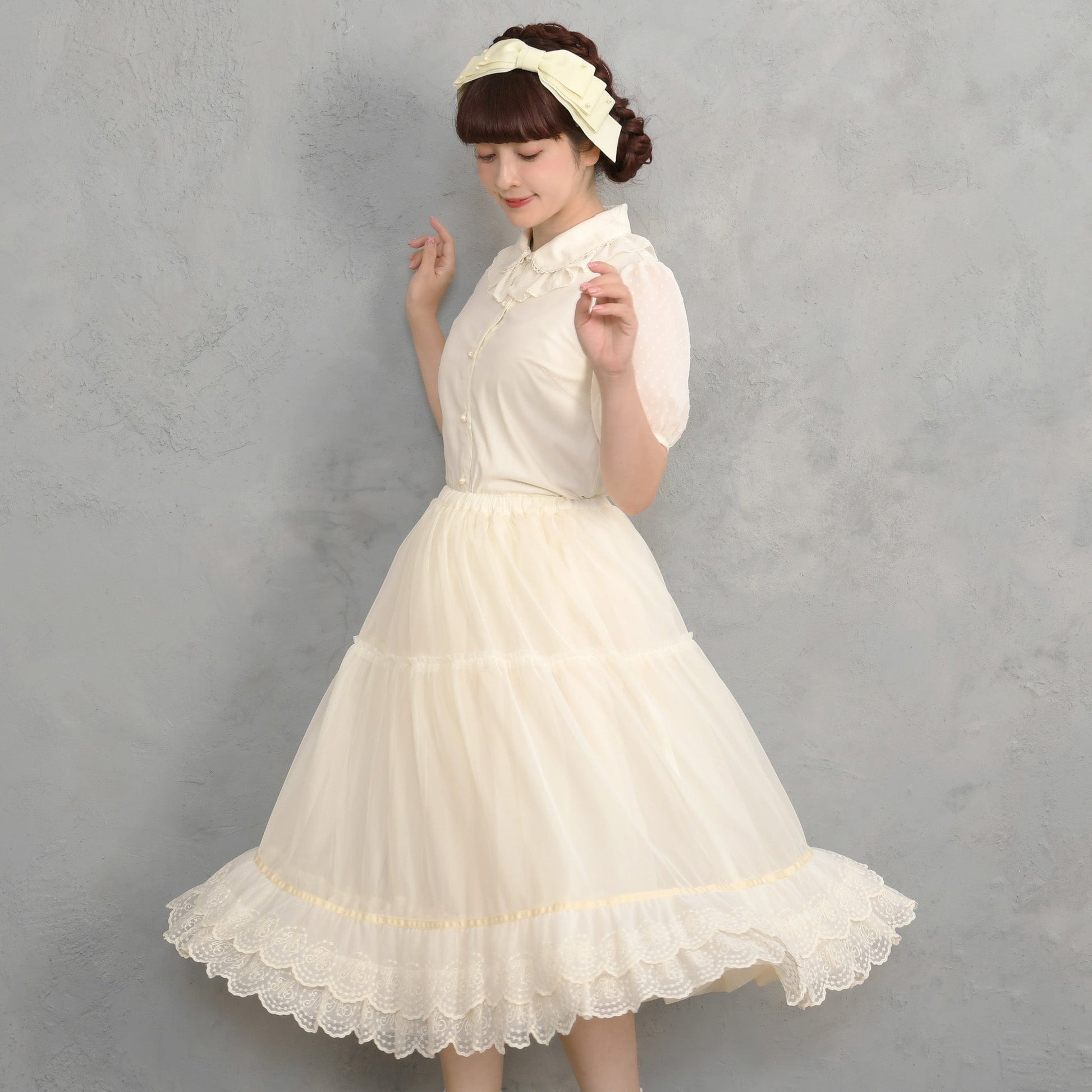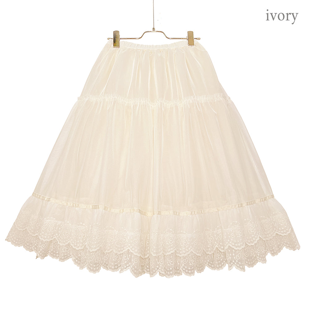柔らかなチュールとオーガンジーを幾重にも重ね、裾にはオリジナルレースをふんだんにトッピング。ボリューム感を楽しめます。