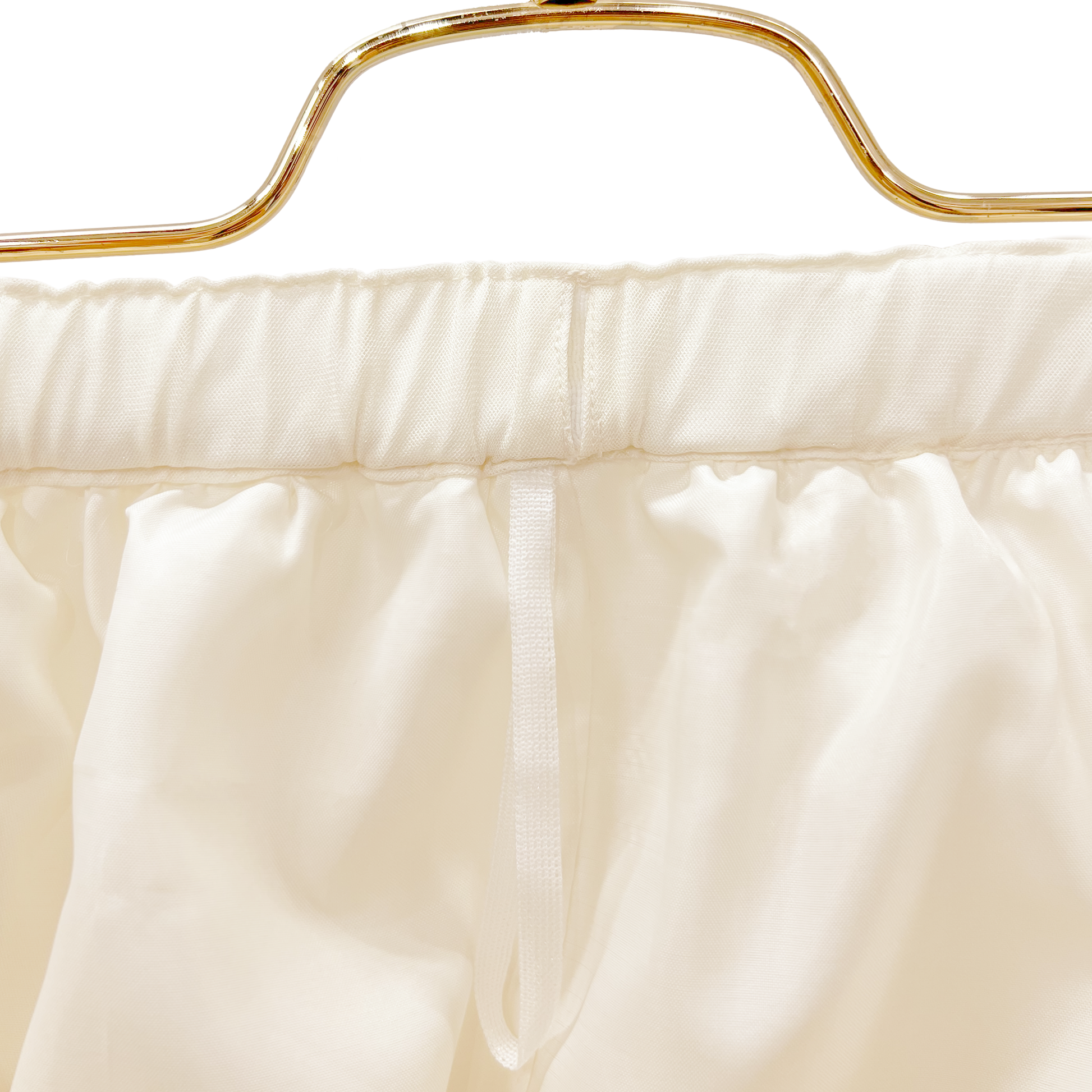 ウエストゴム仕様。ゴム取り換え口あり。国内生産。
