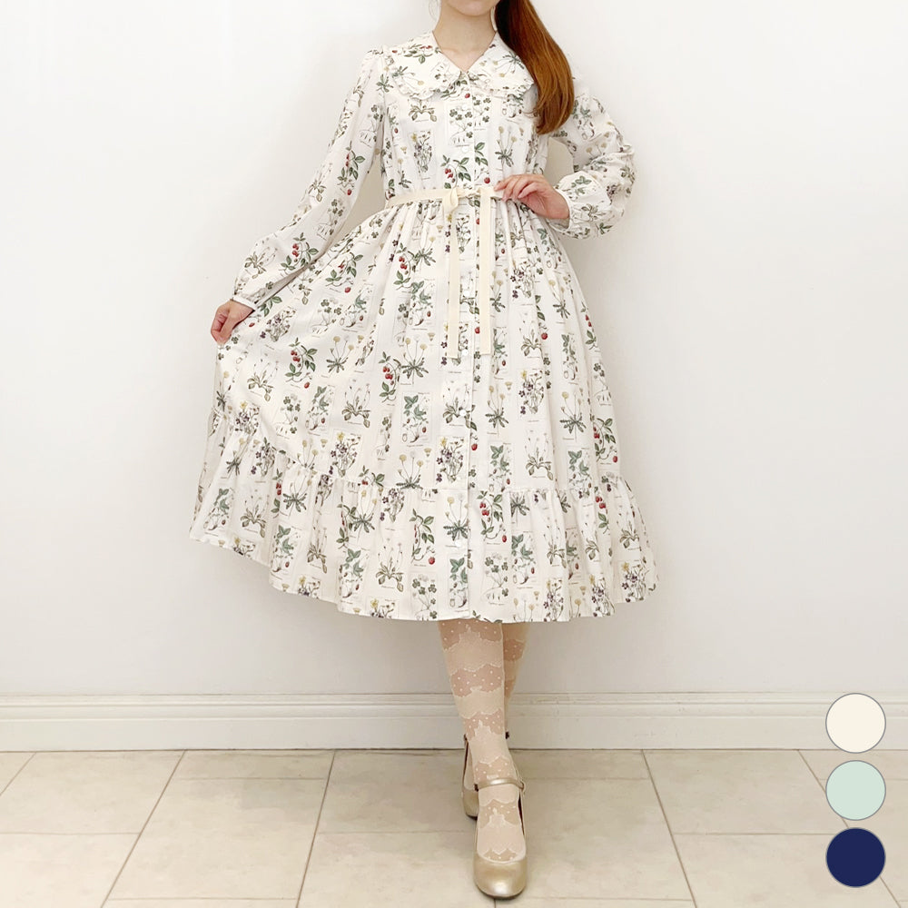 • 画像をギャラリービューアに読み込む, 植物図鑑フロントボタン長袖ワンピース
