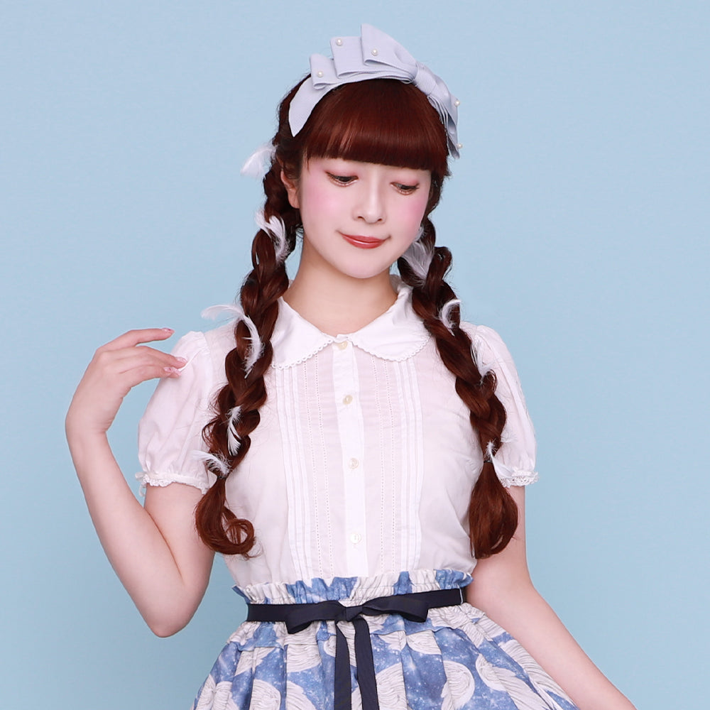 袖にはリボンとレース、身頃にはピンタックとピコミシンをあしらって乙女心を忘れずに♡