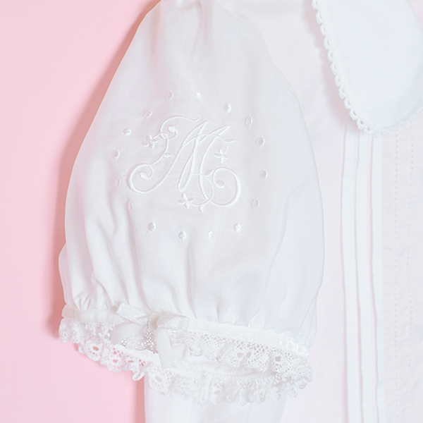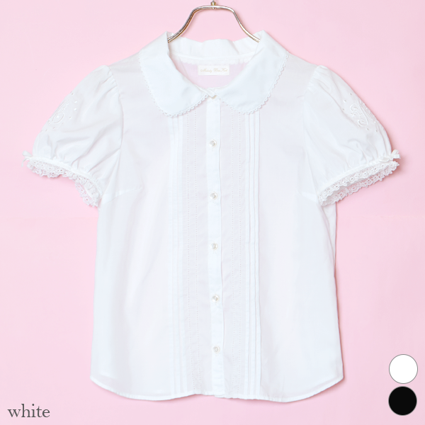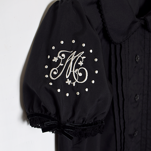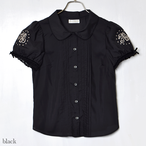 可愛らしいパフ袖にオリジナル刺繍がほどこされたブラウス。