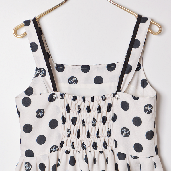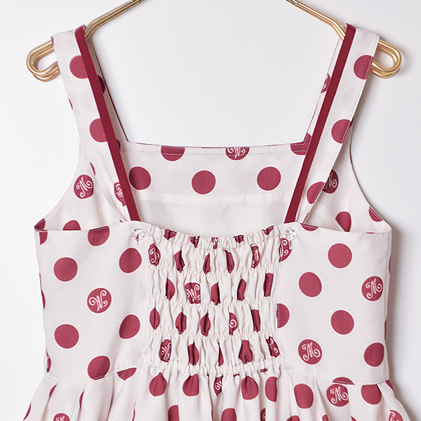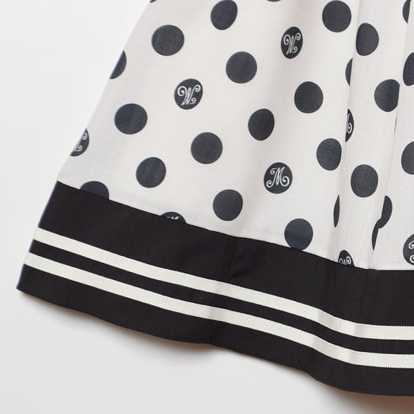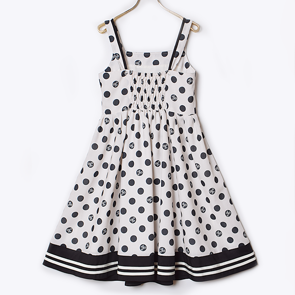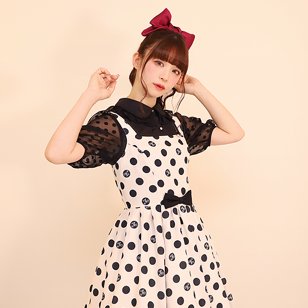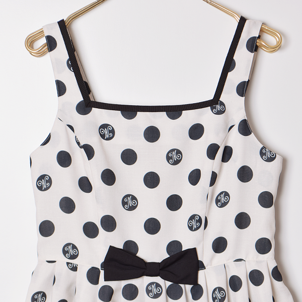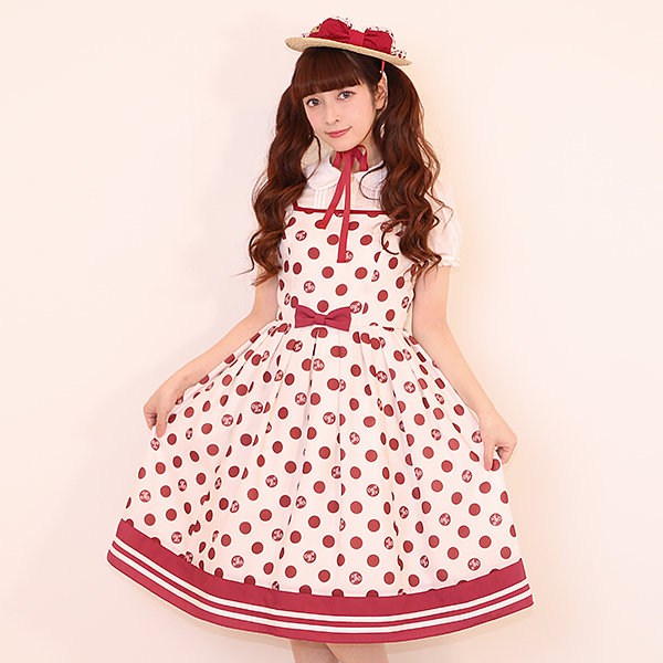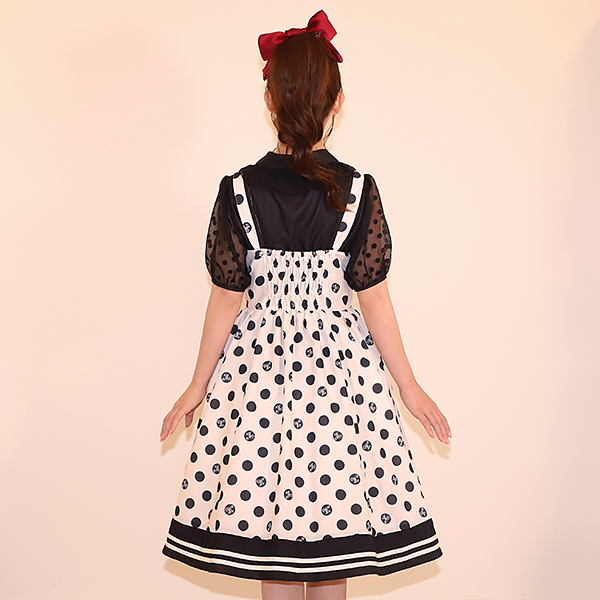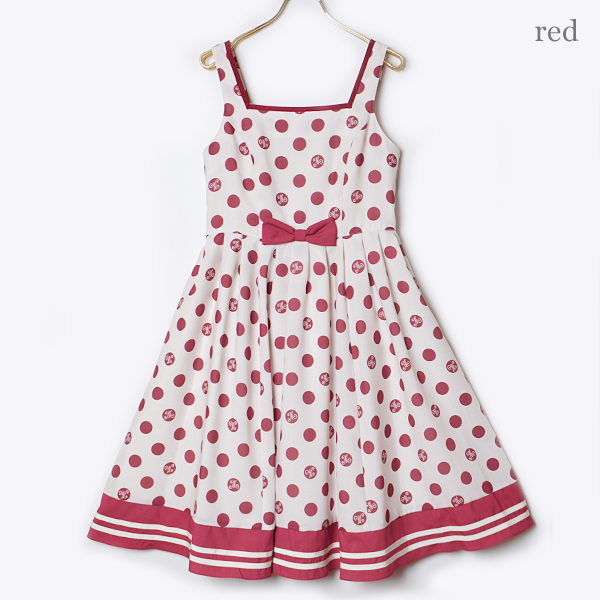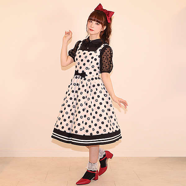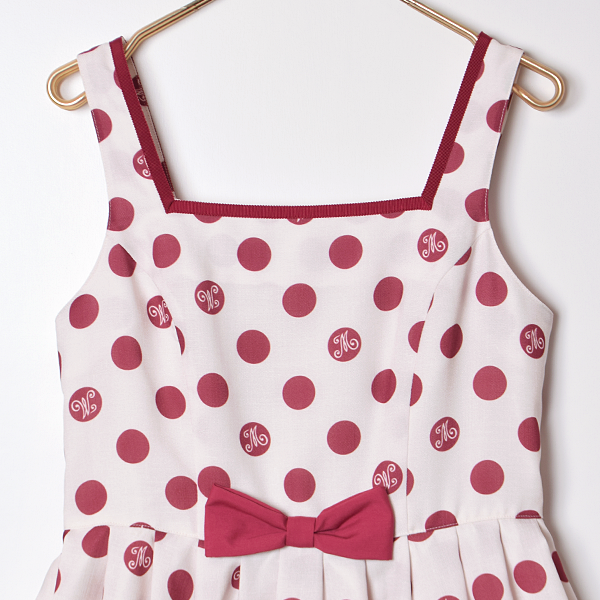 別地配色とリボンライン使いがポイントのジャンパースカート。