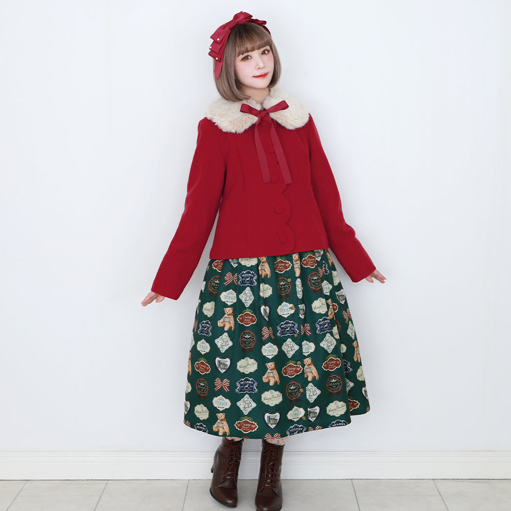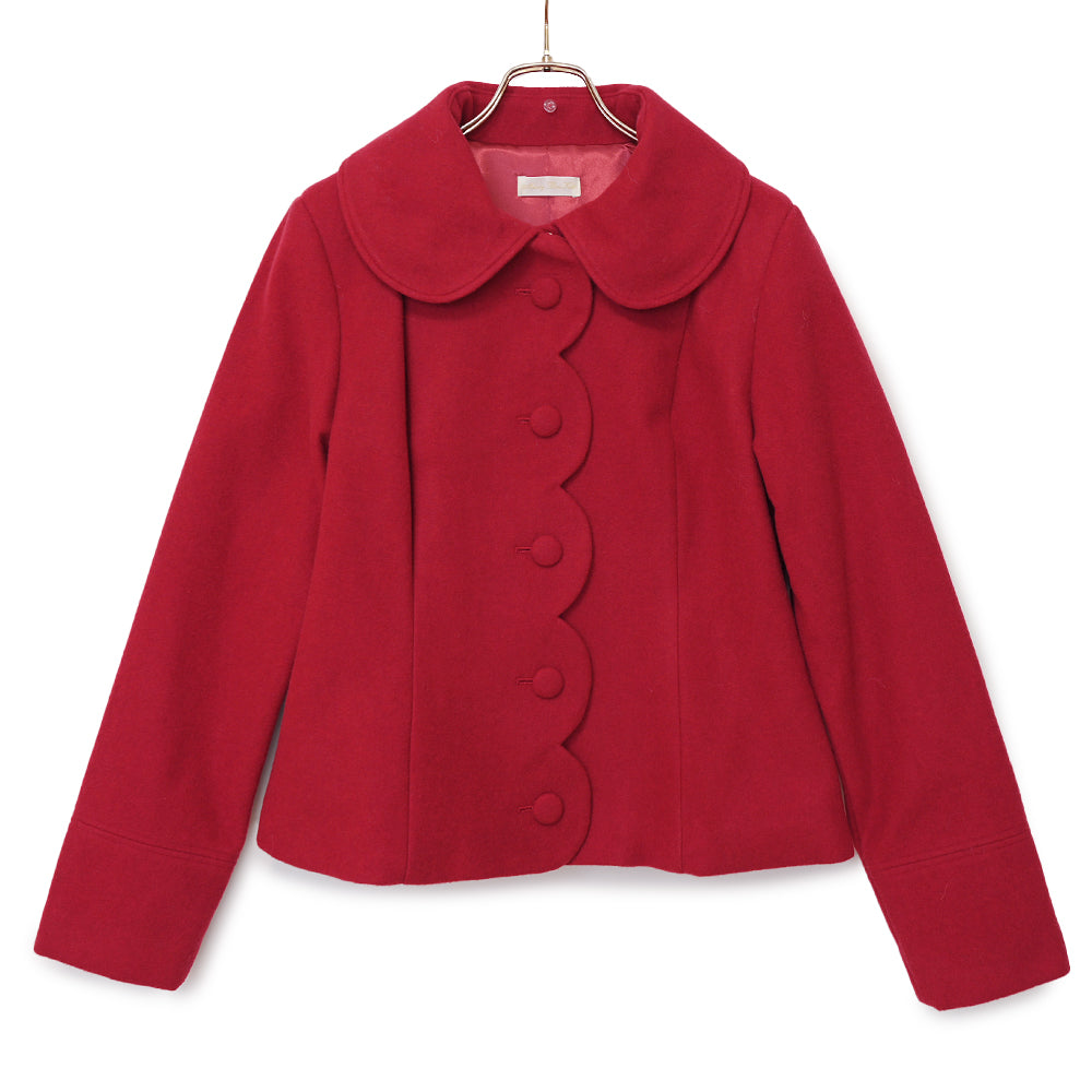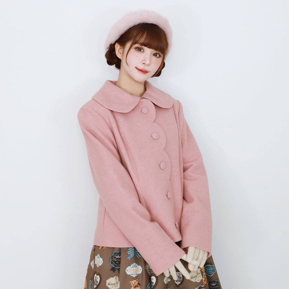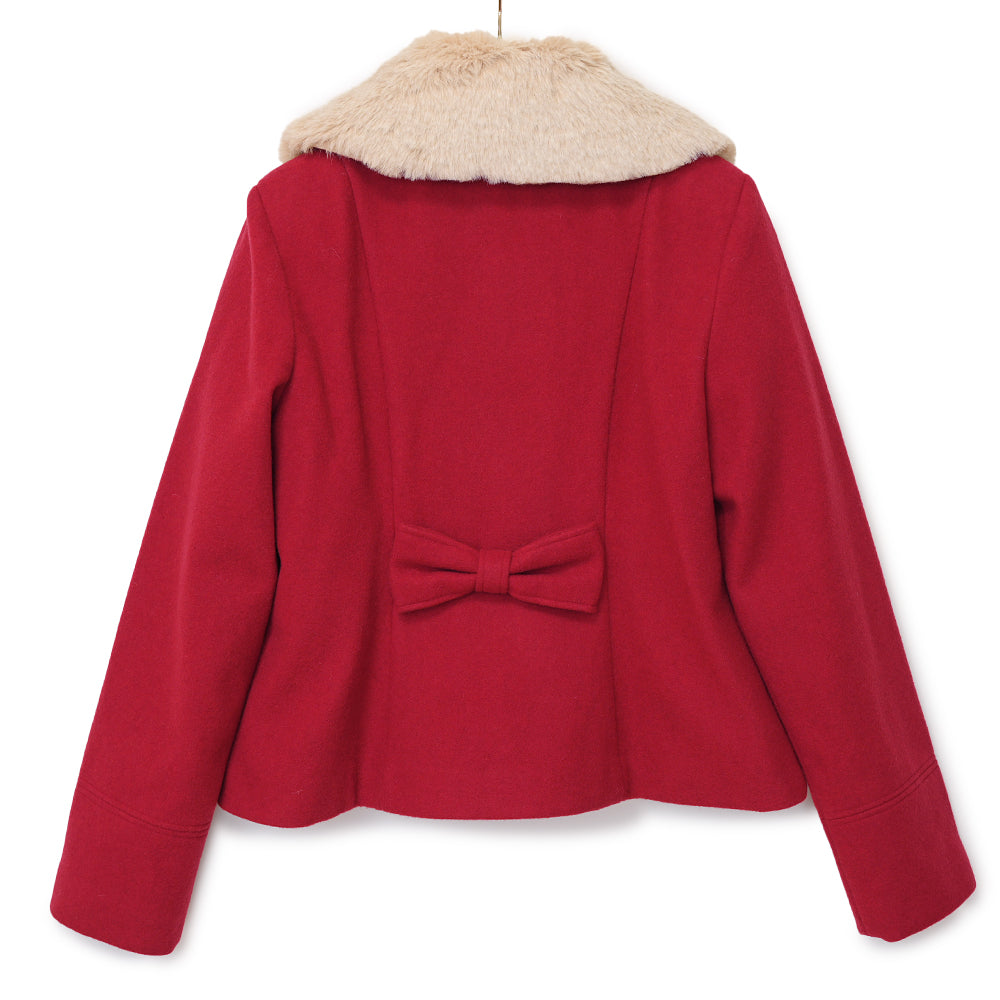 ふわふわのファーティペットとフロントのスカラップ切替が可愛らしいショートコート。