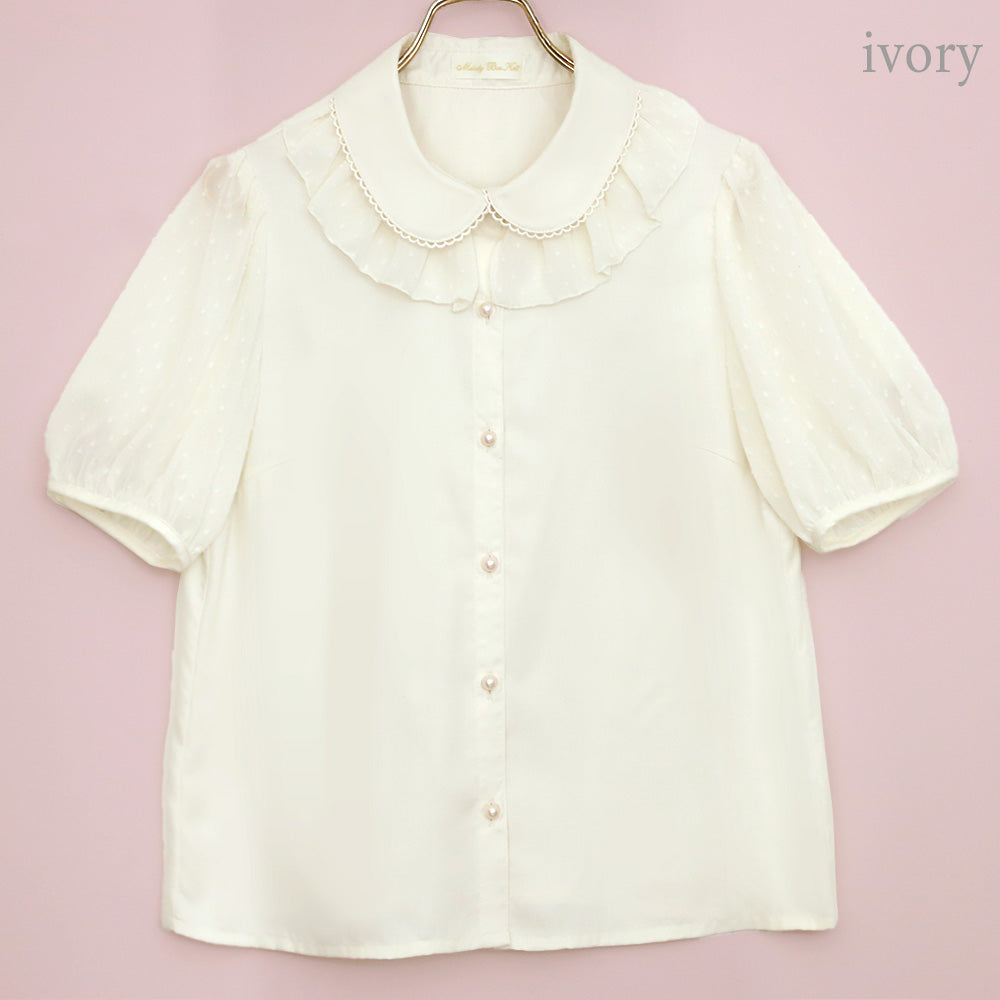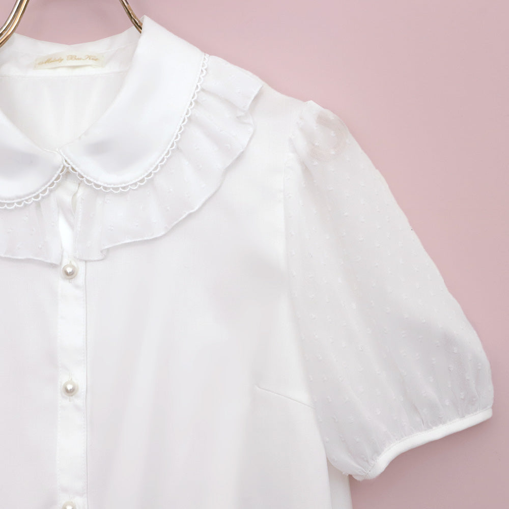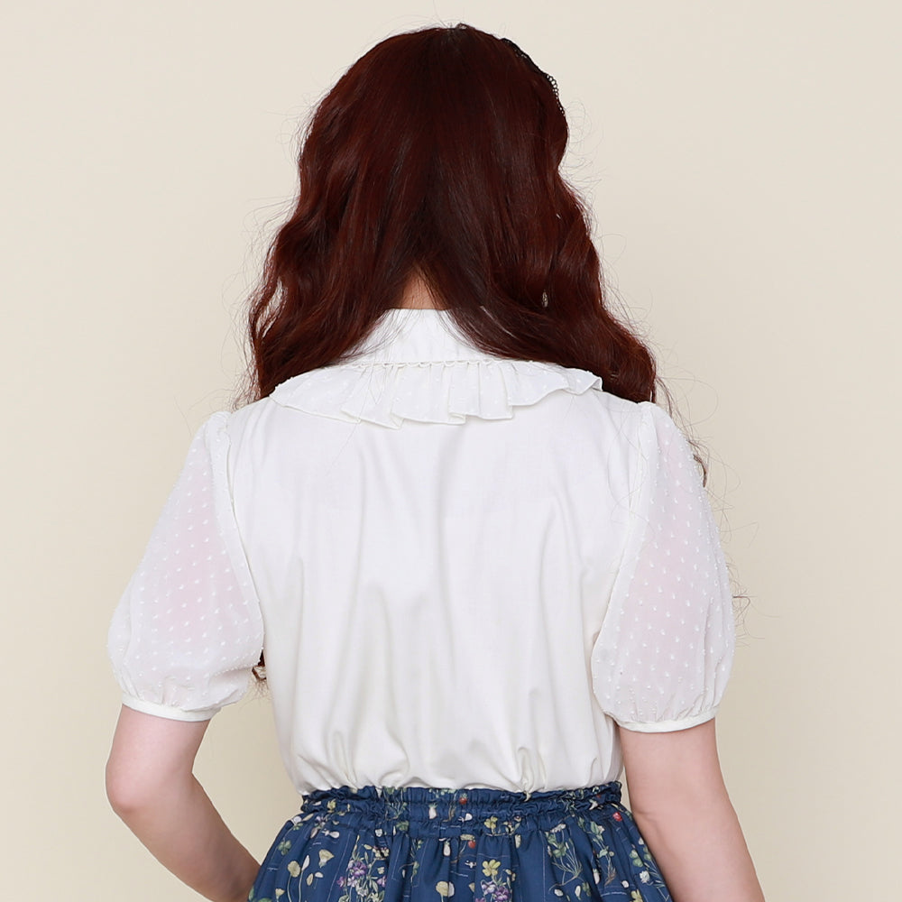 立体的な小粒ドットが愛らしいスノーカットジョーゼットを採用したブラウス。
