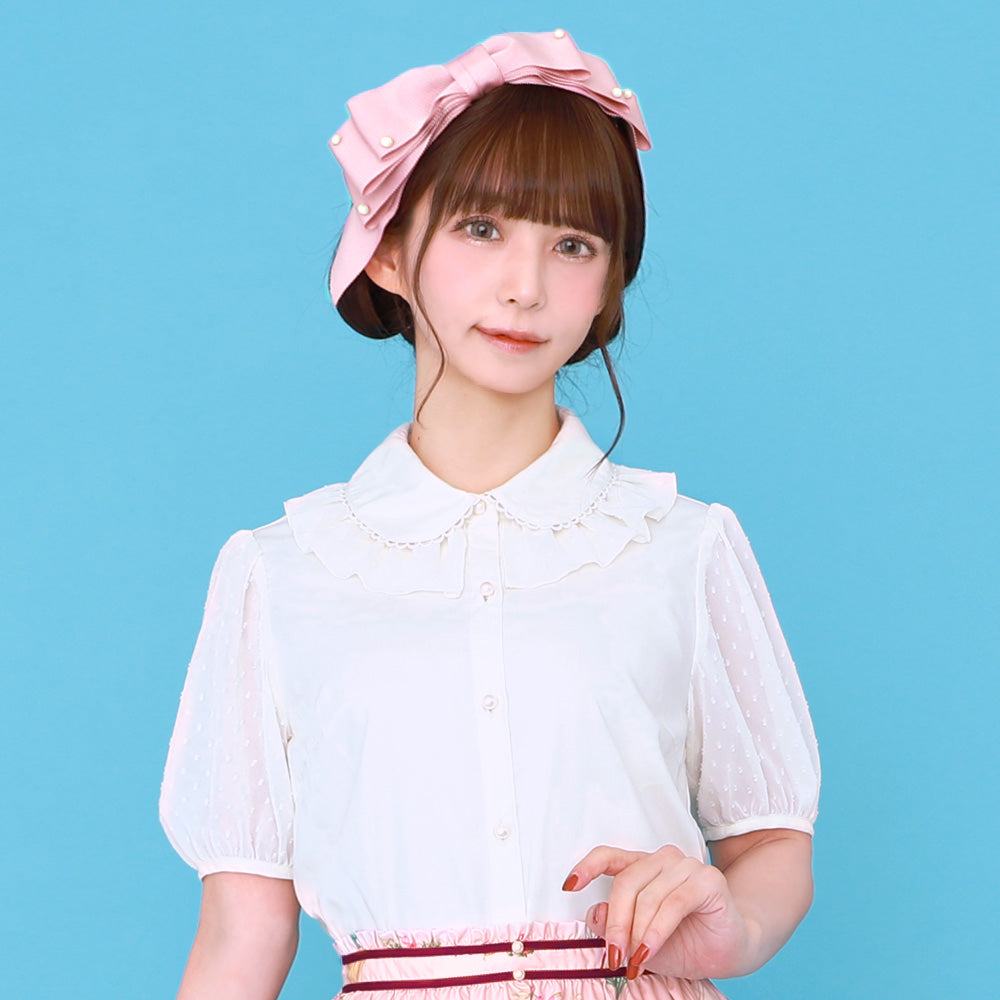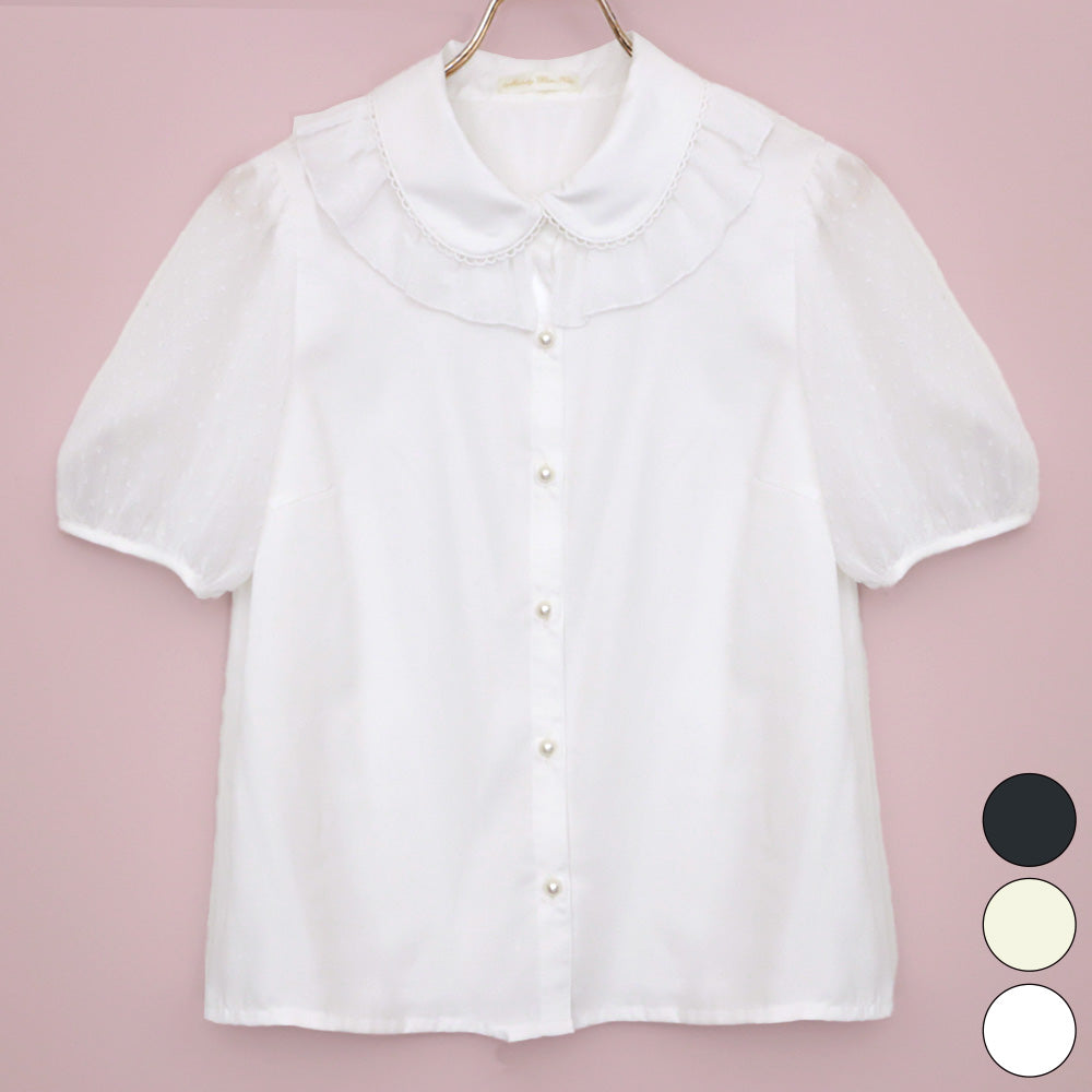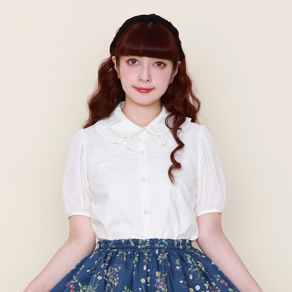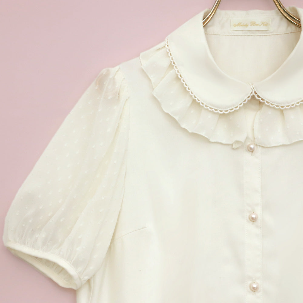 立体的な小粒ドットが愛らしいスノーカットジョーゼットを採用したブラウス。