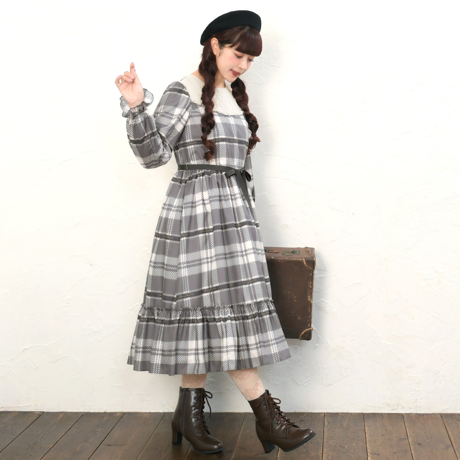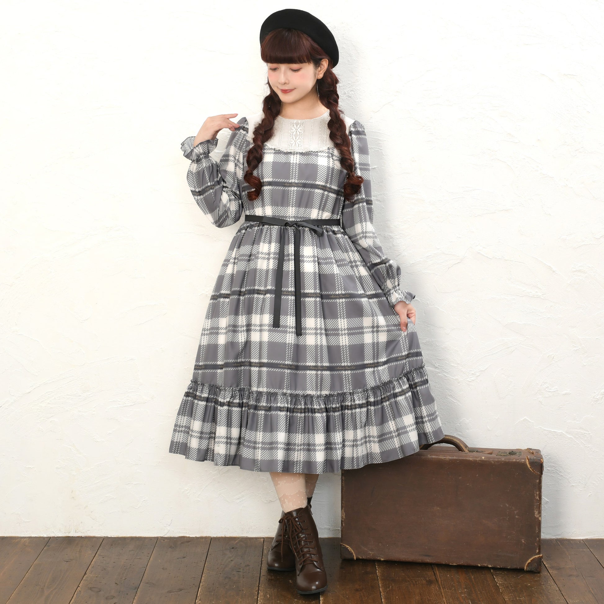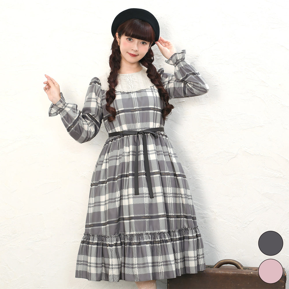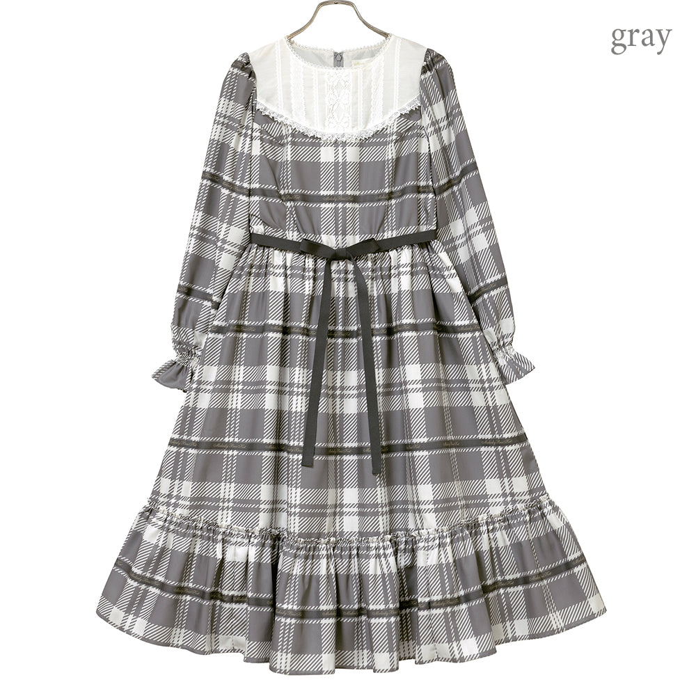 後ろファスナー開き。ウエストリボン取り外し可能。袖口ゴム仕様。スカート右脇ポケット付き。国内生産。