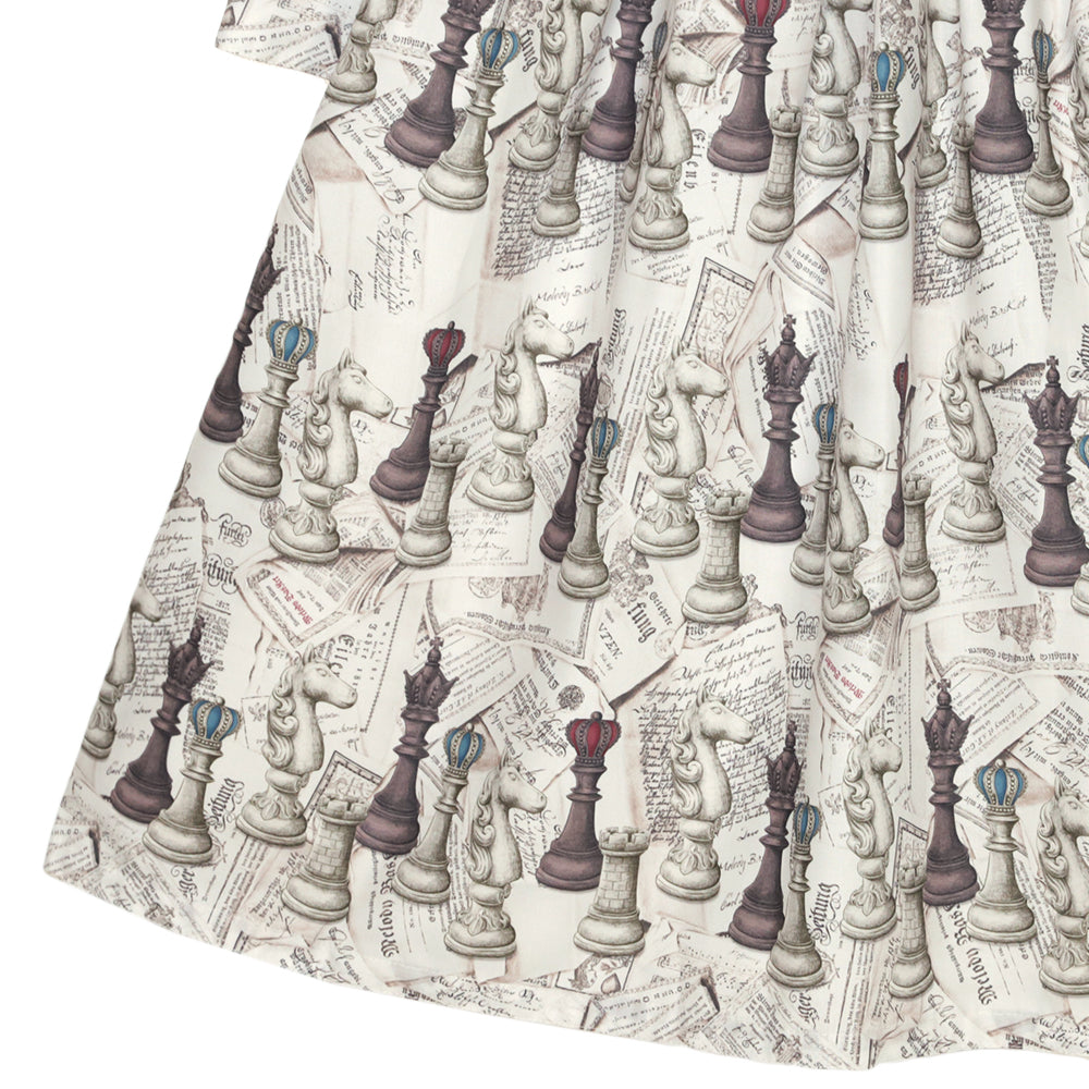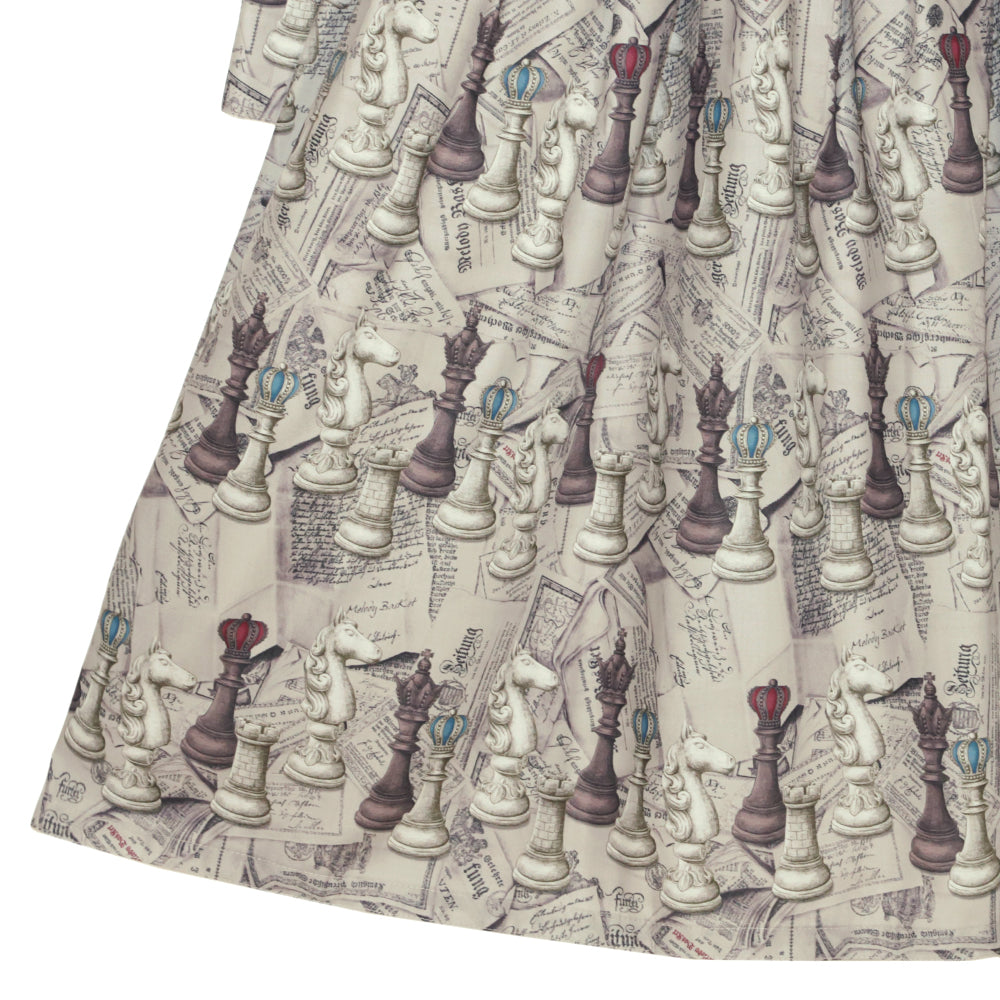 アンティークレターと共に並ぶチェス駒を繊細なタッチで描いたオリジナルプリントです。