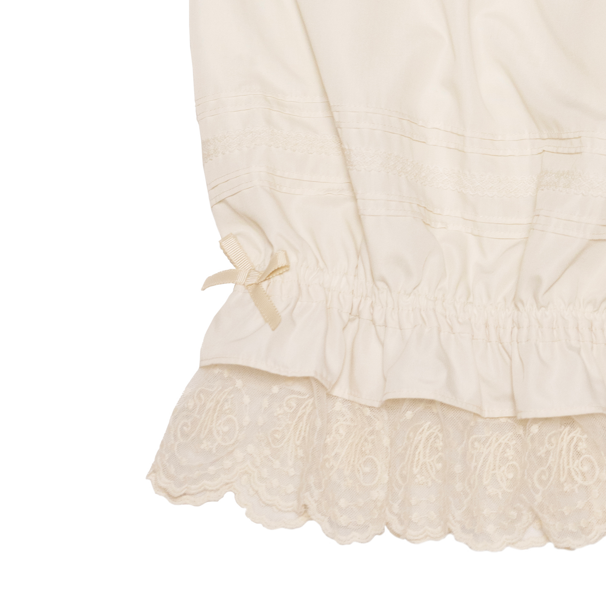 表面はスパンローン生地にピンタック、レース、リボンをあしらったDollyな仕上がり。