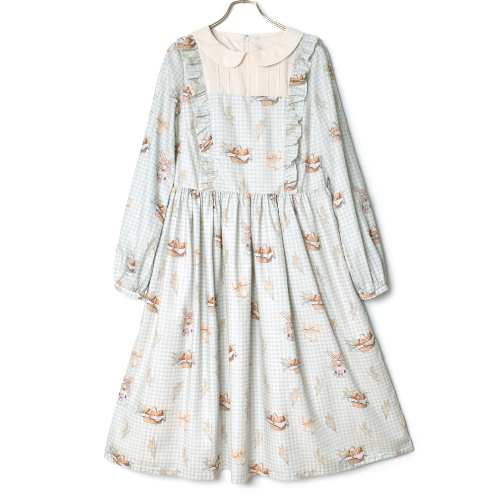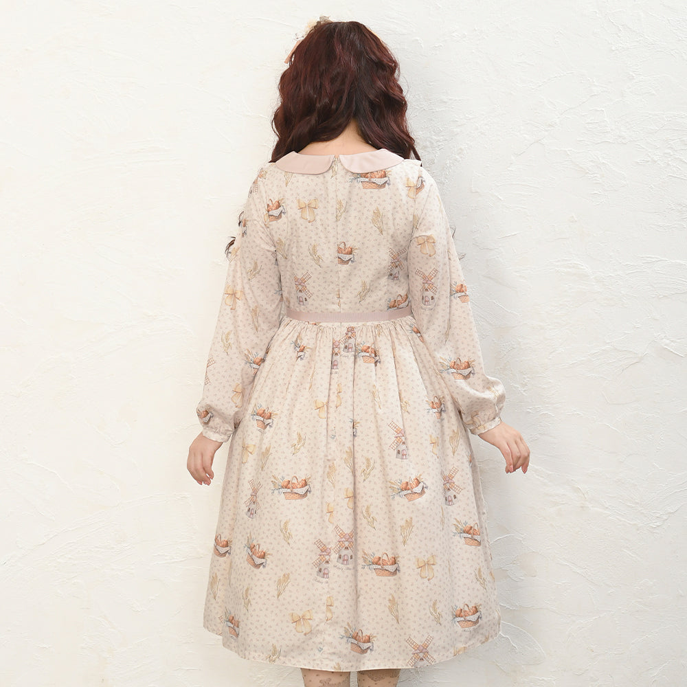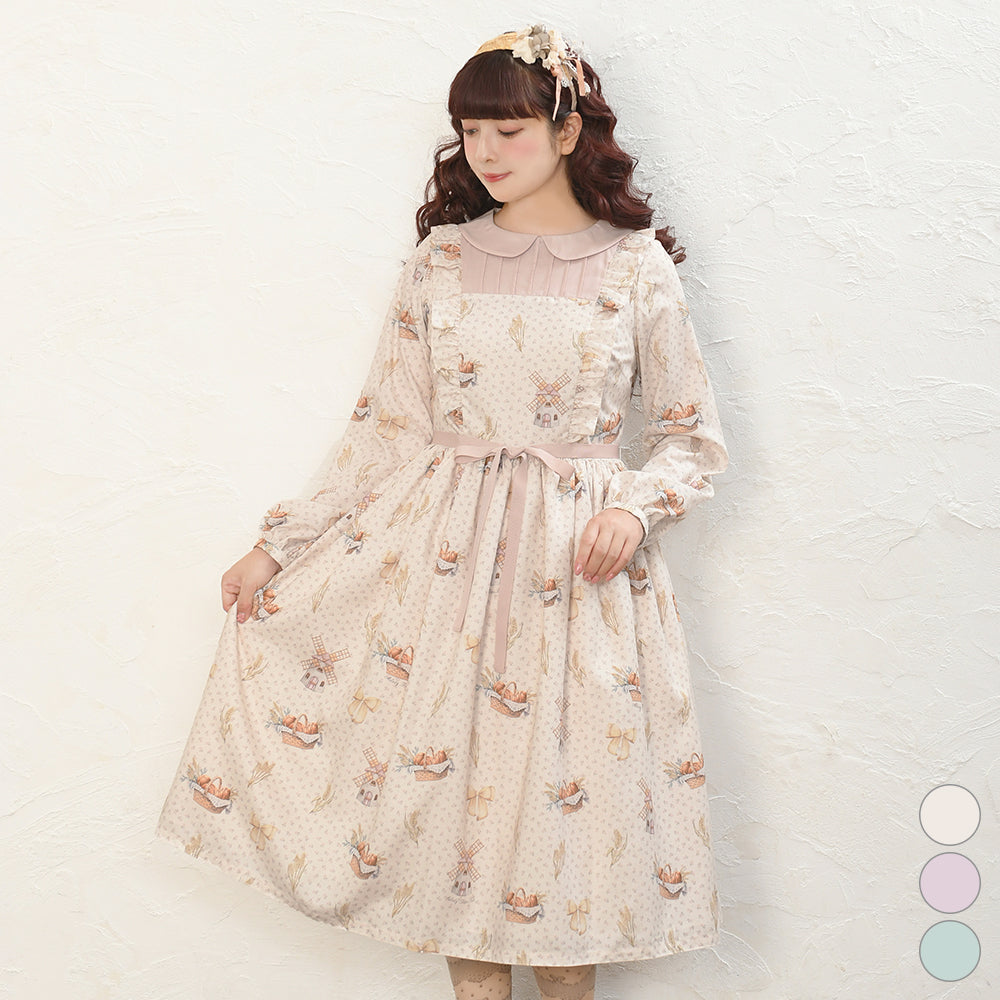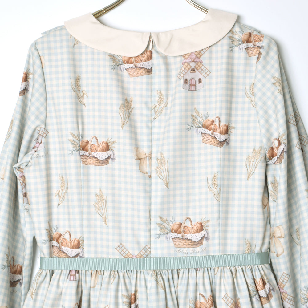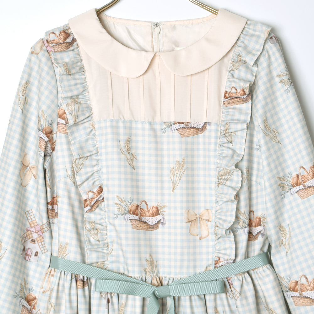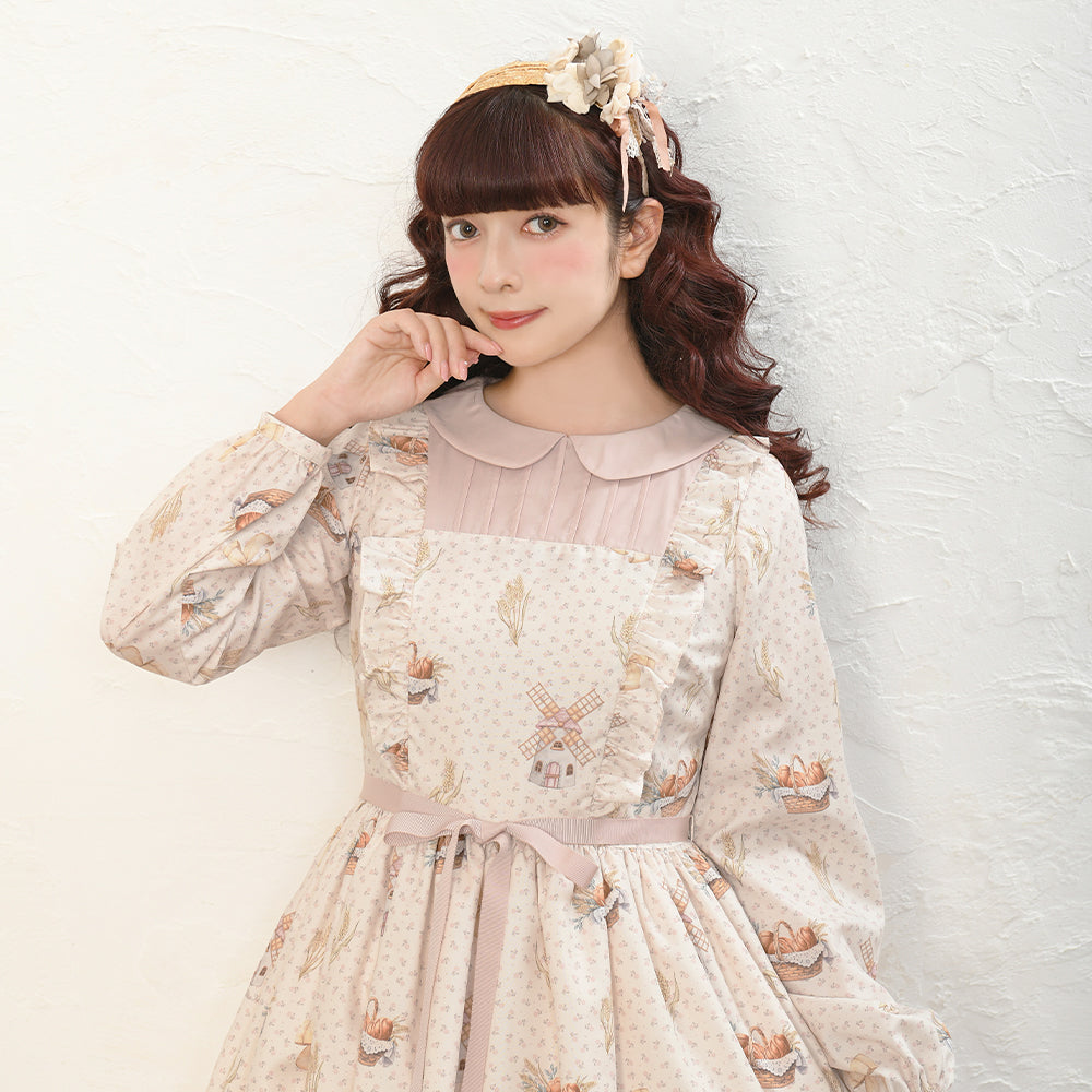 そよ風に揺れる麦畑の丸襟ワンピース