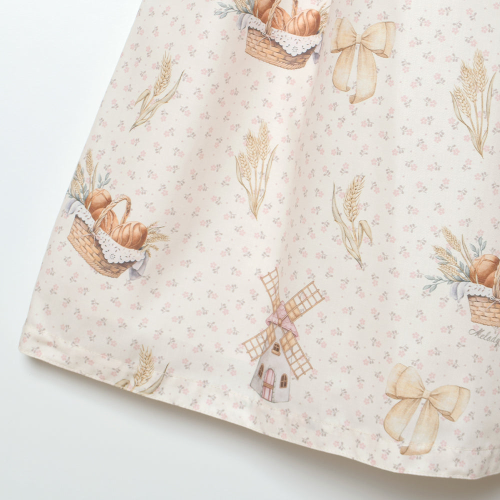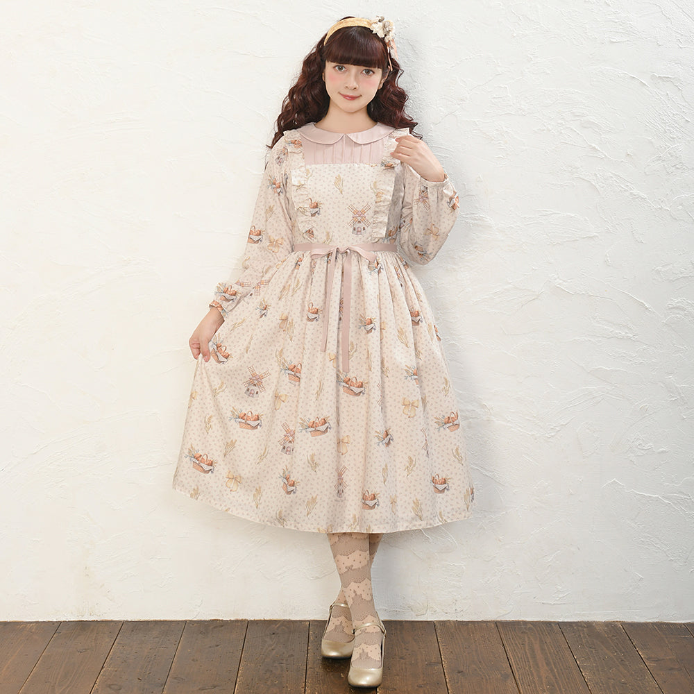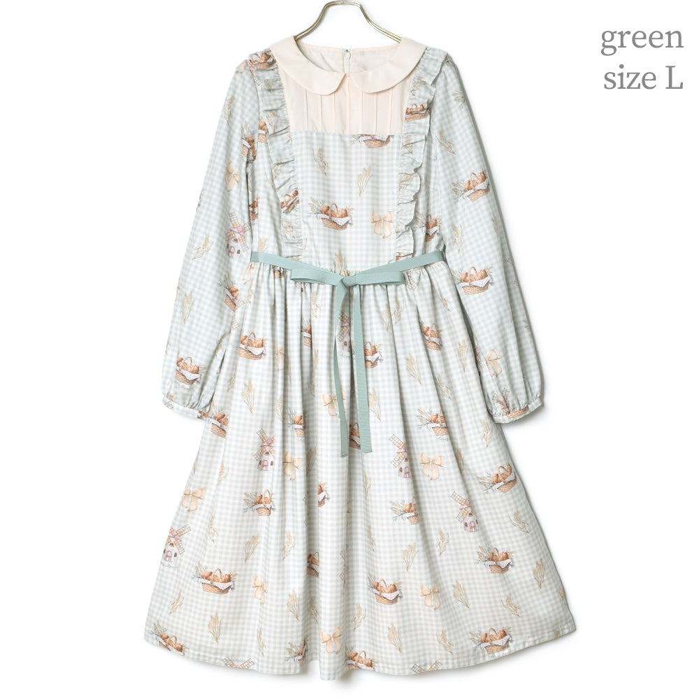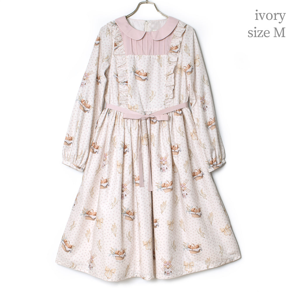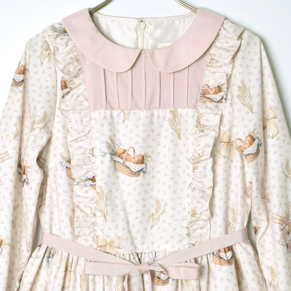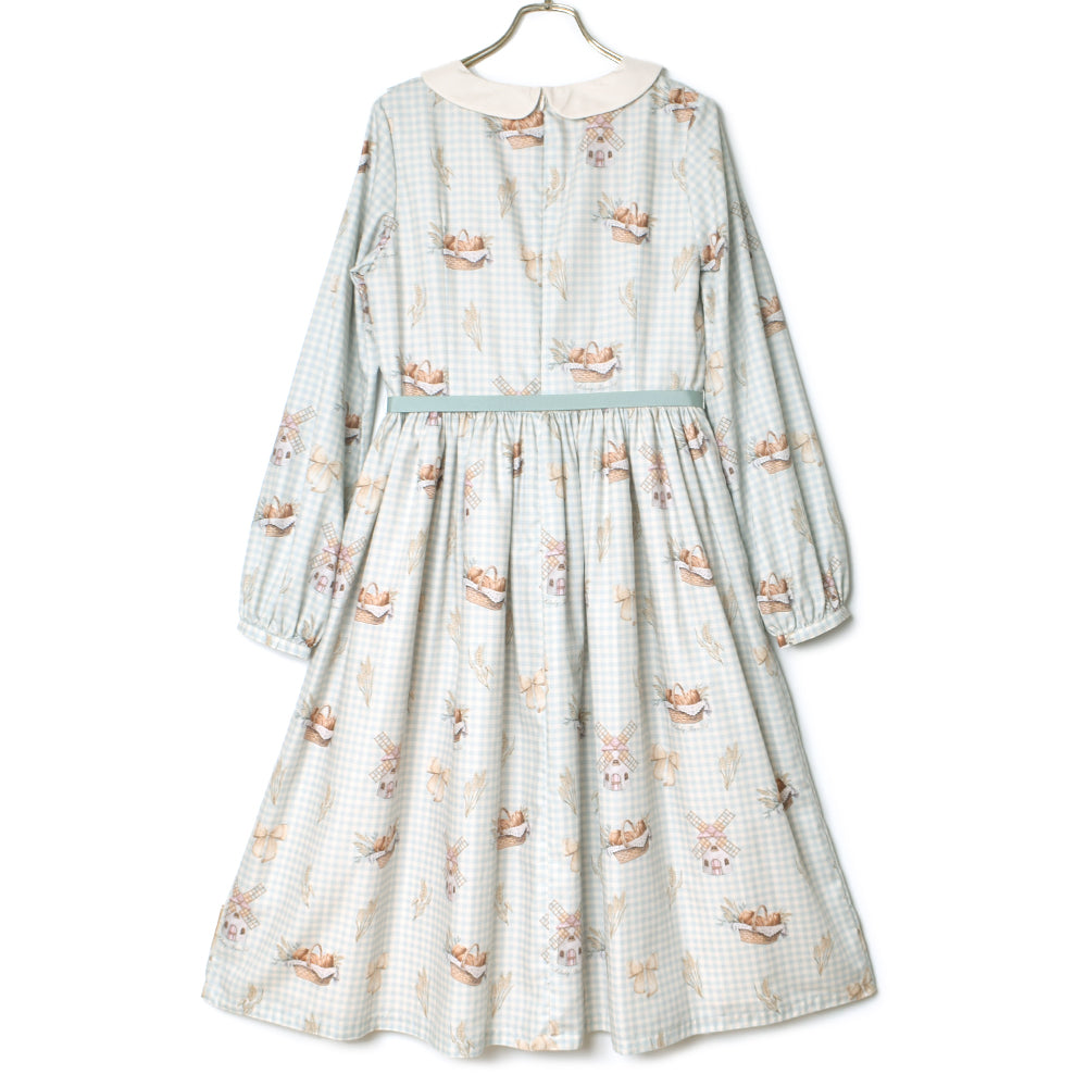 そよ風に揺れる麦畑の丸襟ワンピース
