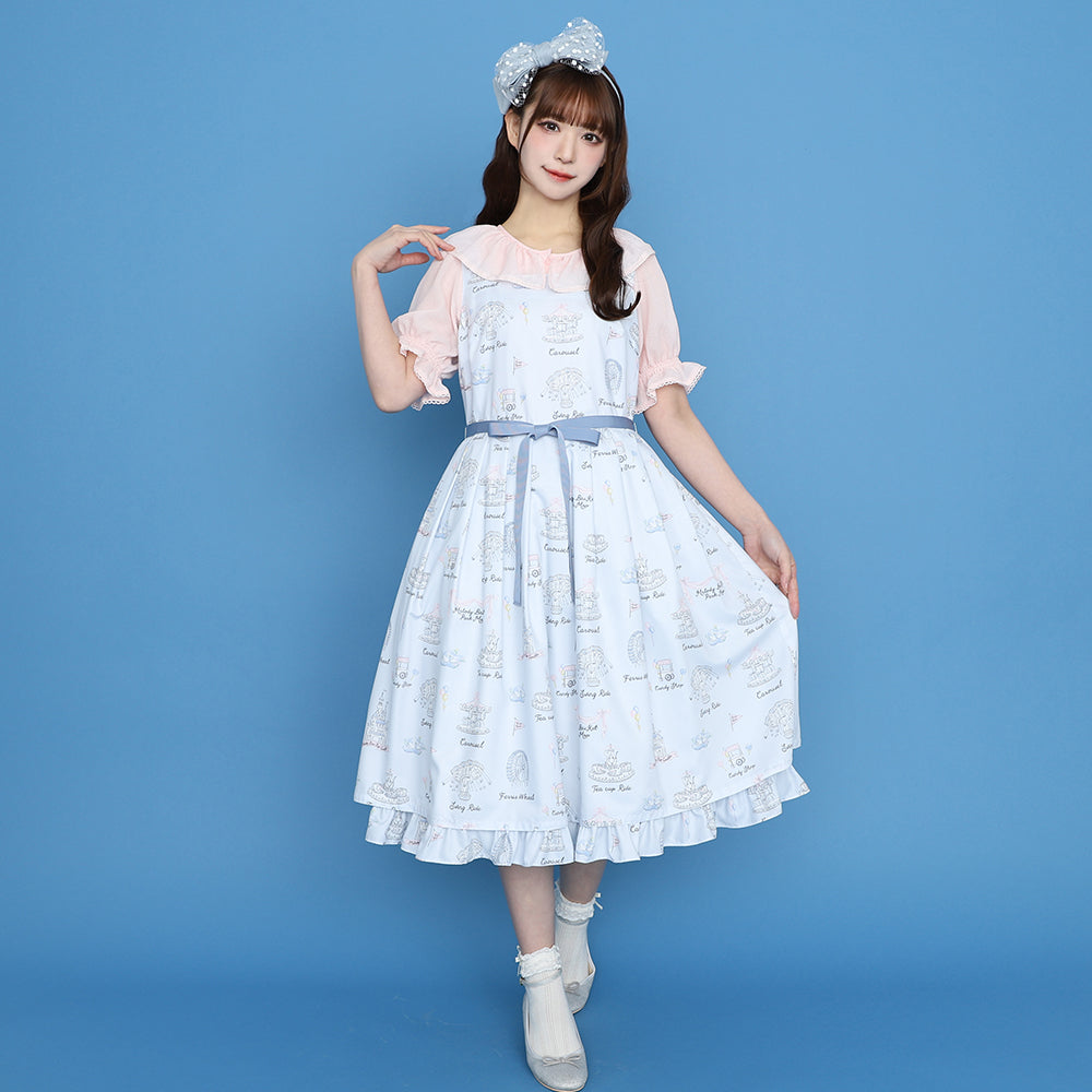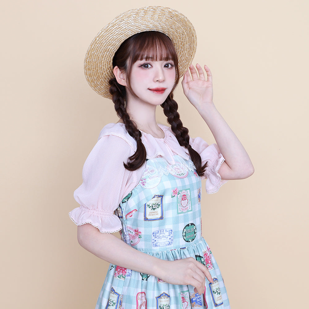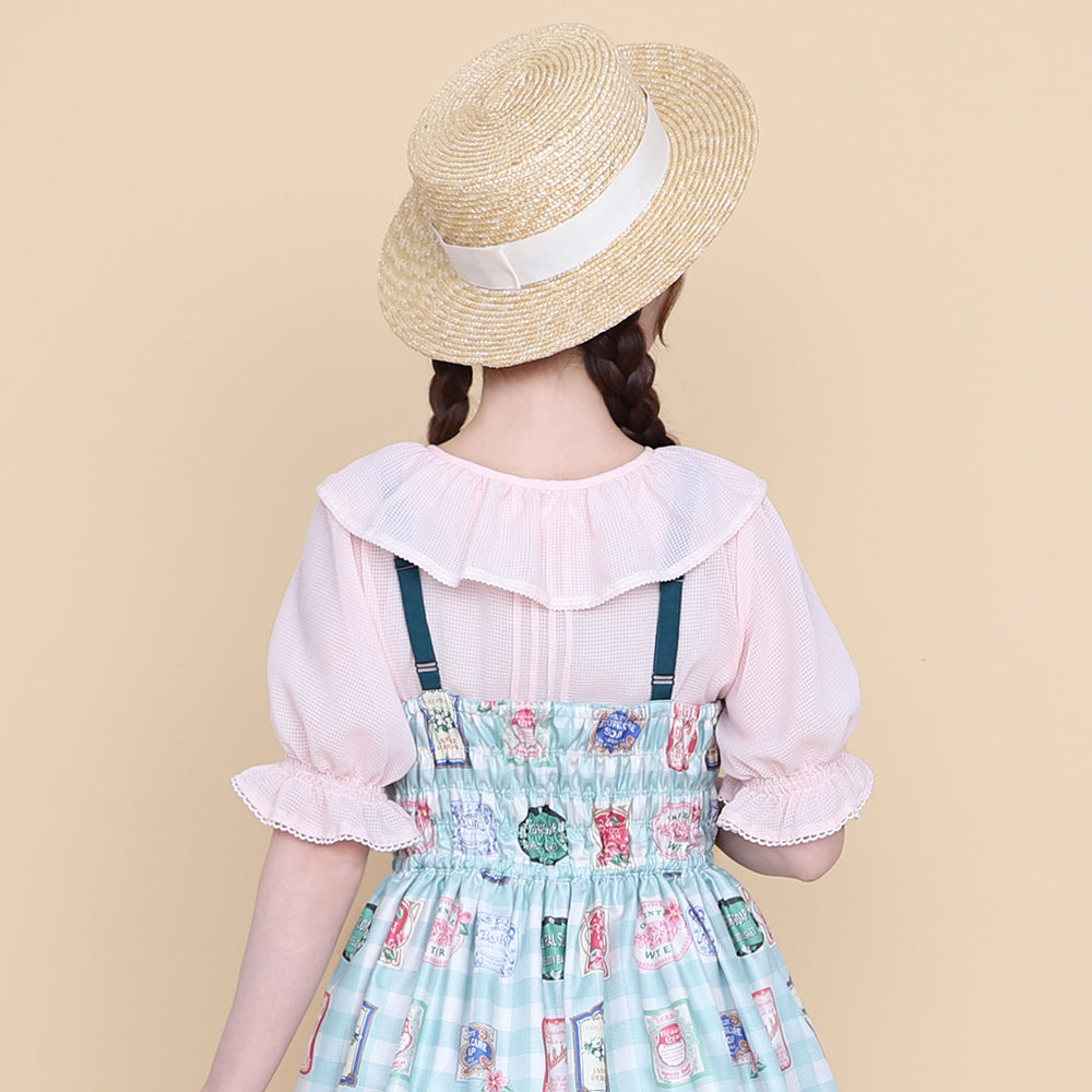 スカートにINせずに着たり、ジャンパースカートの上に羽織ったり、着回しが効くブラウスです。