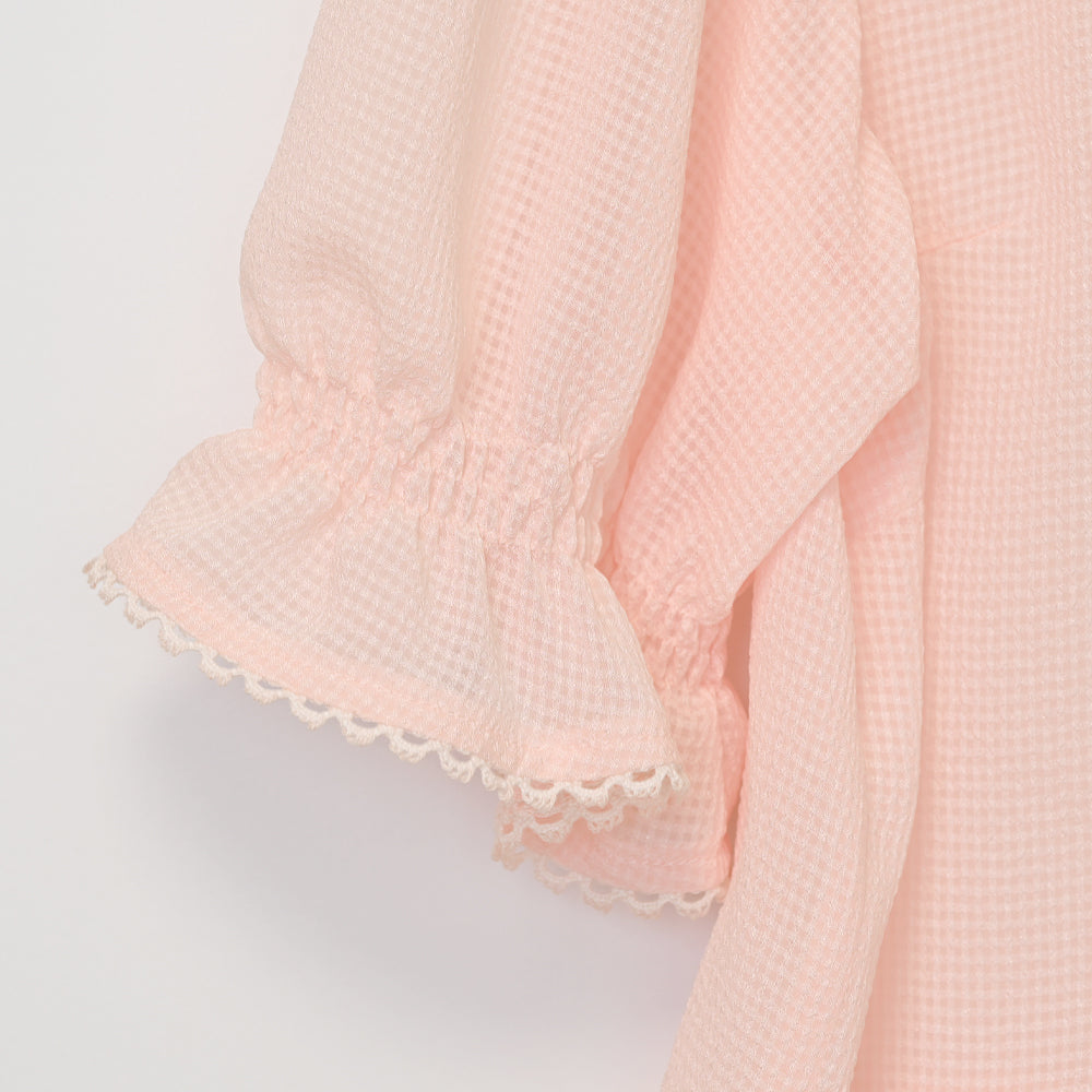 糸の収縮差でチェック柄に凹凸感を出したシルックサッカー生地を採用。