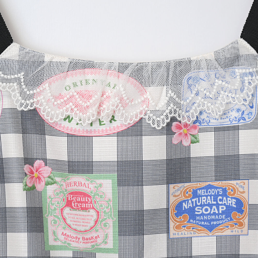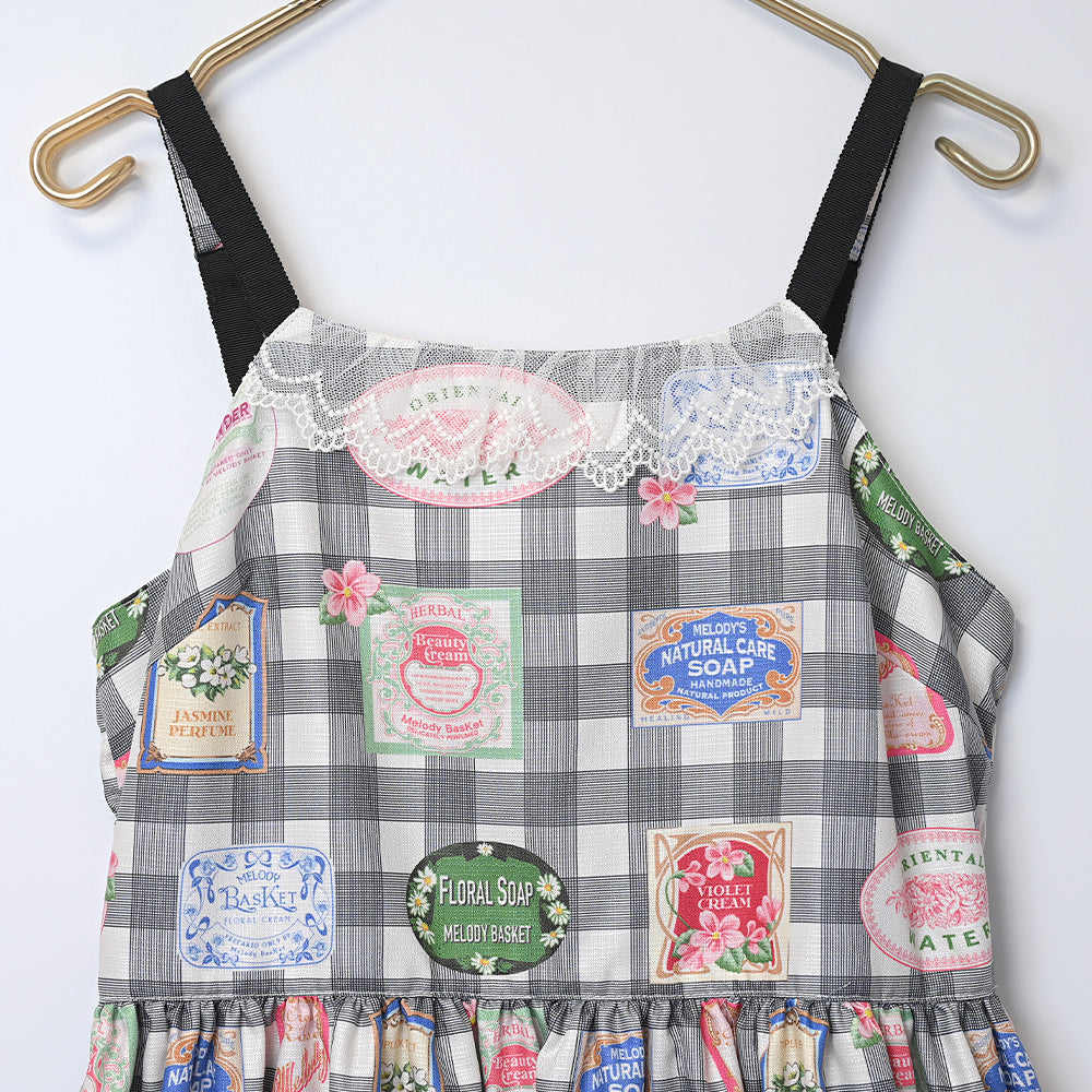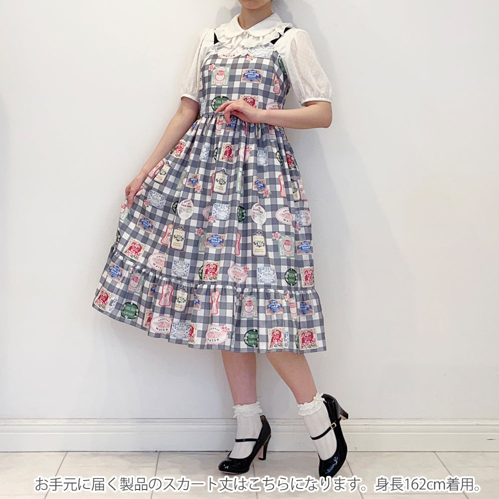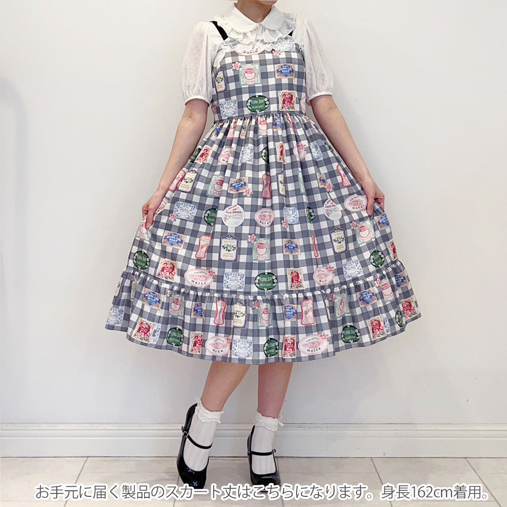 存在感がある胸元のチュールレースと、ティアードフリルスカートがポイントのジャンパースカート。