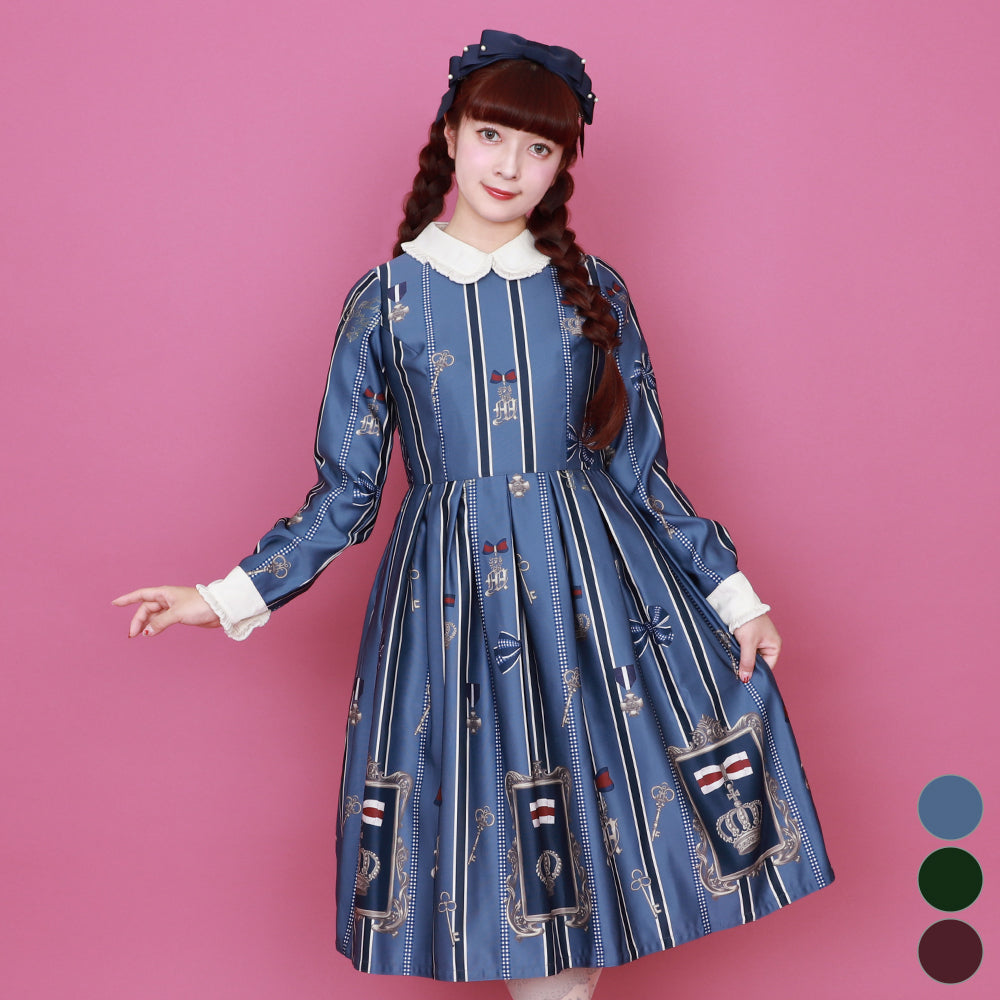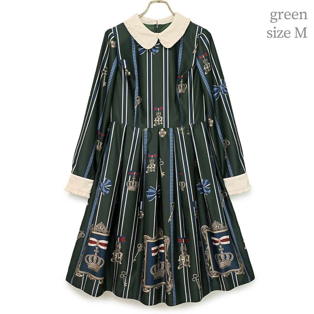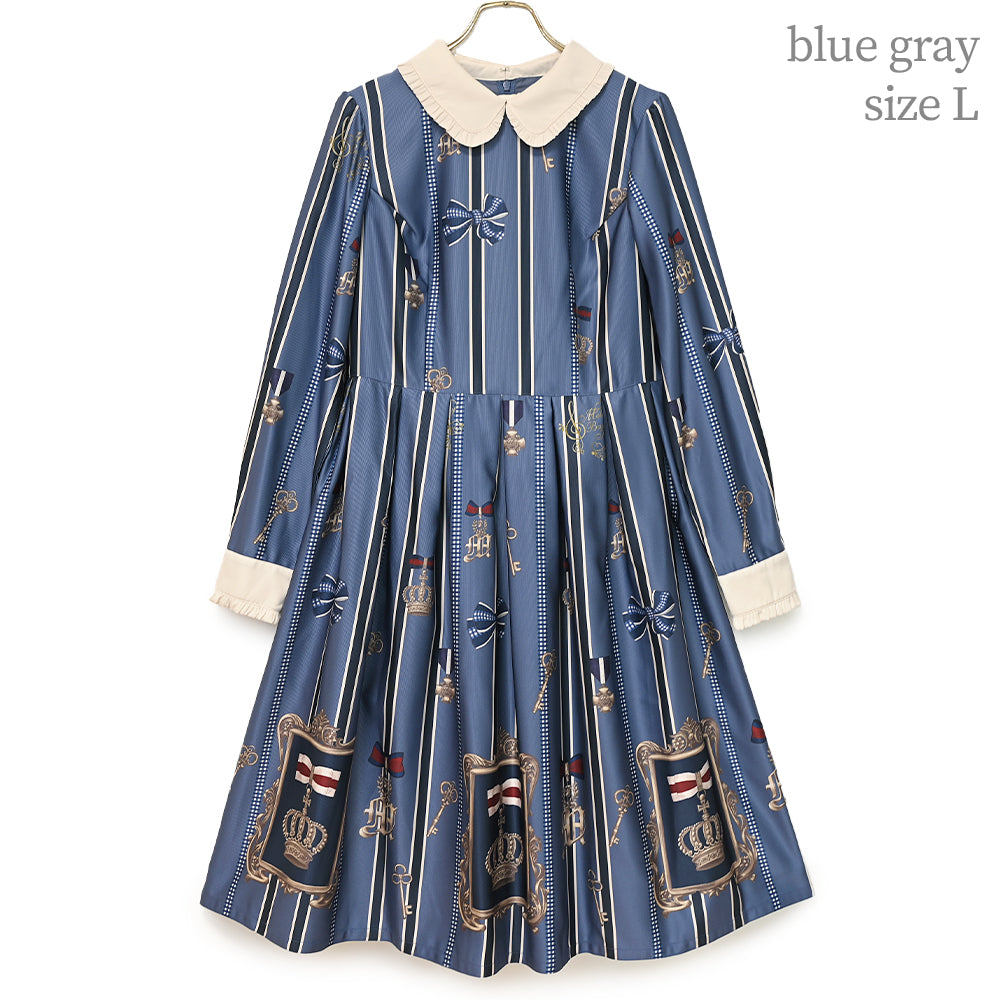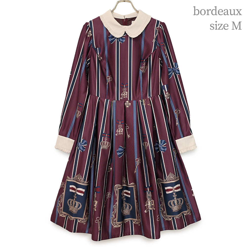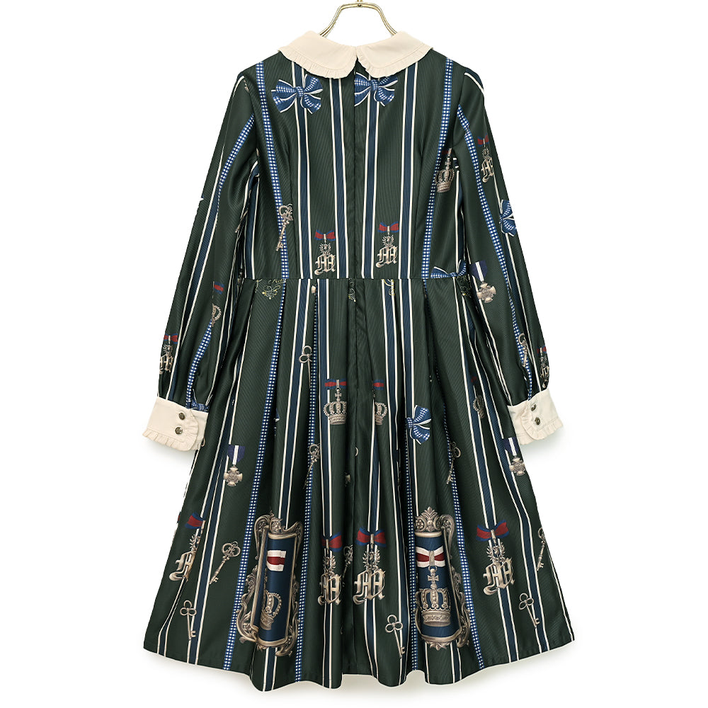 レジメンストライプに散りばめた紋章、鍵、リボン、、、
