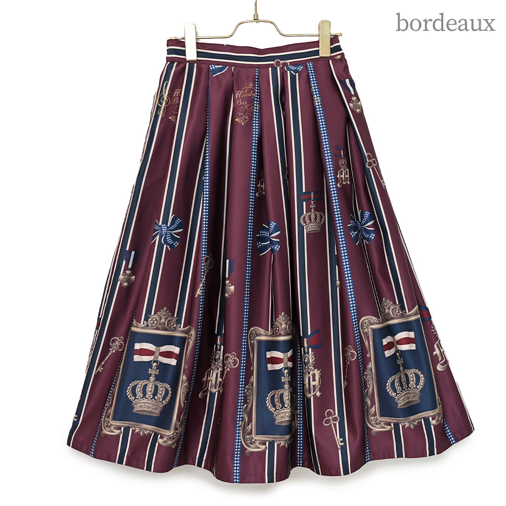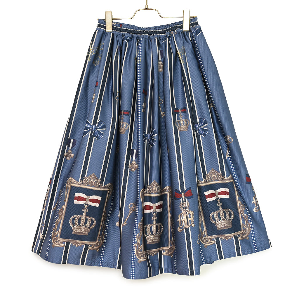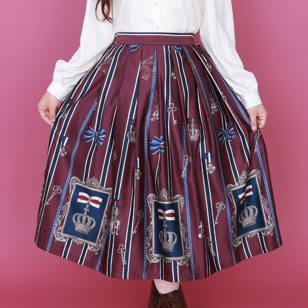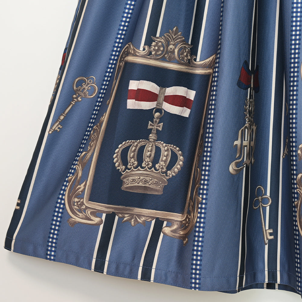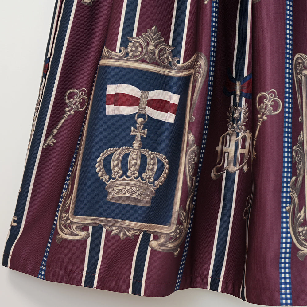 レジメンストライプに散りばめた紋章、鍵、リボン、、、