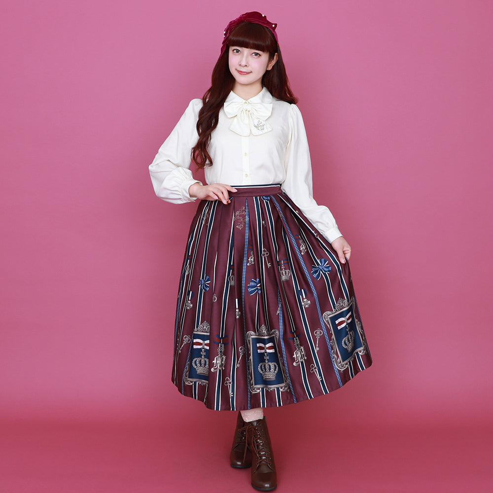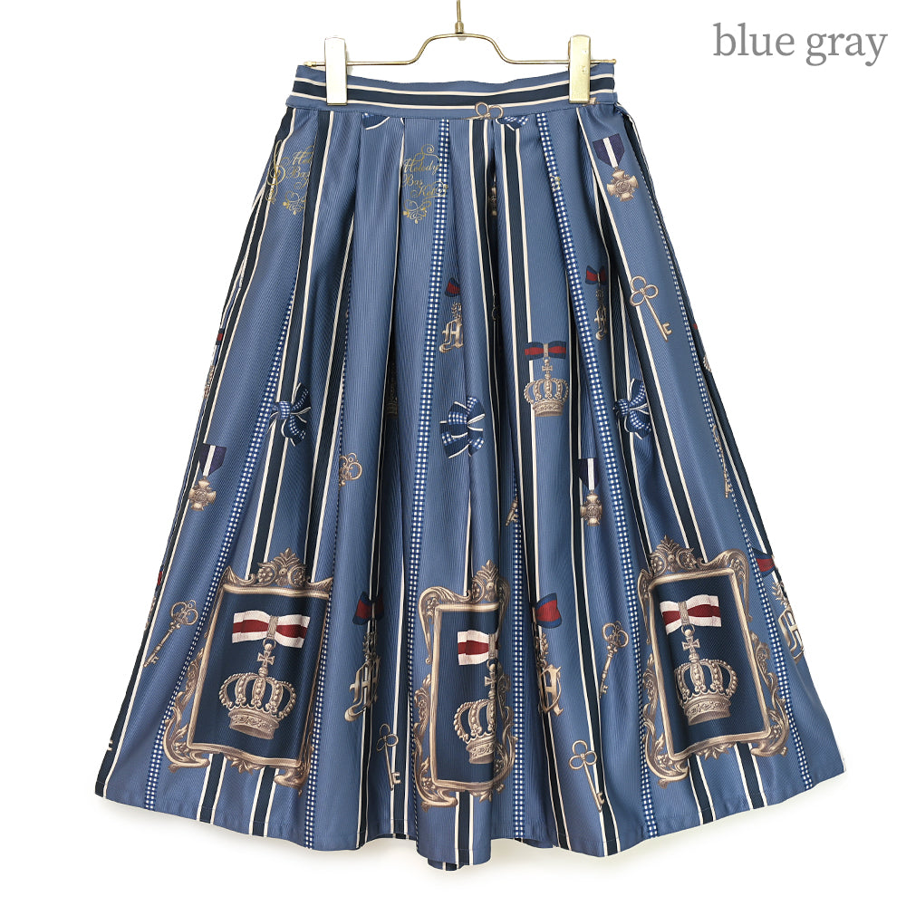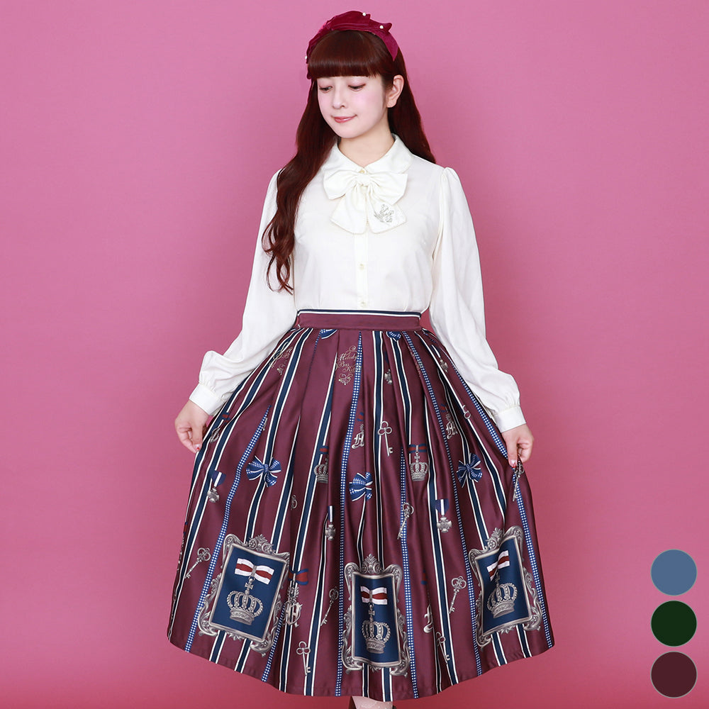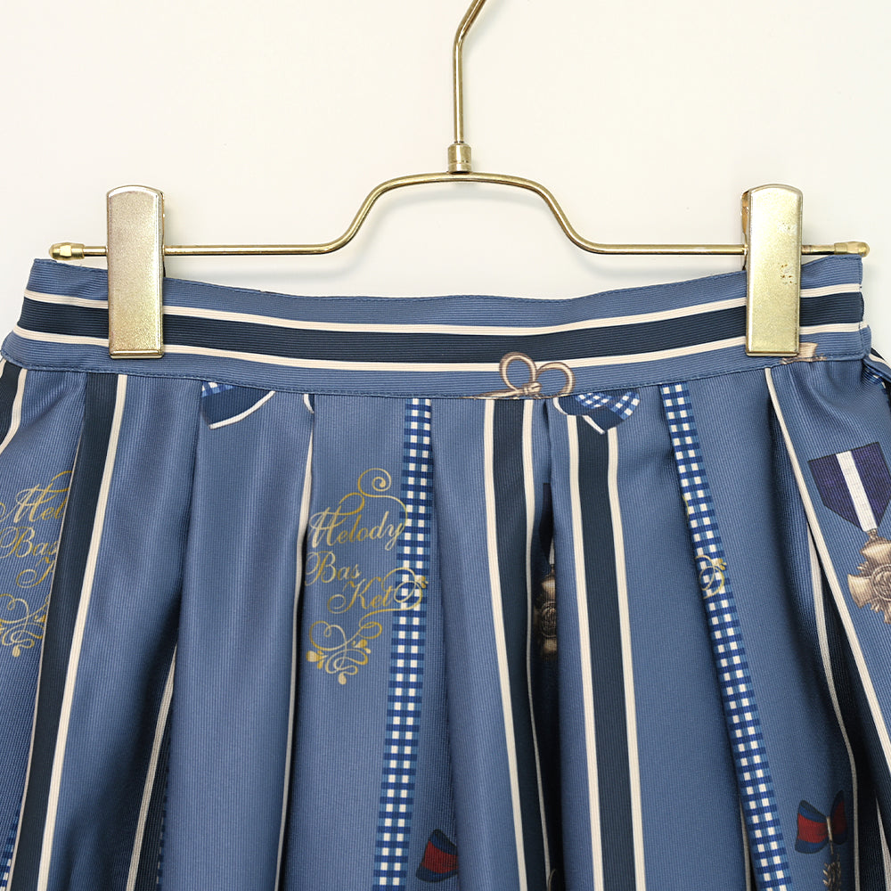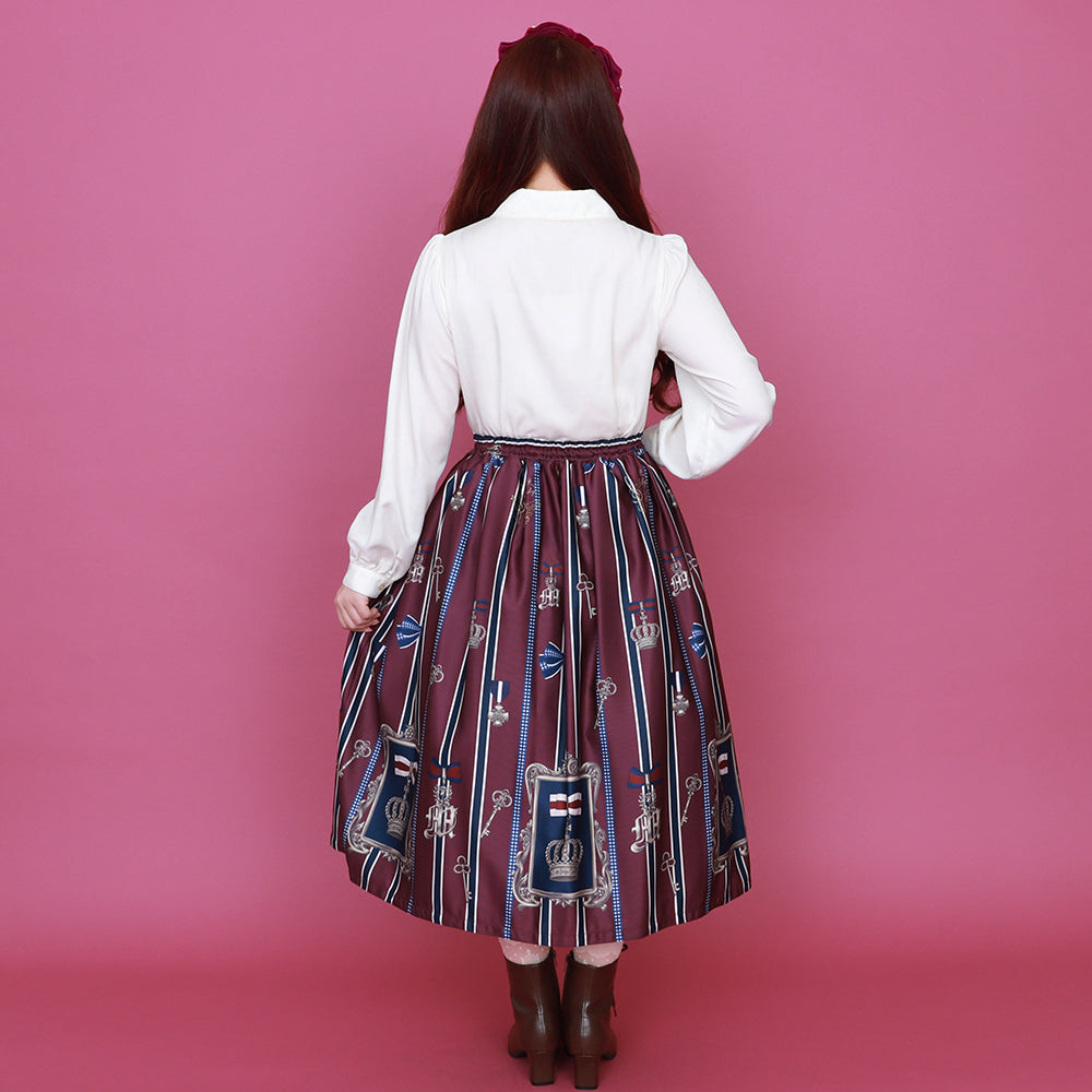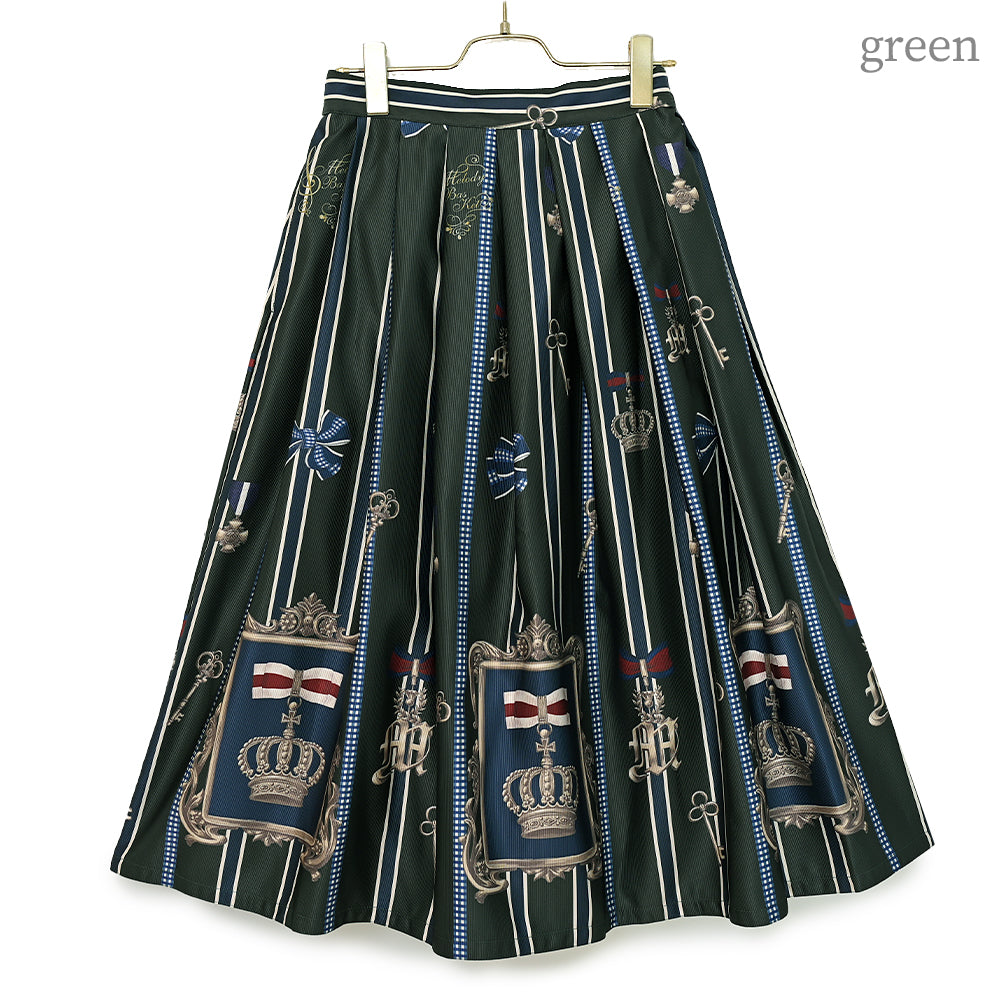 レジメンストライプに散りばめた紋章、鍵、リボン、、、