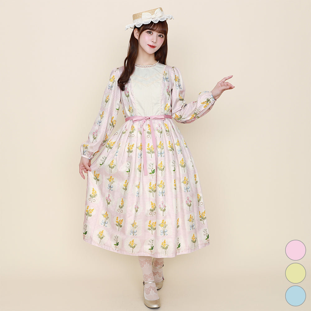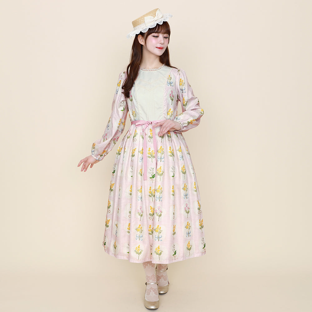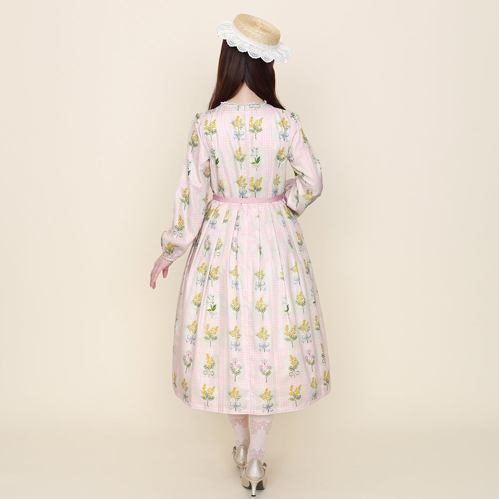 パステルカラーのギンガムチェックとミモザで春の訪れを感じて。