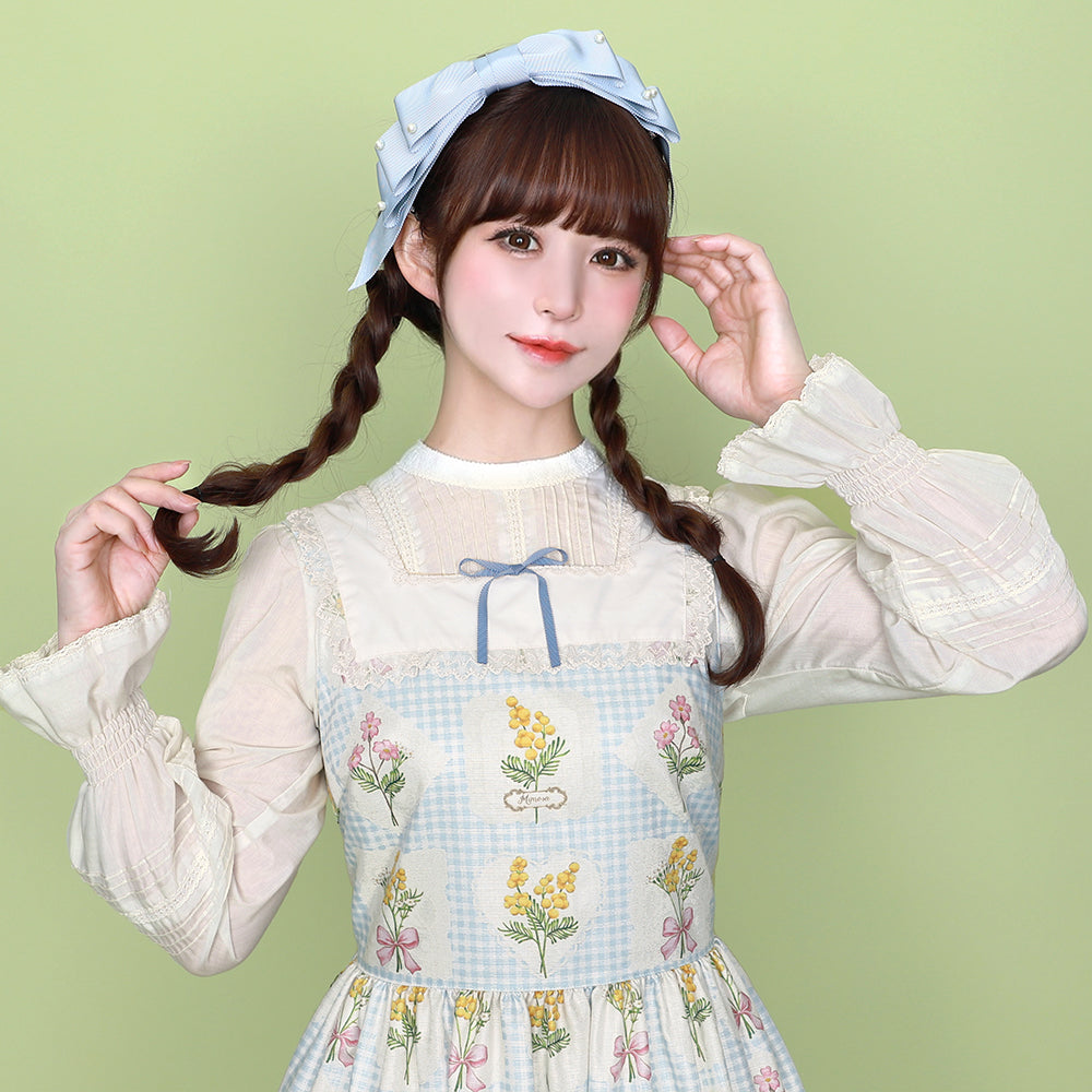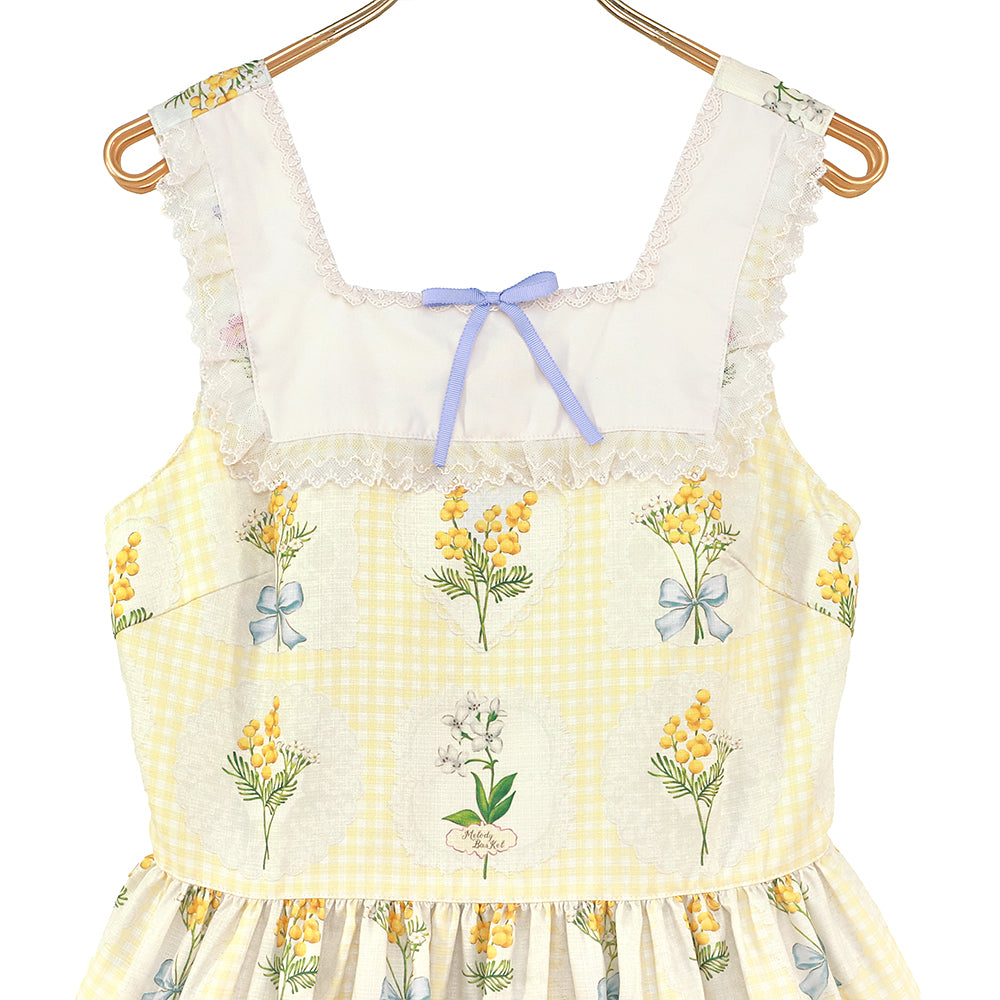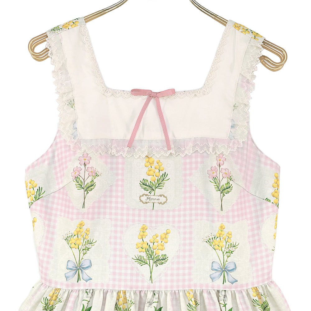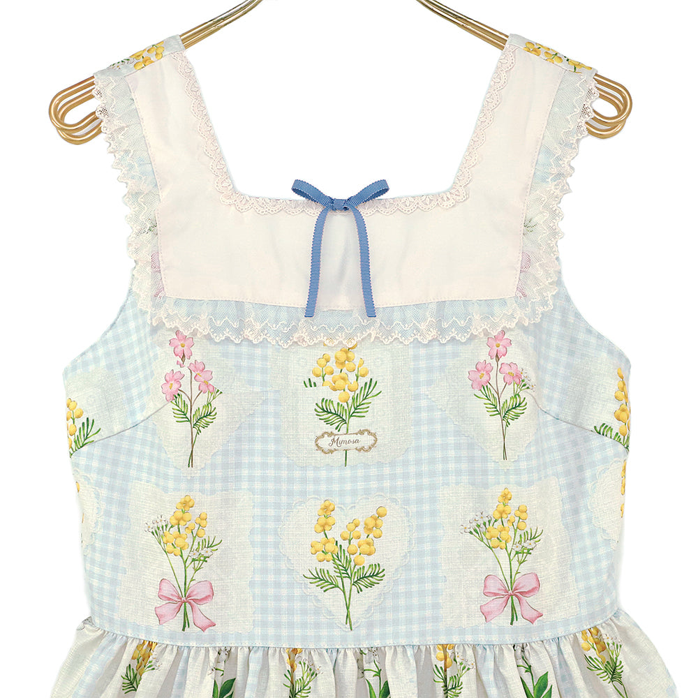 パステルカラーのギンガムチェックとミモザで春の訪れを感じて。