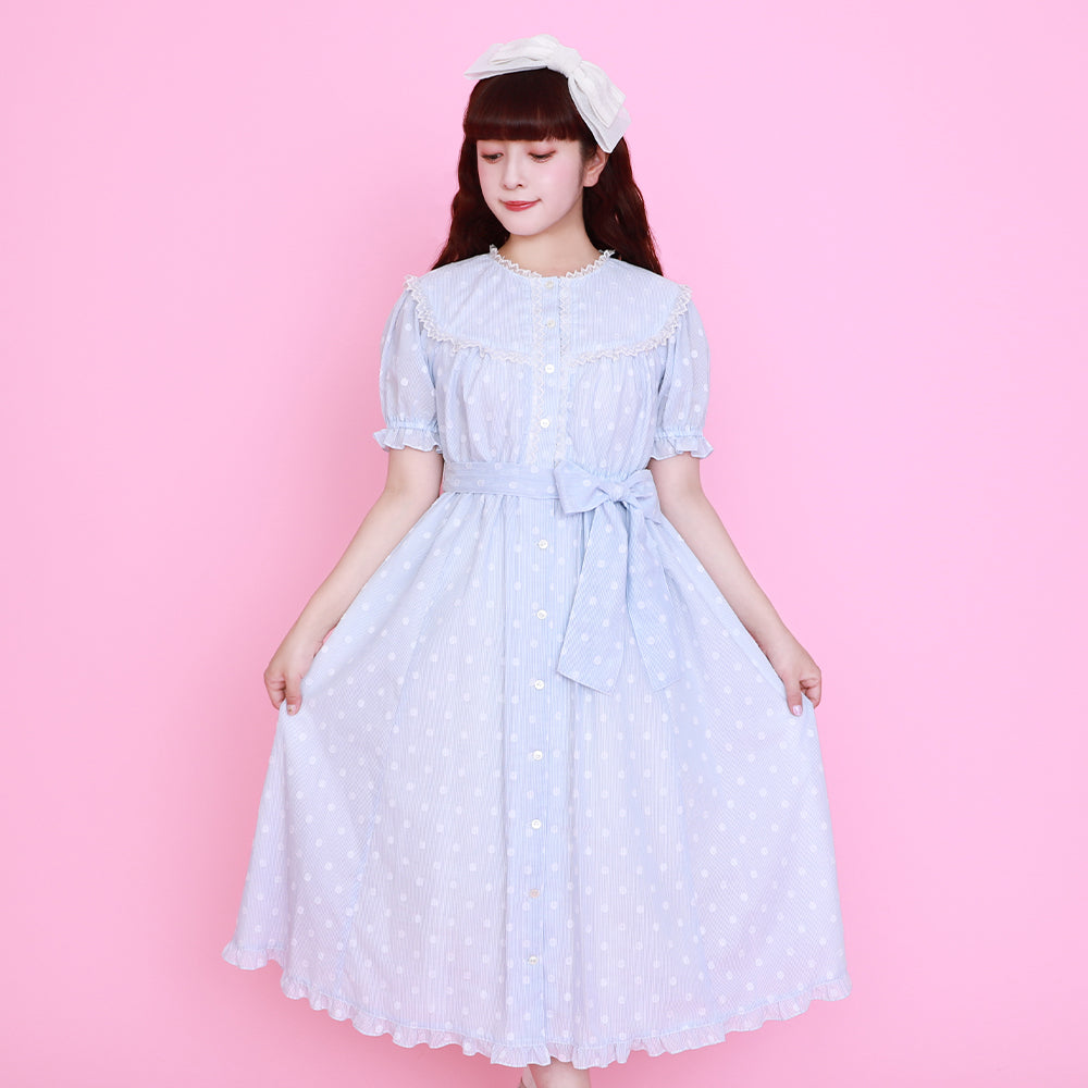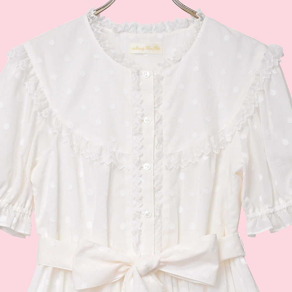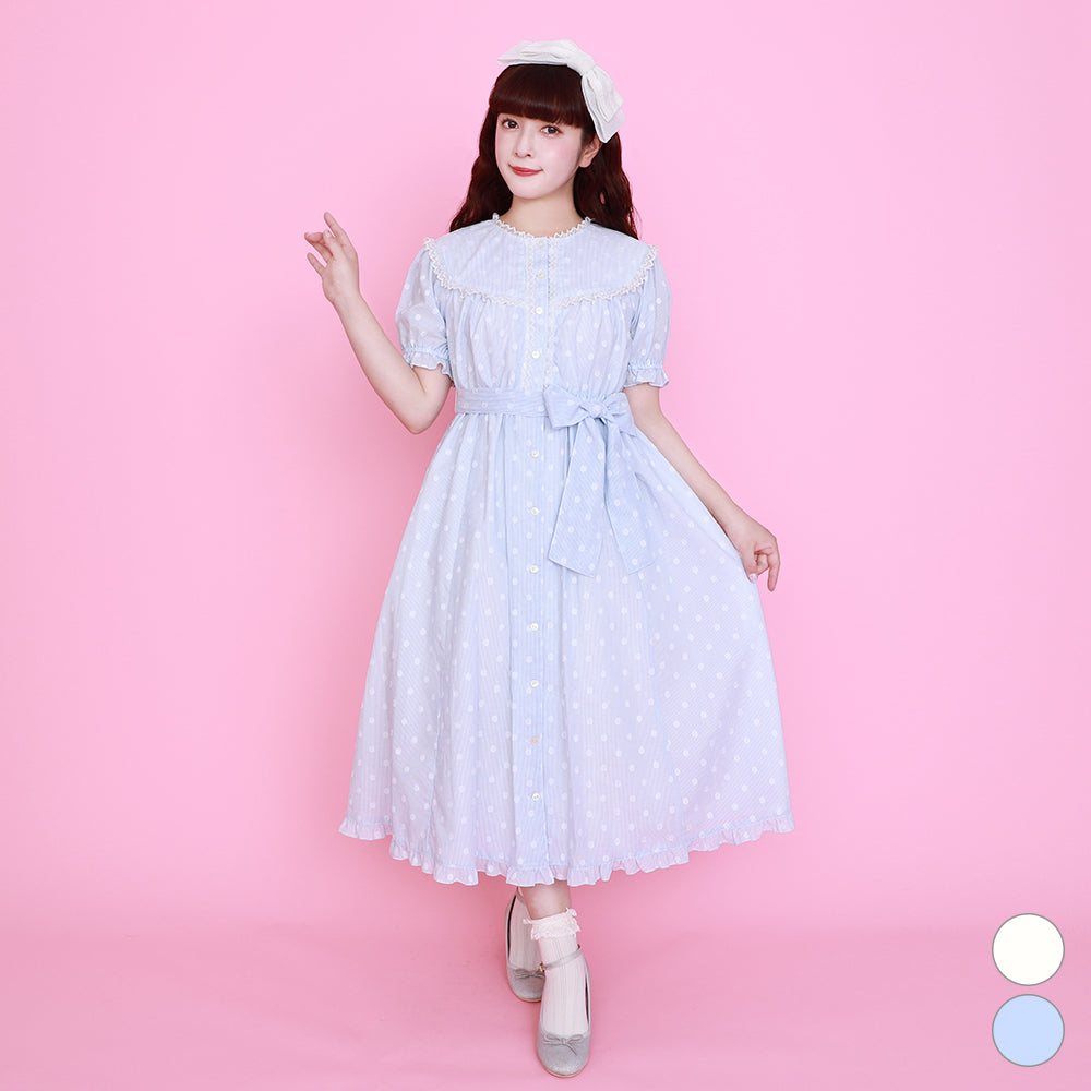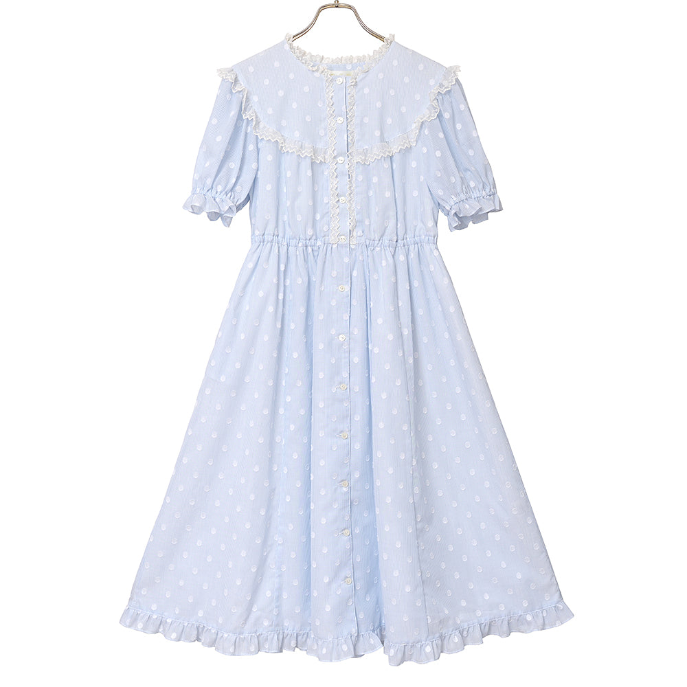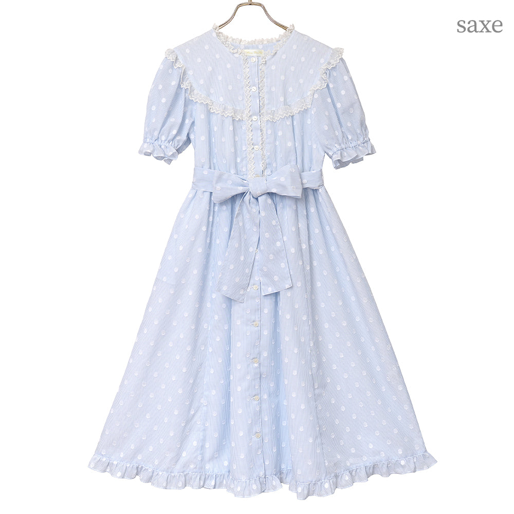 ディテール感のあるドビー生地で織り上げた、ドット柄のワンピース。