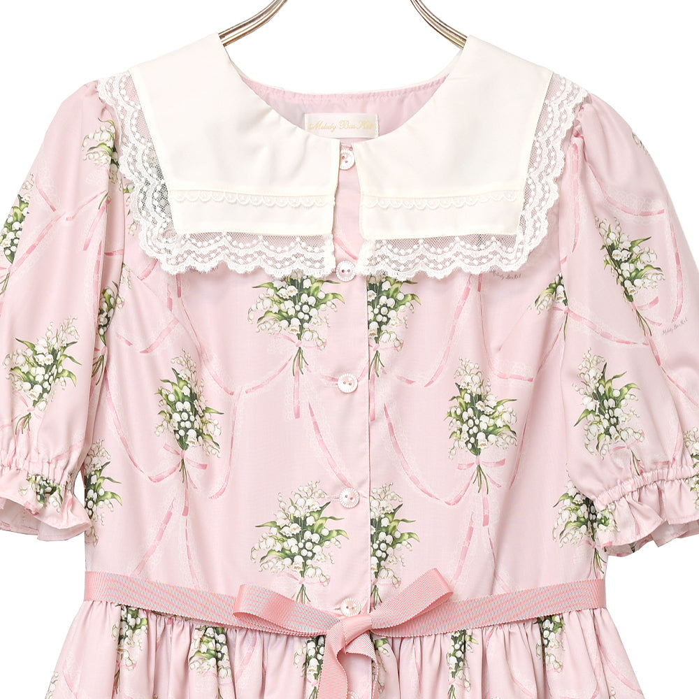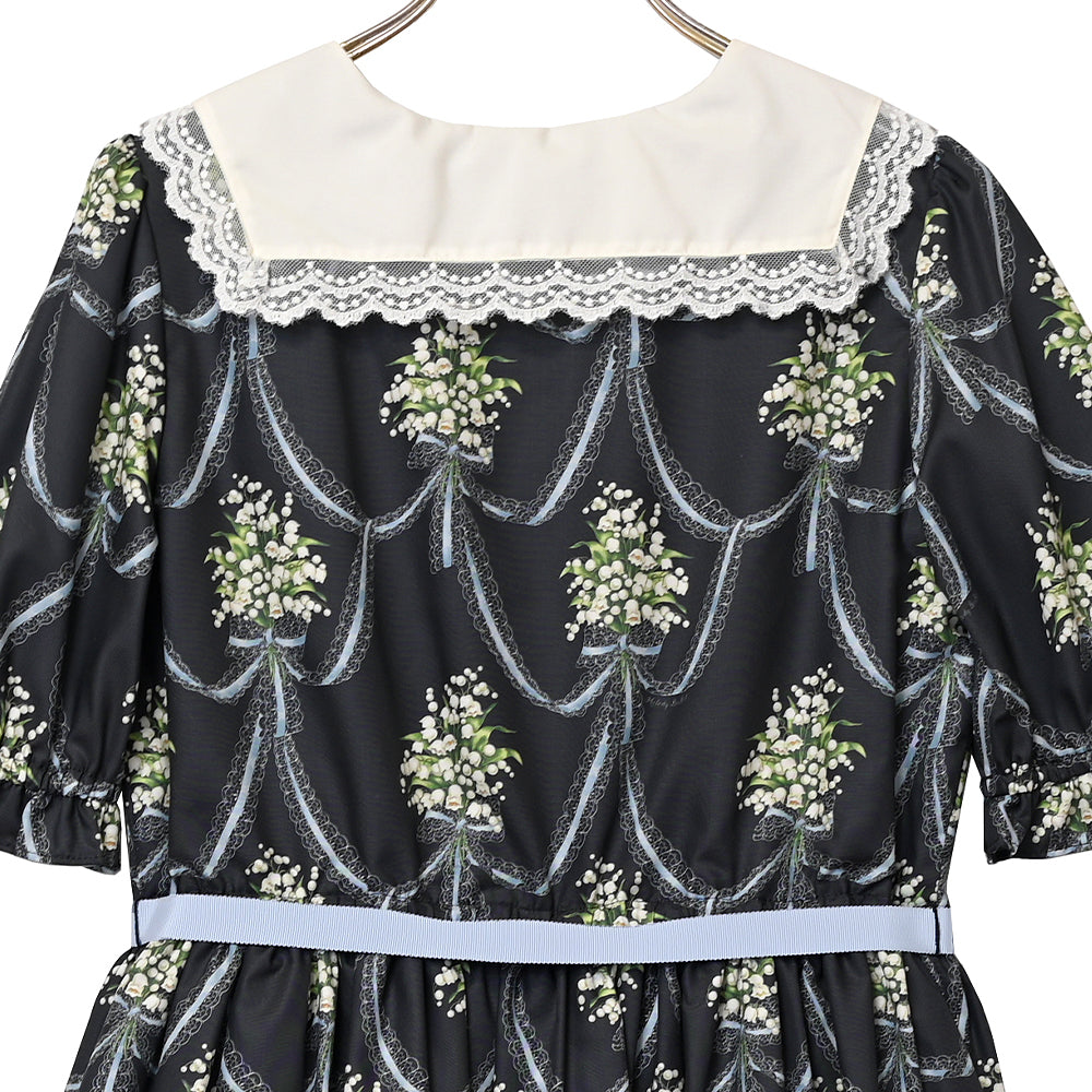 別地のスクエアカラーが爽やかな印象のワンピース。