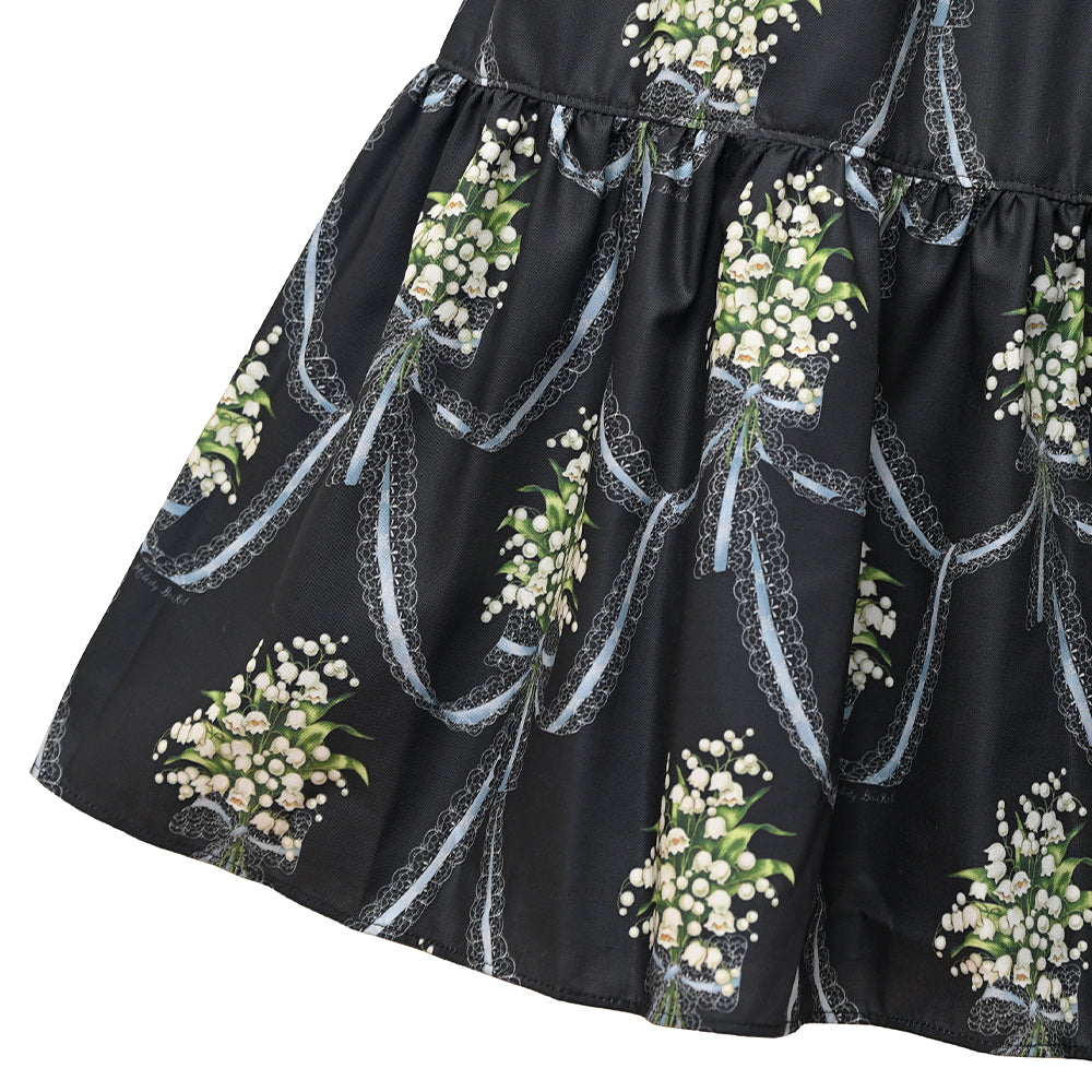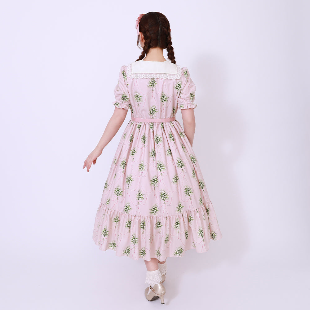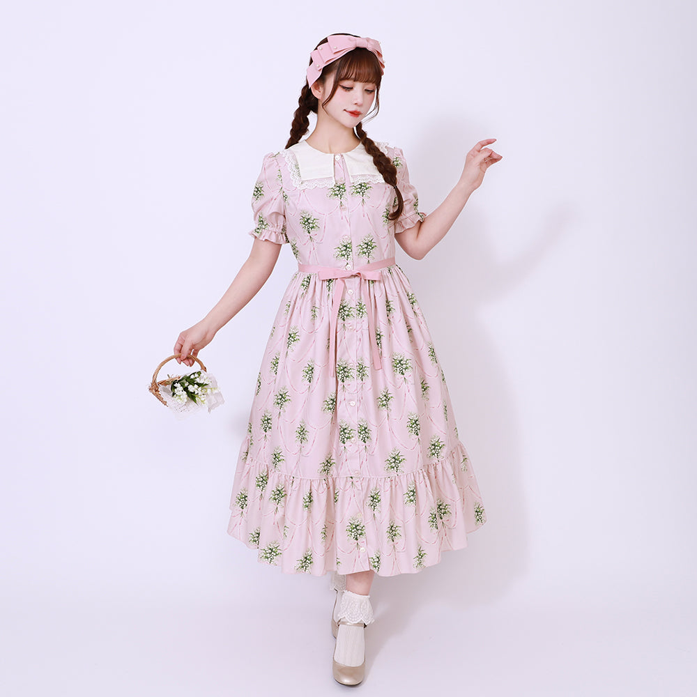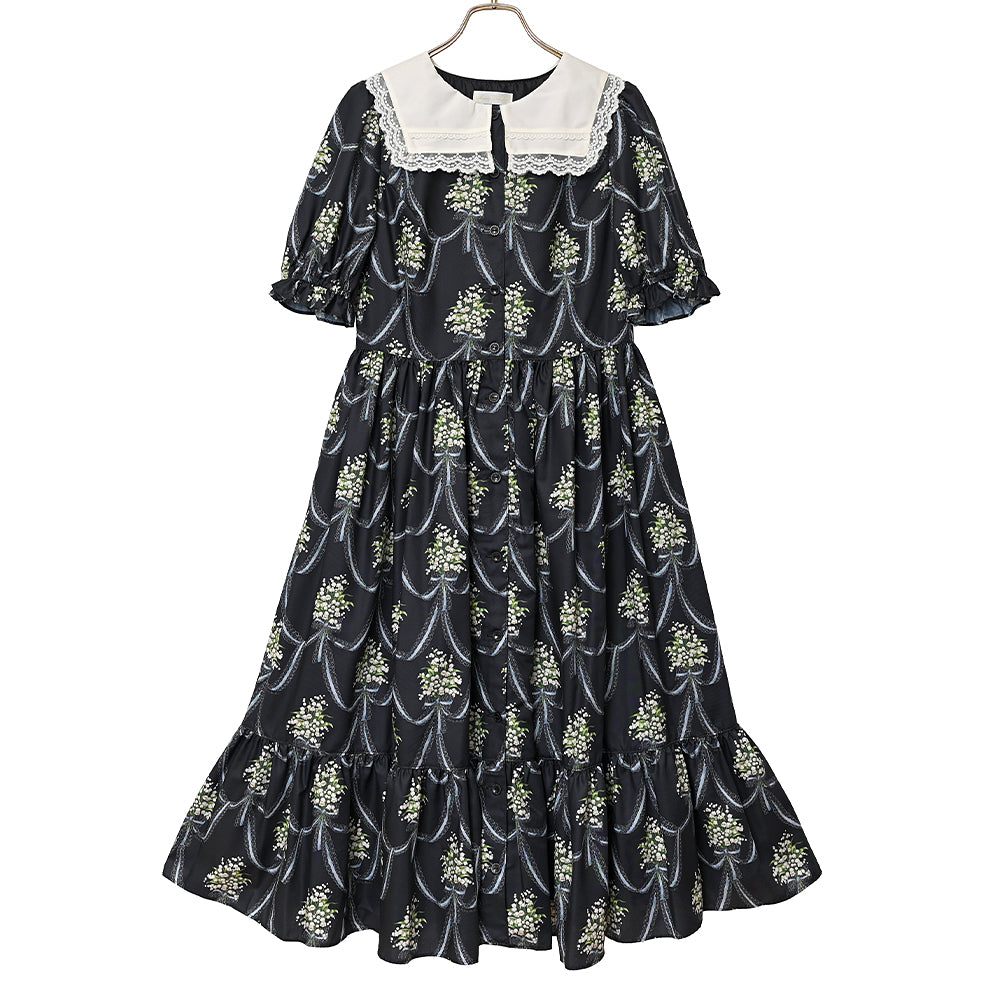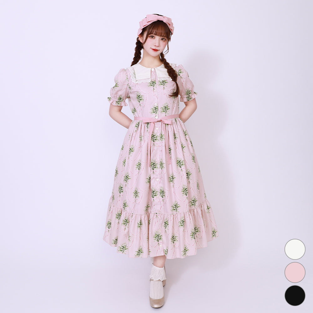 フロントボタンデザインなので、裾からペチコートやパニエを覗かせる着こなしもおすすめです。
