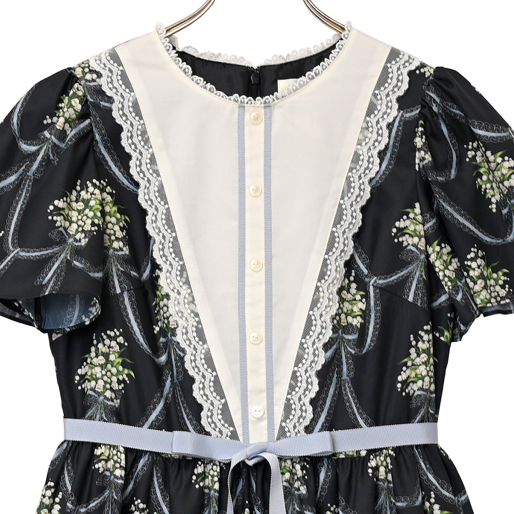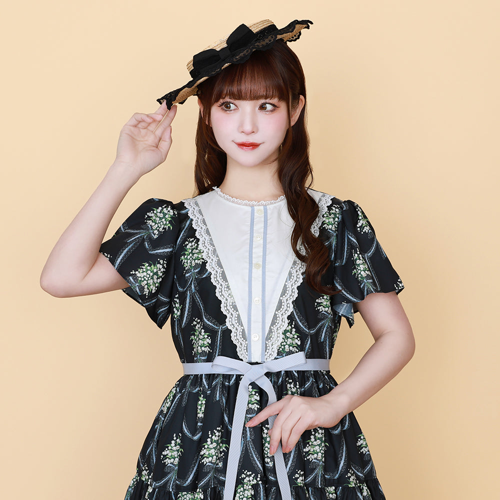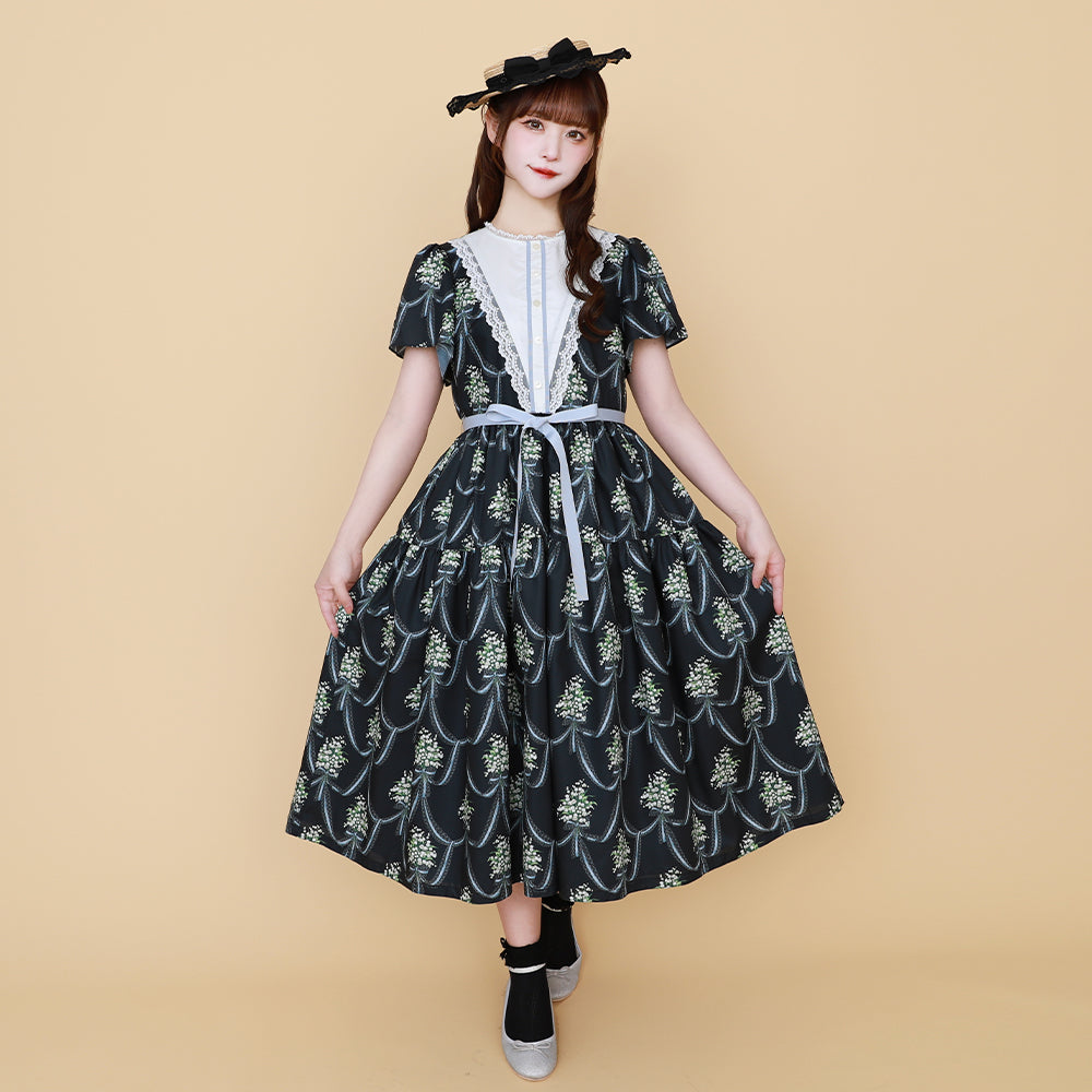 Vラインのヨーク切替がクラシカルな印象のワンピース。