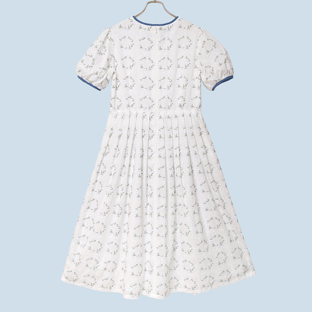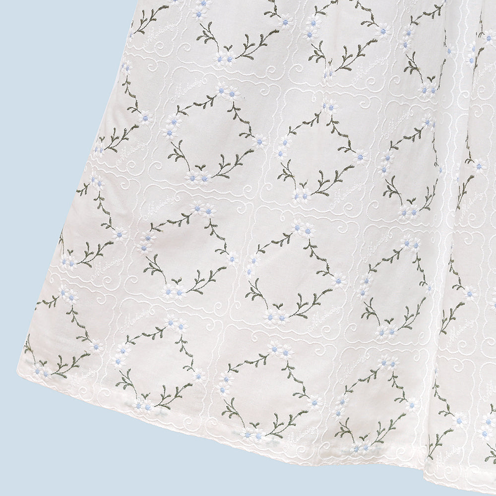 軽やかな綿ローン生地にオリジナル フルール刺繍を施した、ナチュラルな風合いが特徴の刺繍生地です。